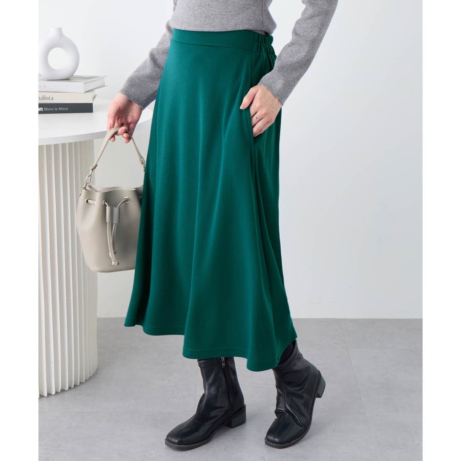 フレアーシルエットで女性らしく、腰周りをすっきりと見せる美しいシルエット。