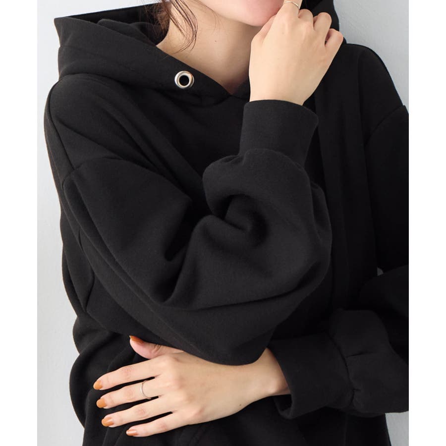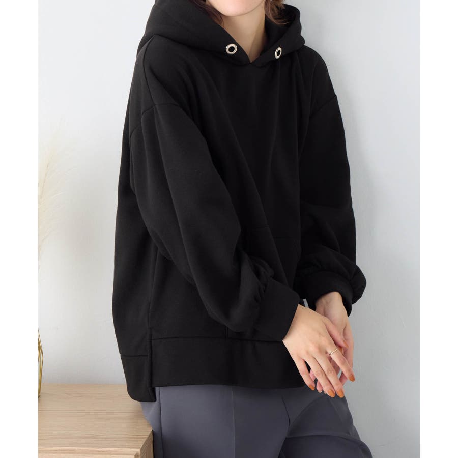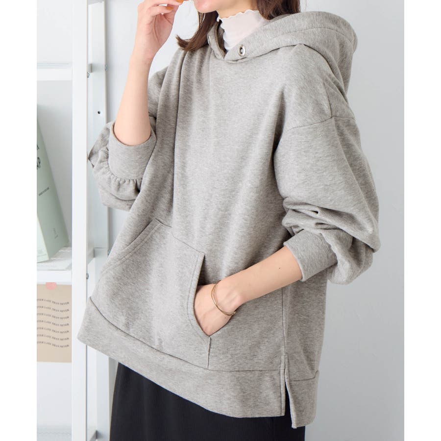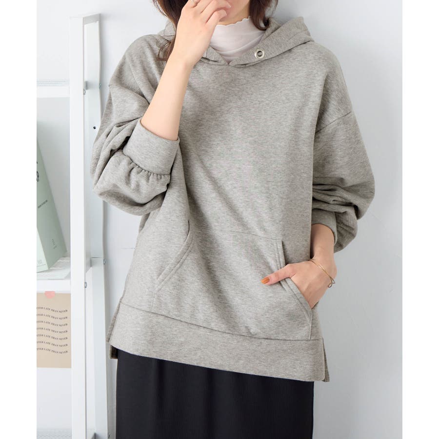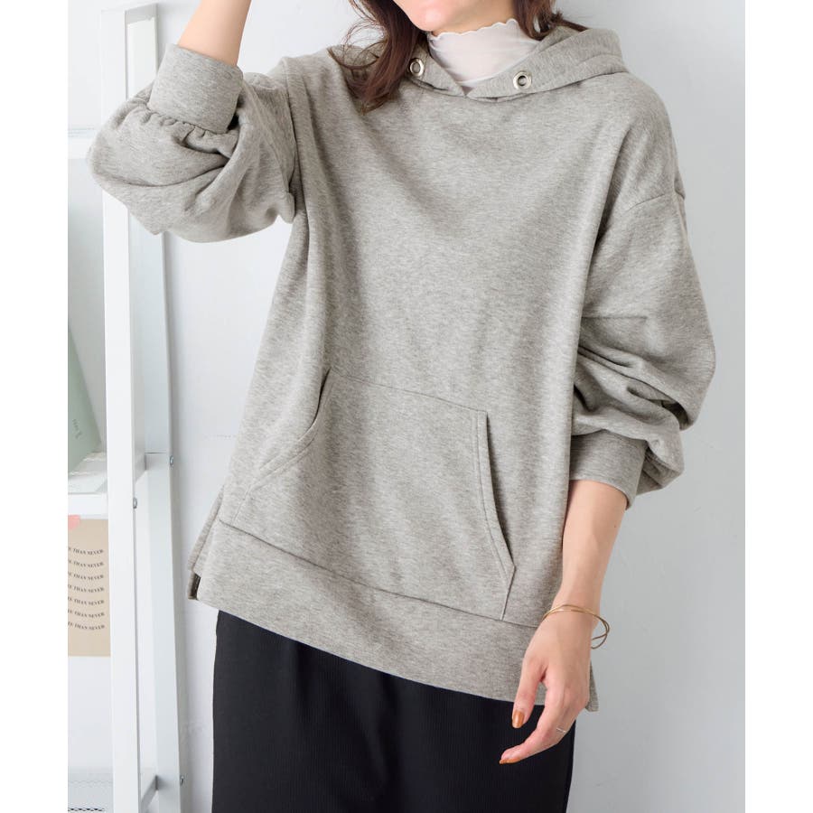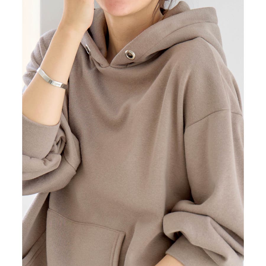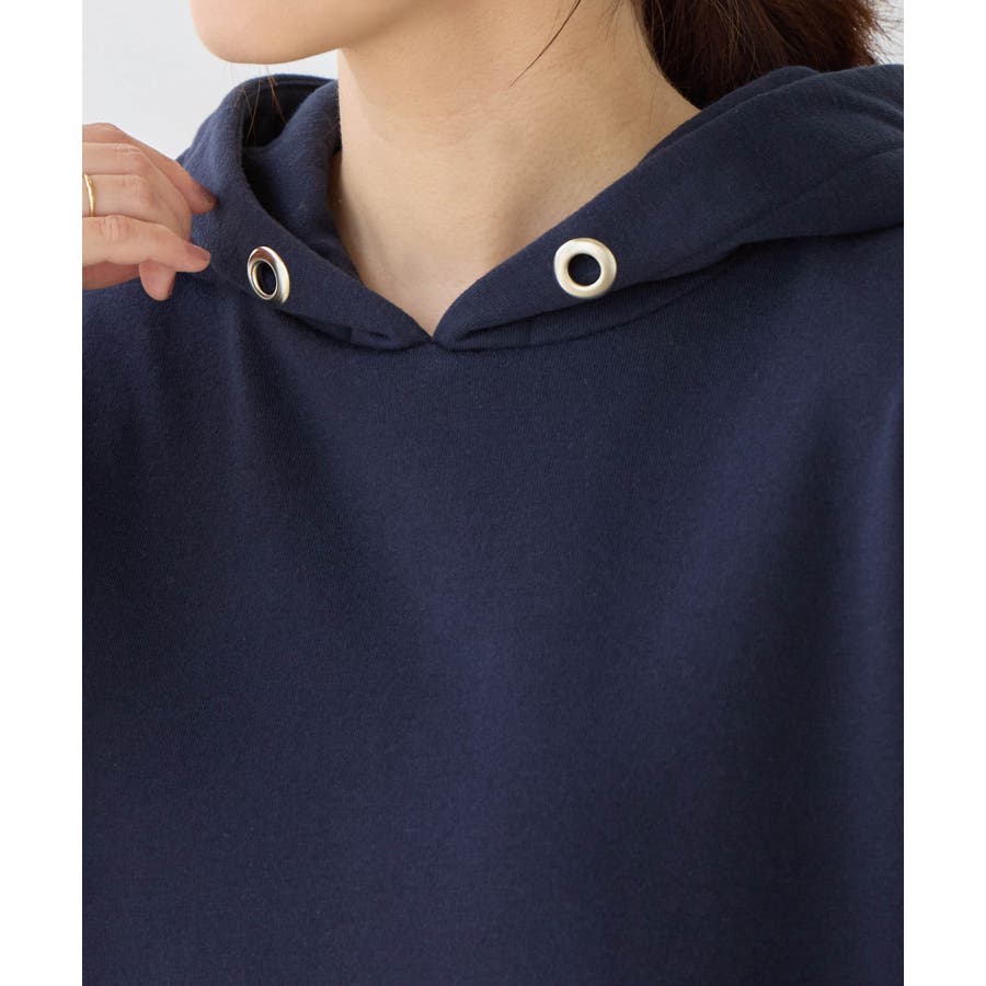 ・フードの大きめのハトメがデザインのアクセント。カジュアルながらもシルバーのポイントで上品な印象に。
