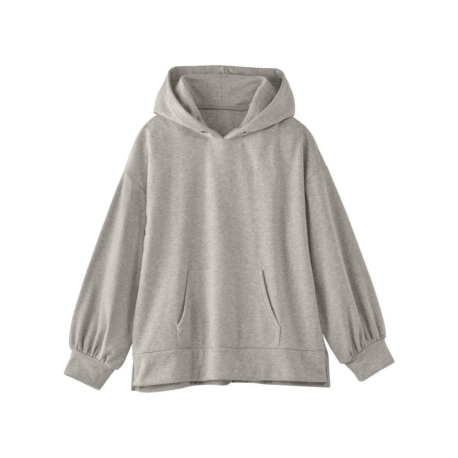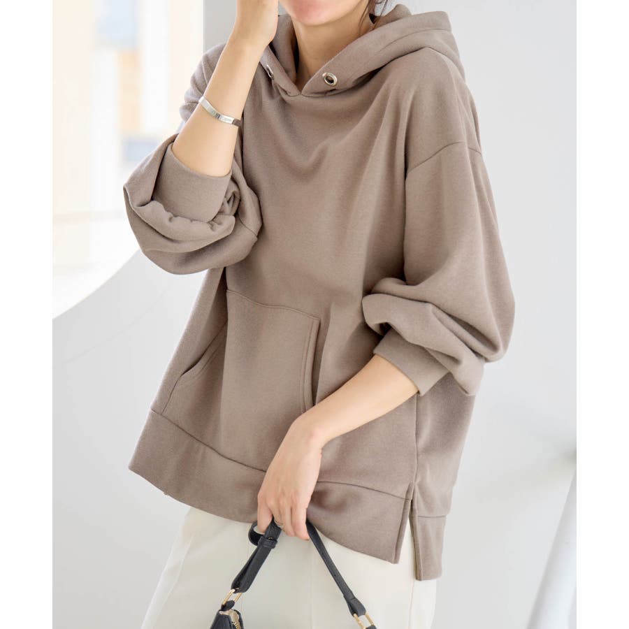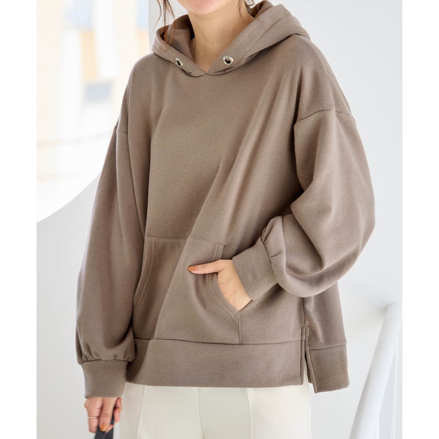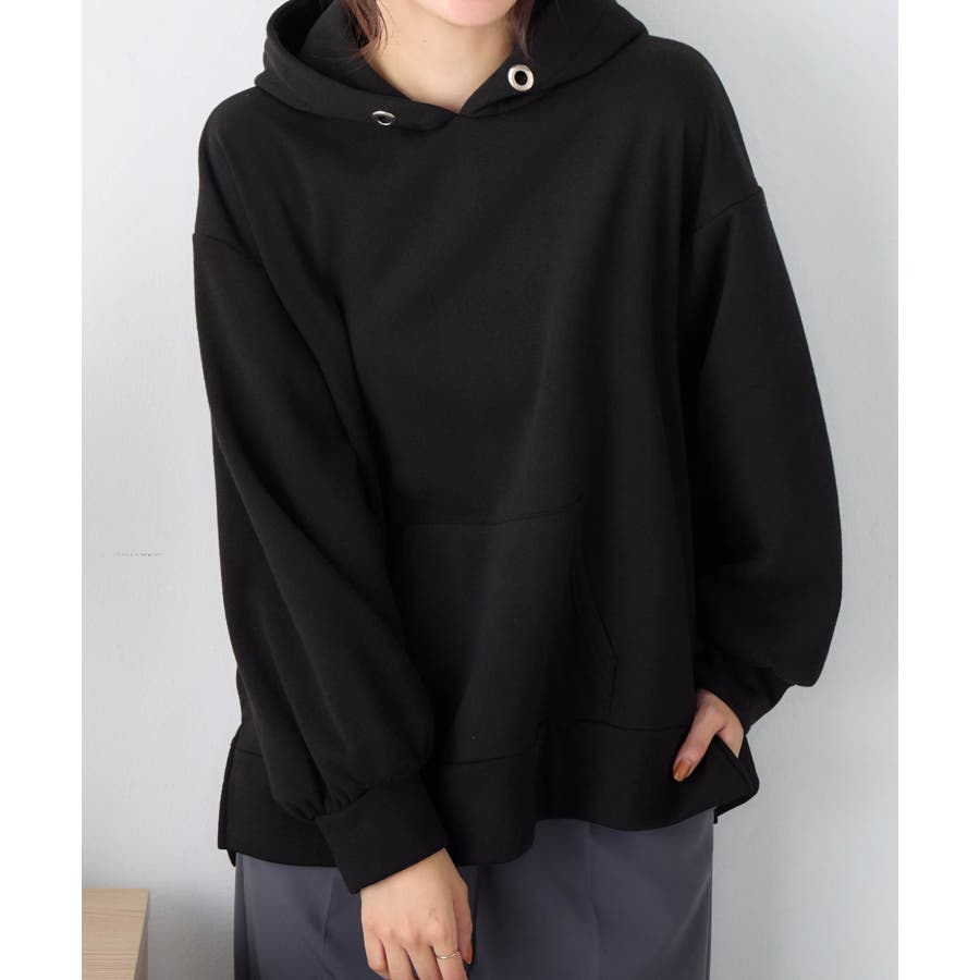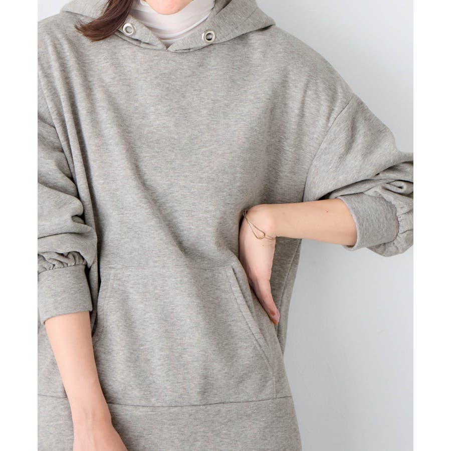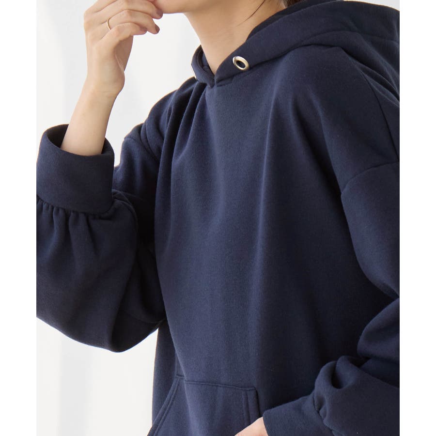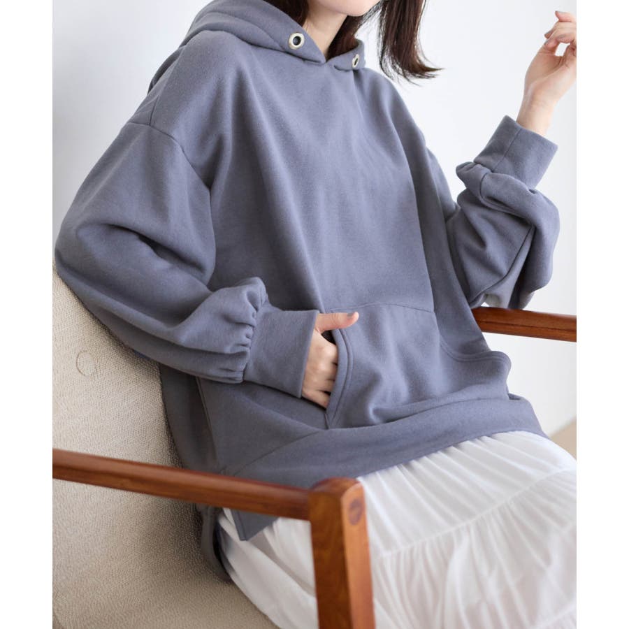 ・フードの大きめのハトメがデザインのアクセント。カジュアルながらもシルバーのポイントで上品な印象に。