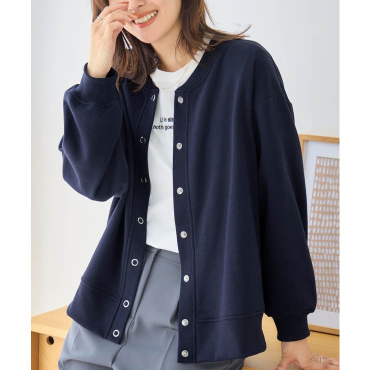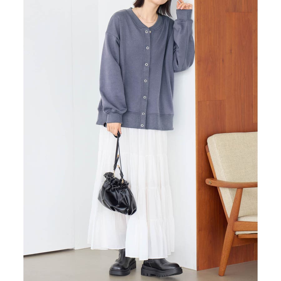 ゆったりシルエットのスウェットカーデ