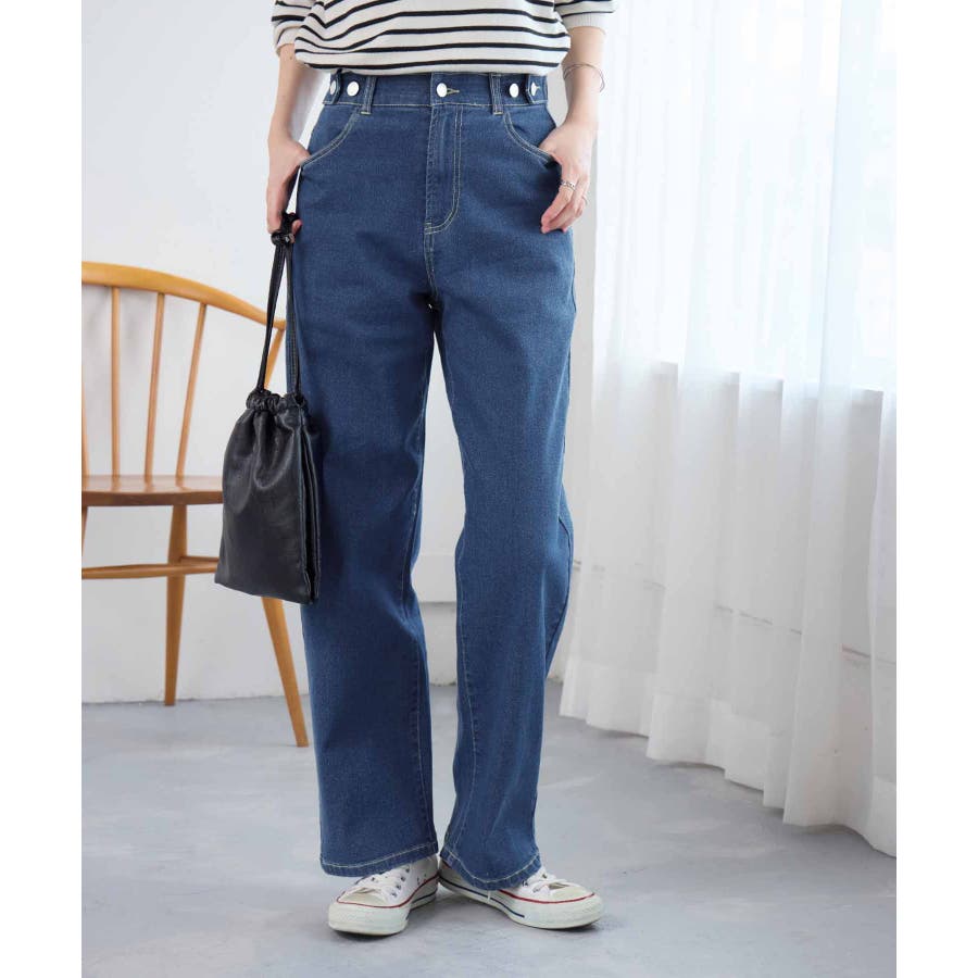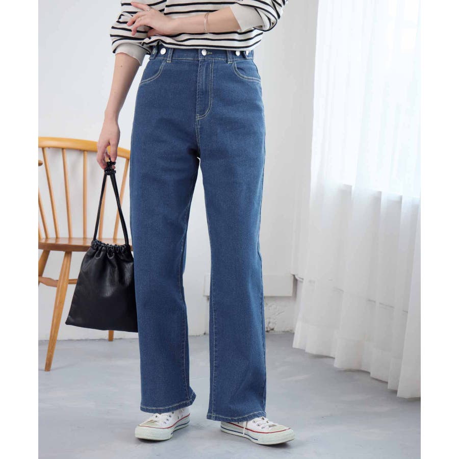 【ブルー】隠しゴムで見た目すっきり楽ちんデニム