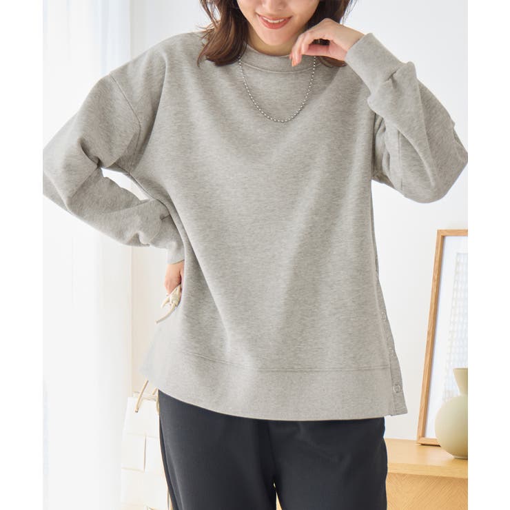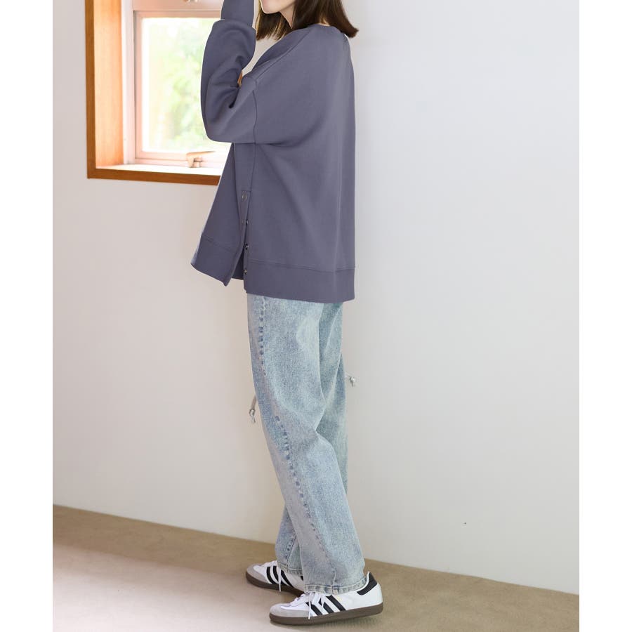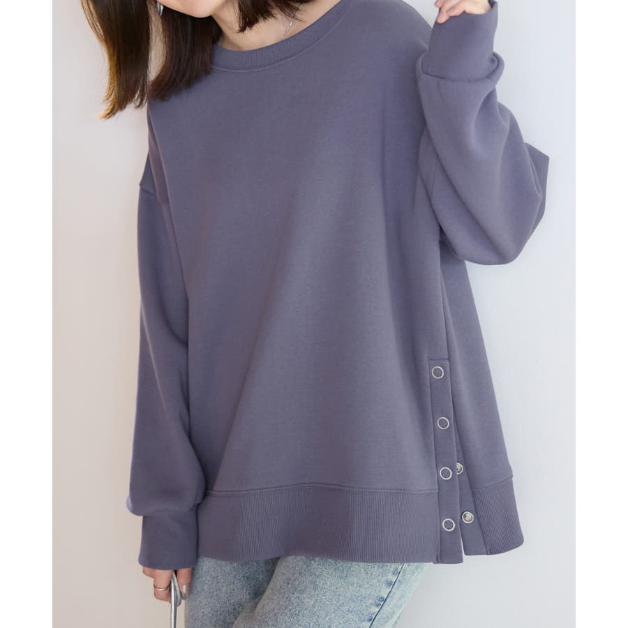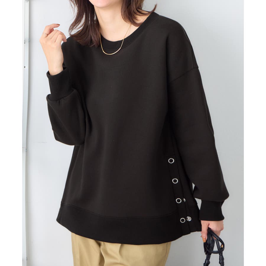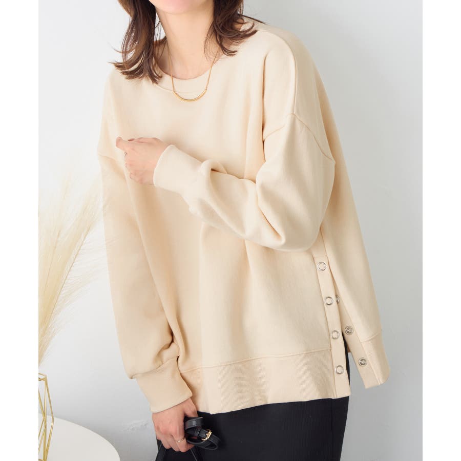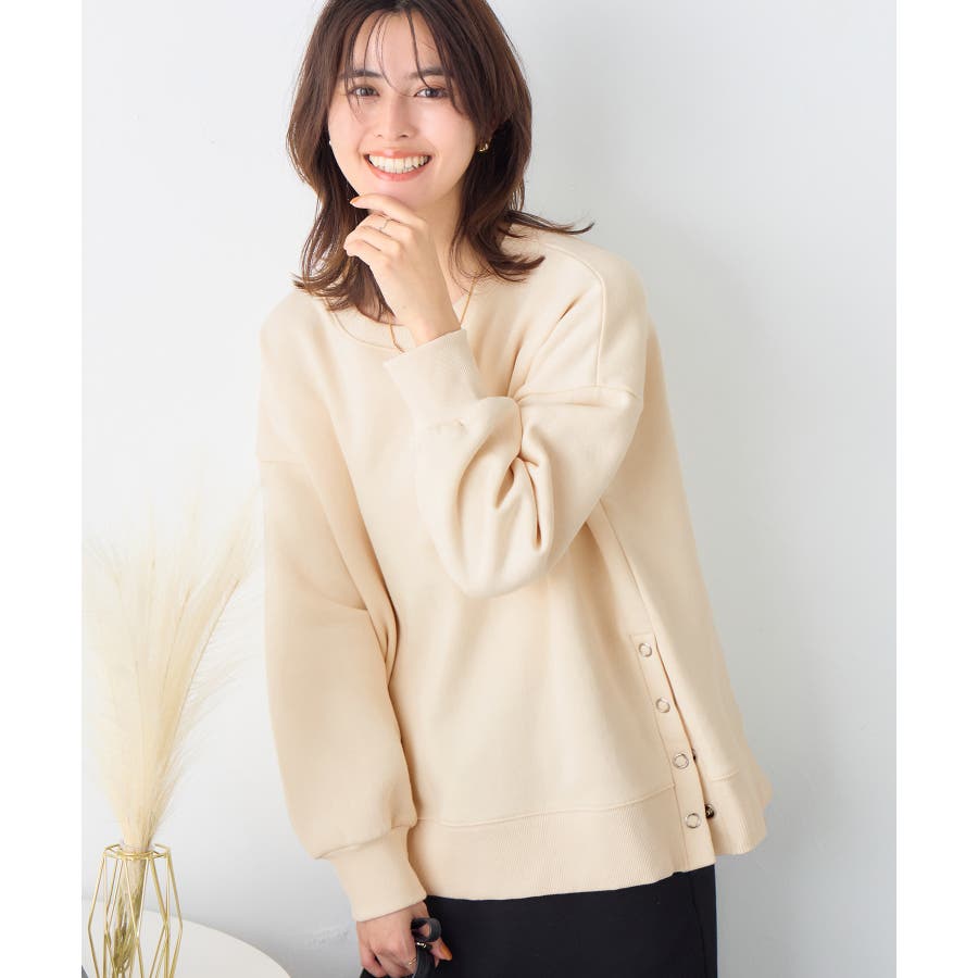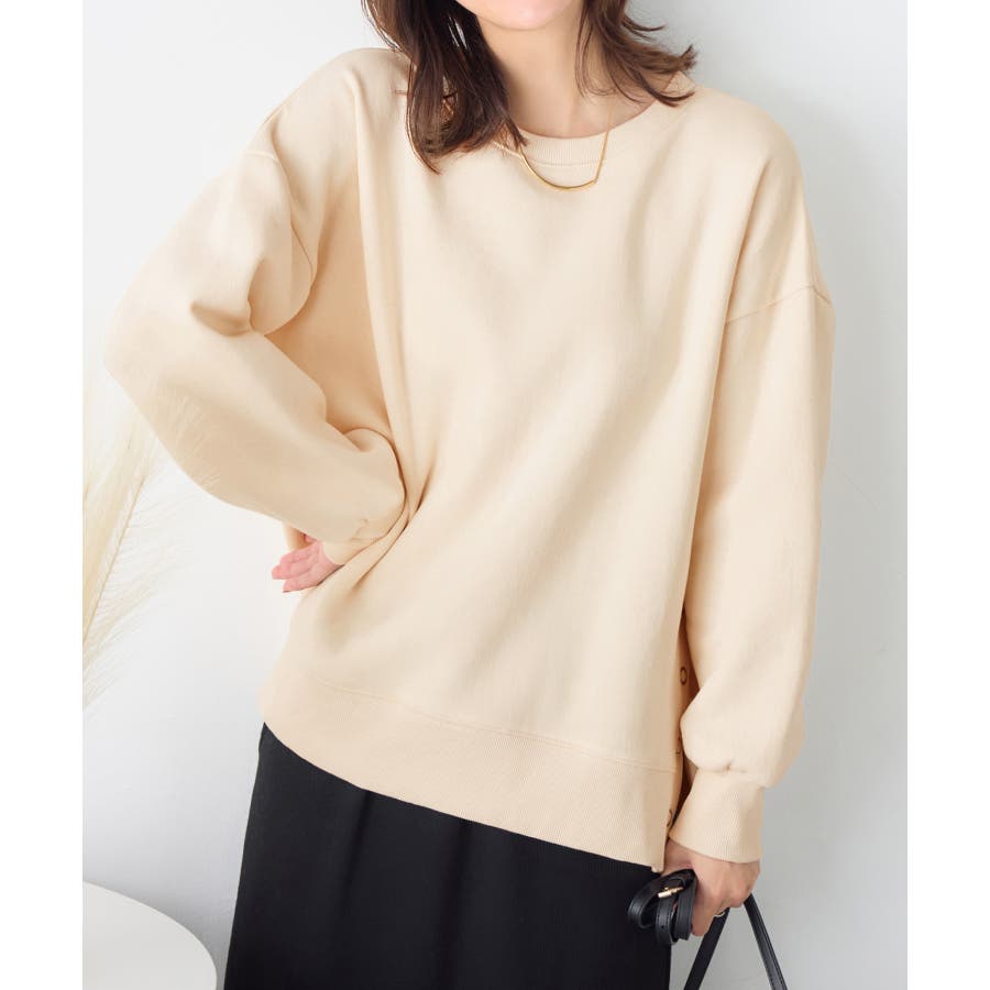 大人の抜け感裏起毛サイドボタントップス