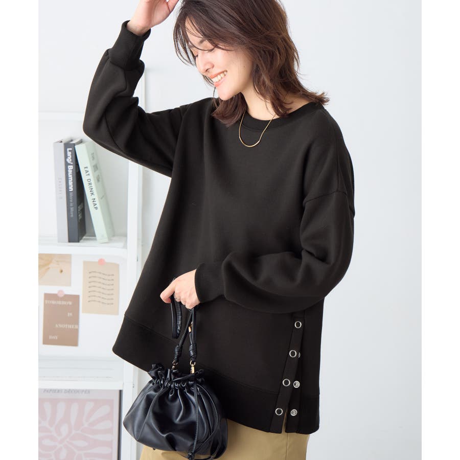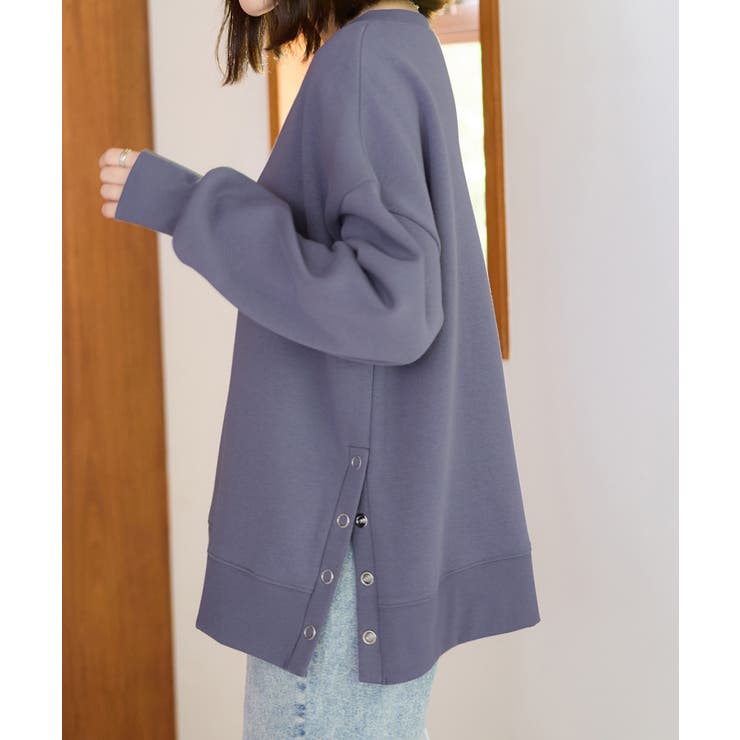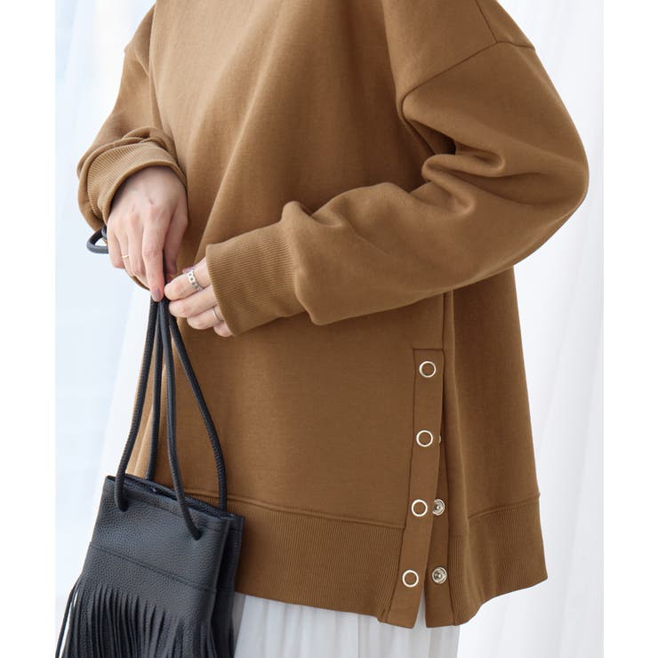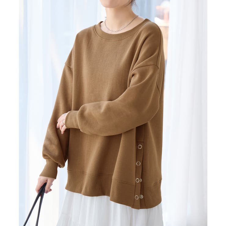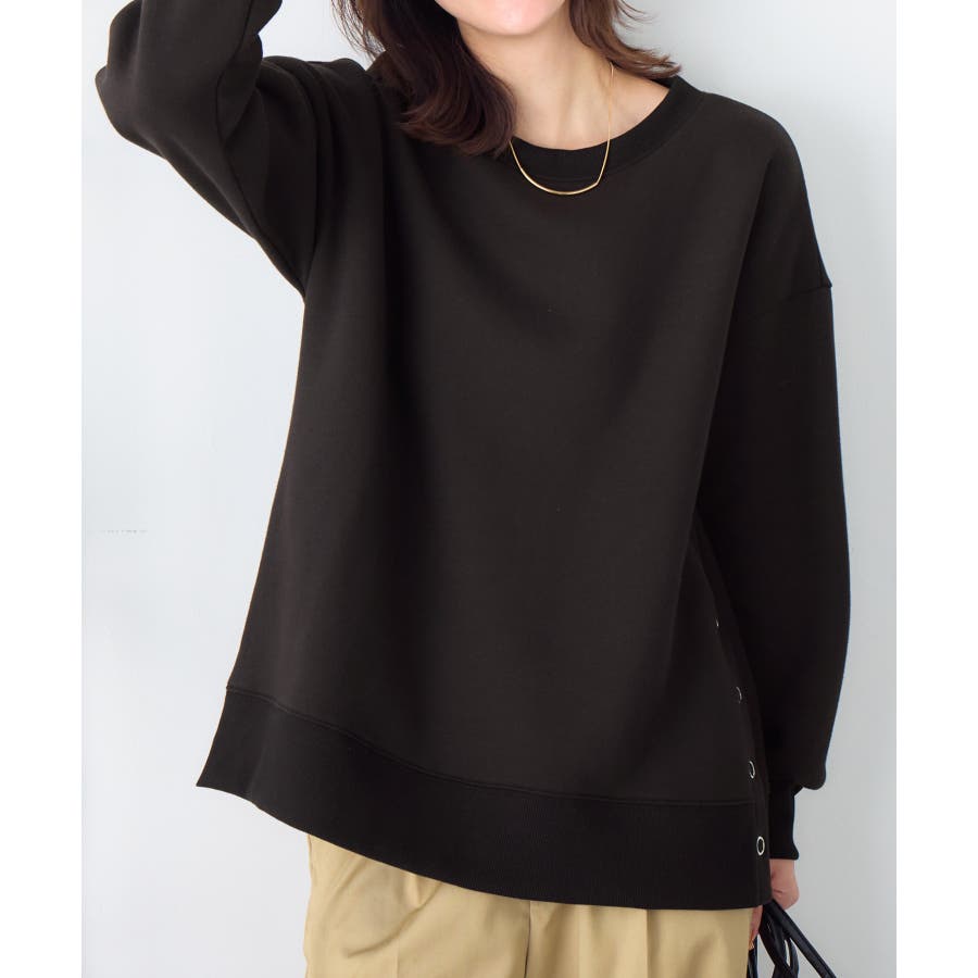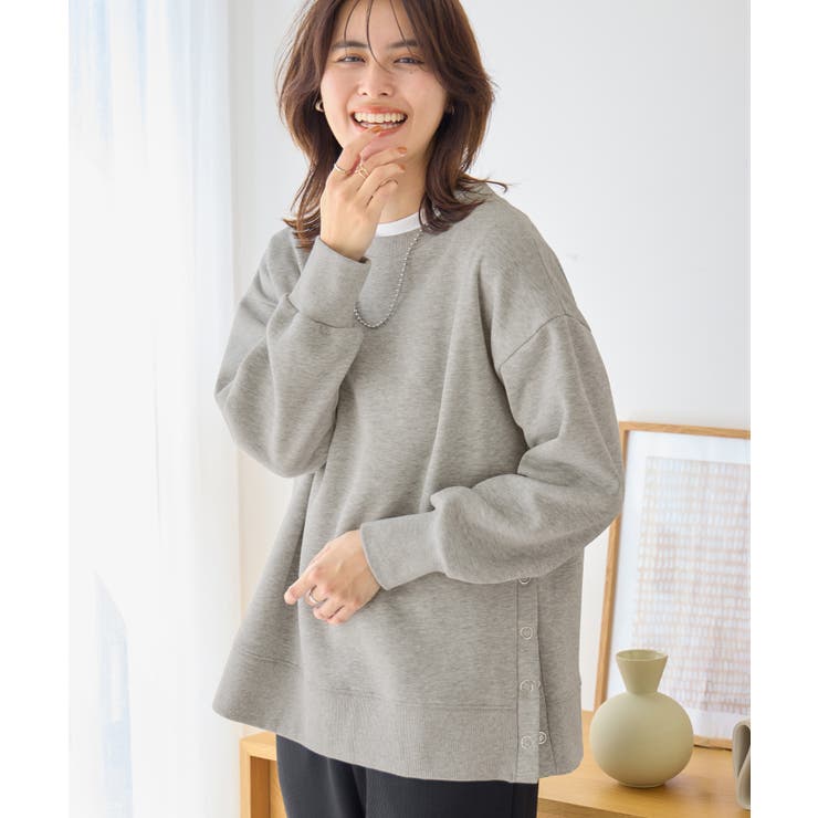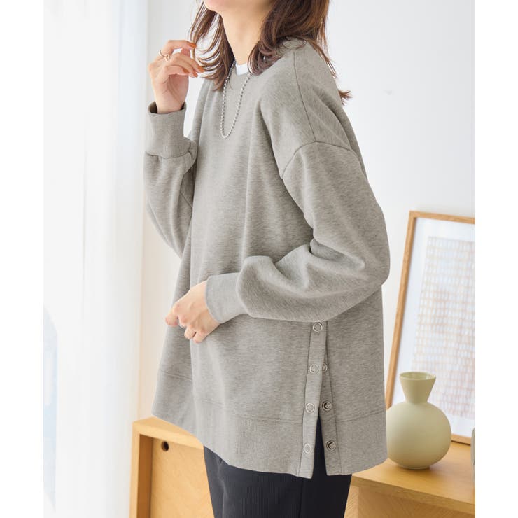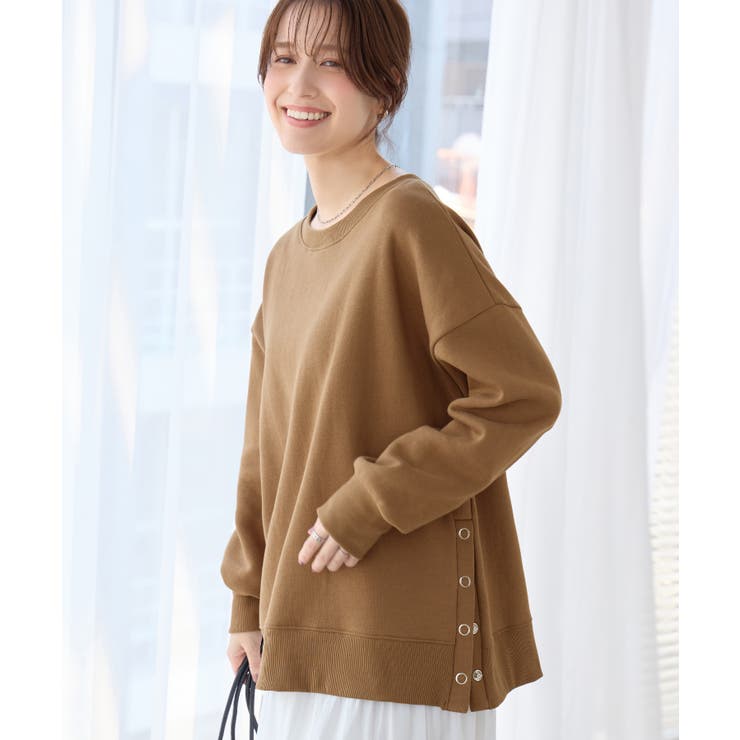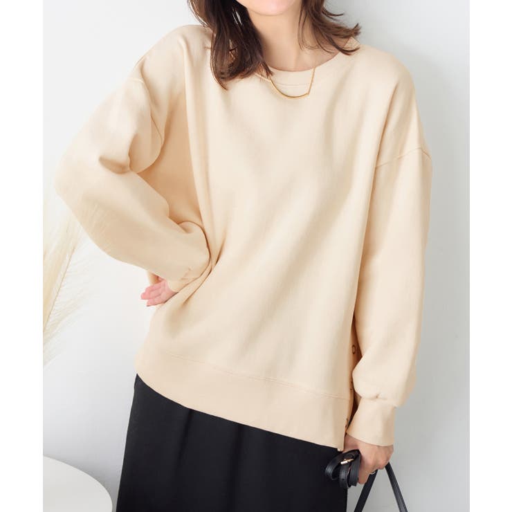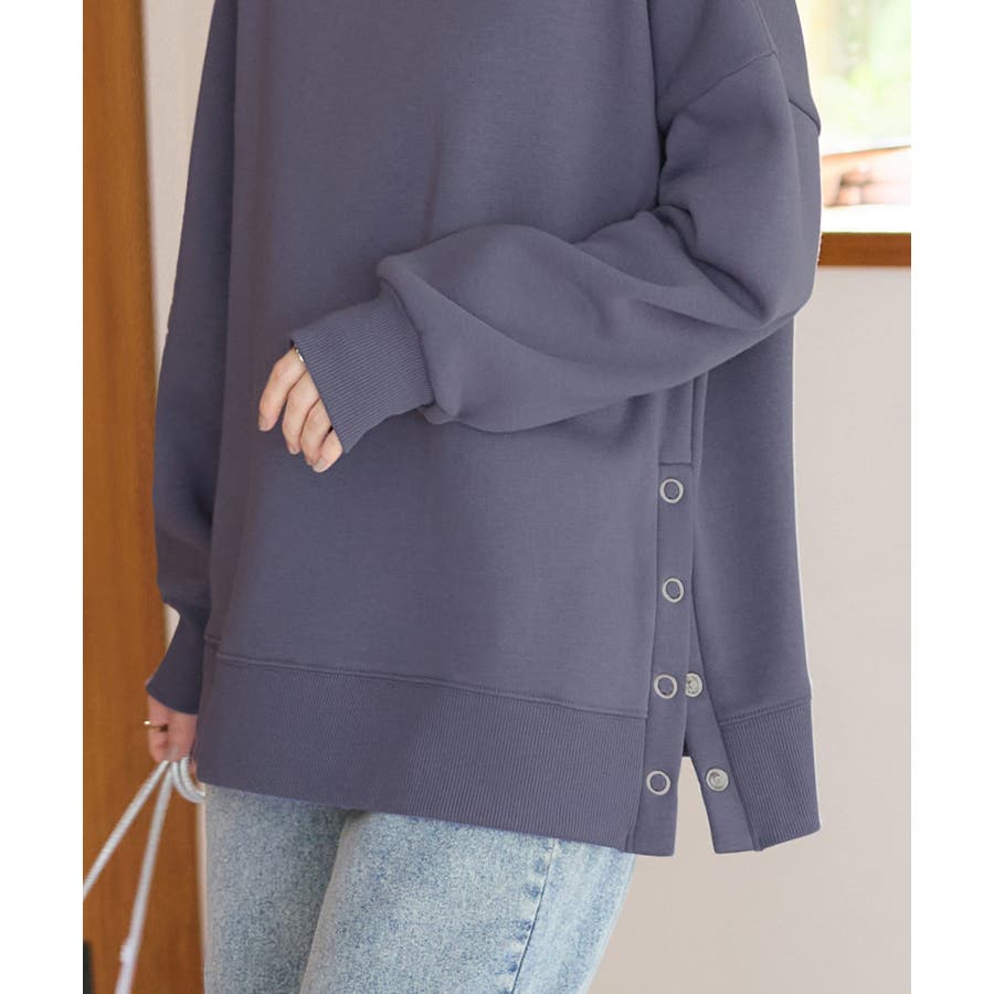 大人の抜け感裏起毛サイドボタントップス