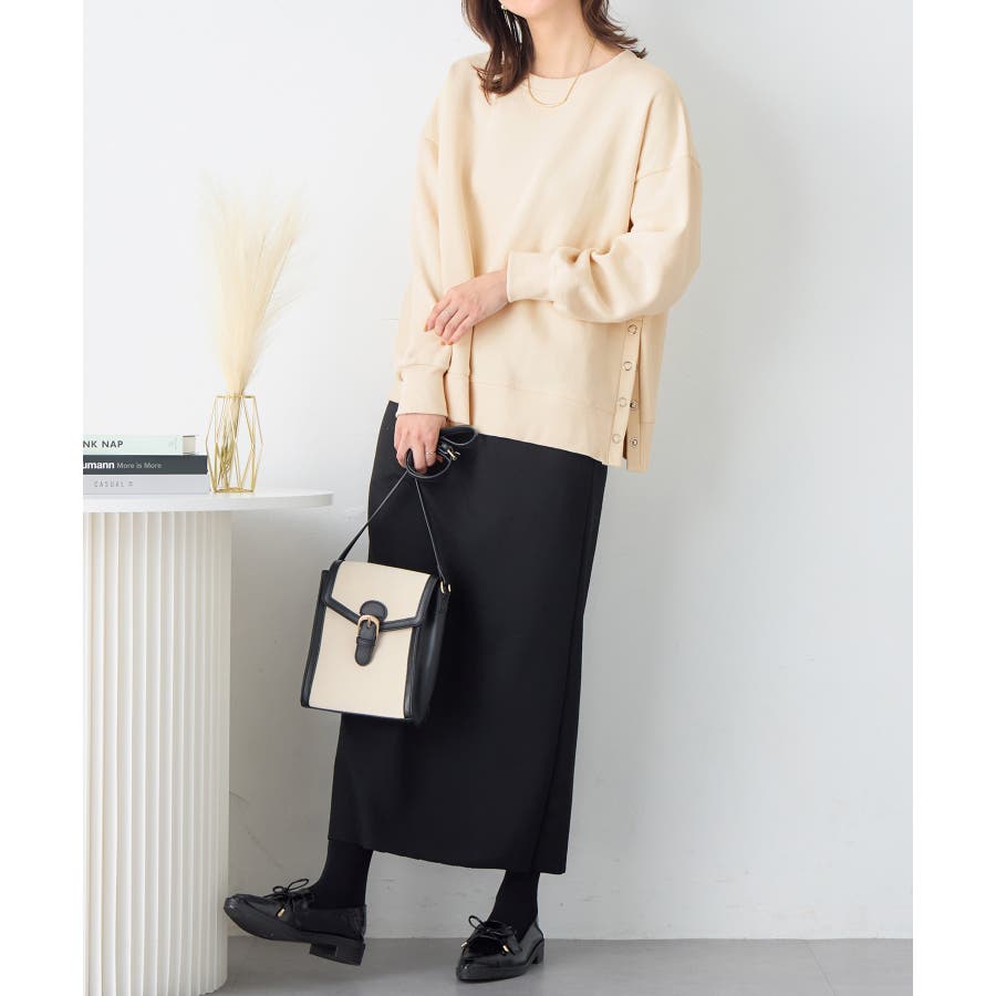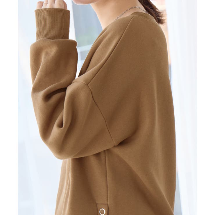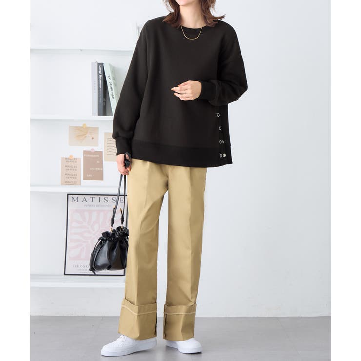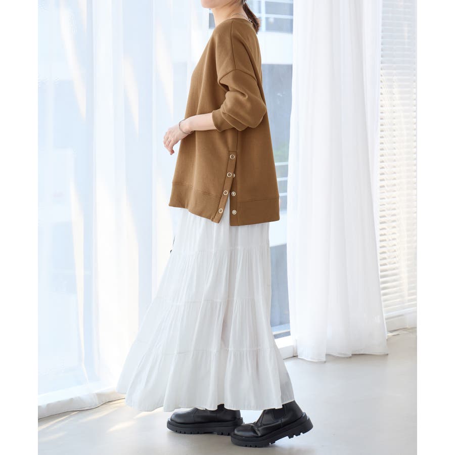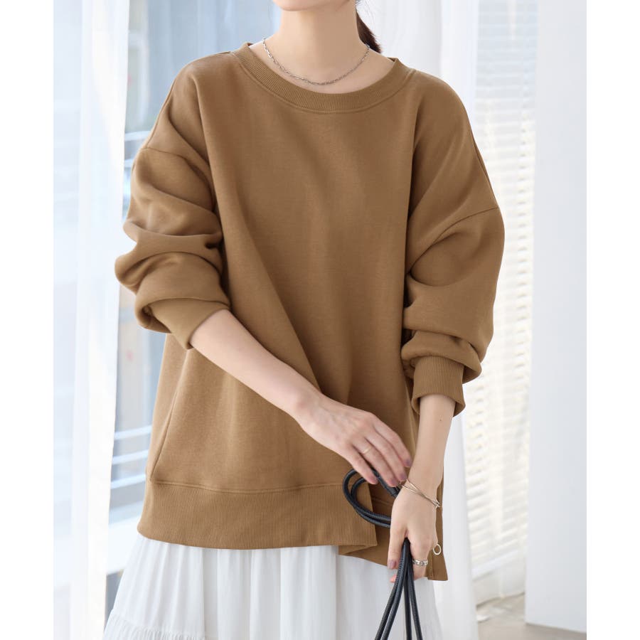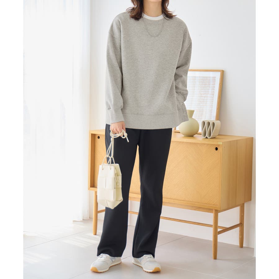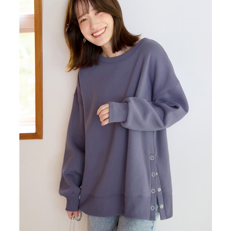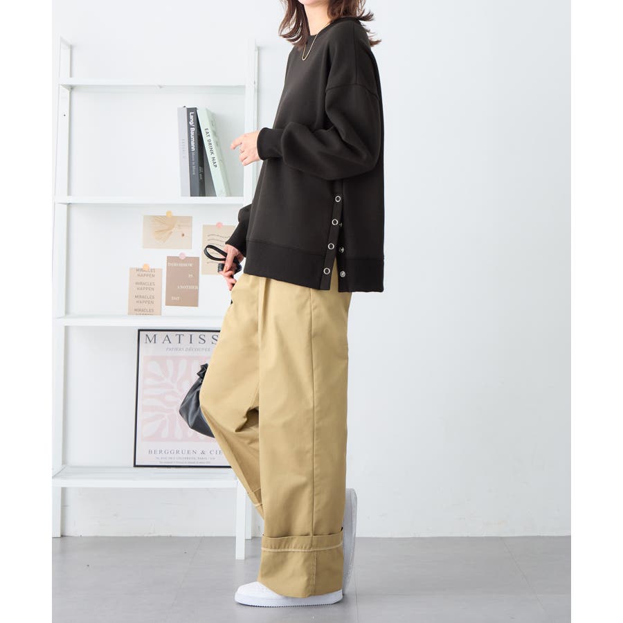 大人の抜け感裏起毛サイドボタントップス