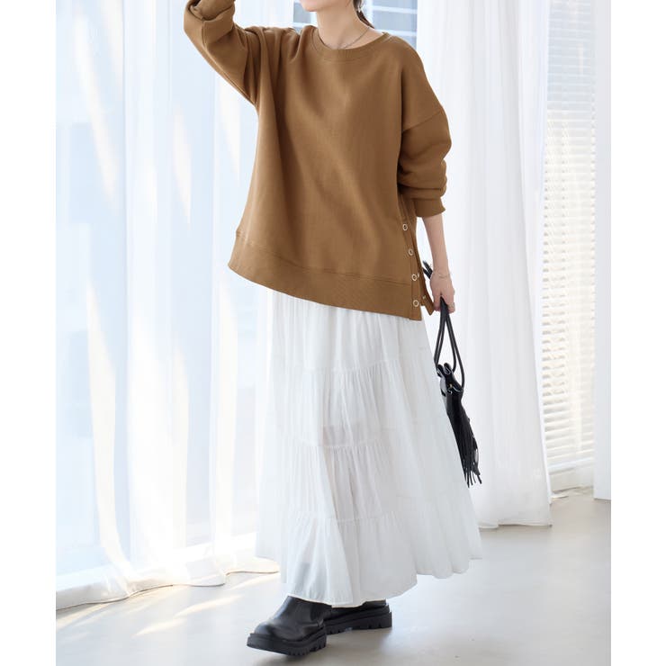 ・サイドのスナップボタンがアクセントになった、こなれ感のあるデザイン。