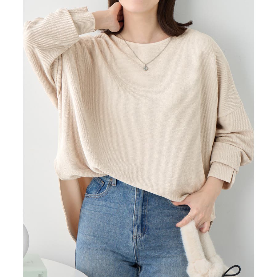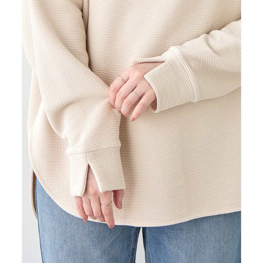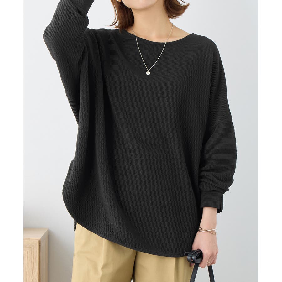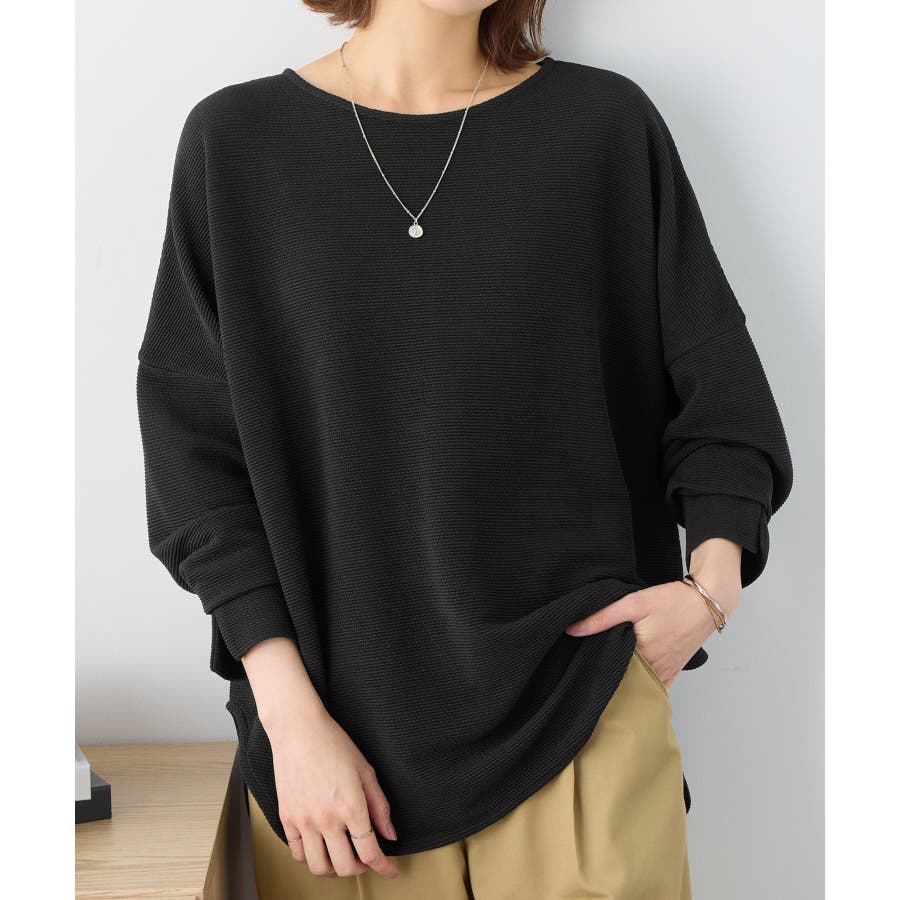 ・横リブに見えるジャカード素材で上品な質感と立体感のある仕上がり。
