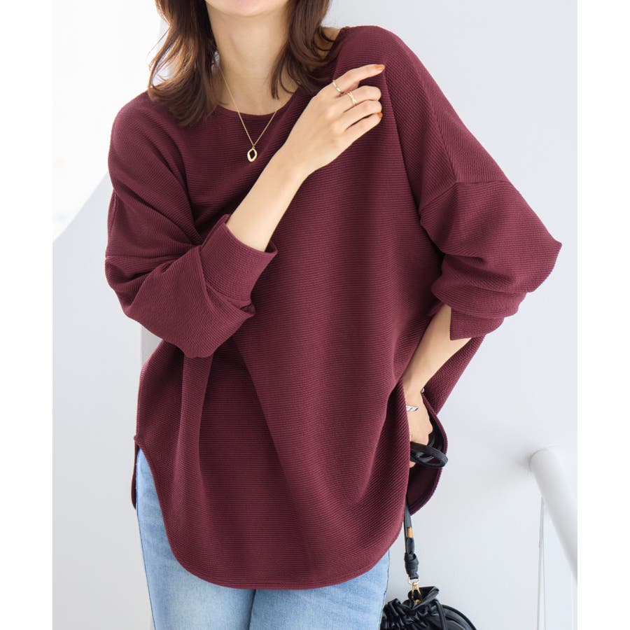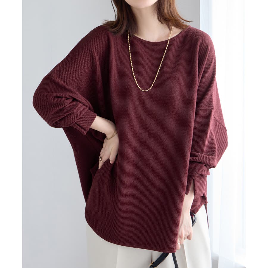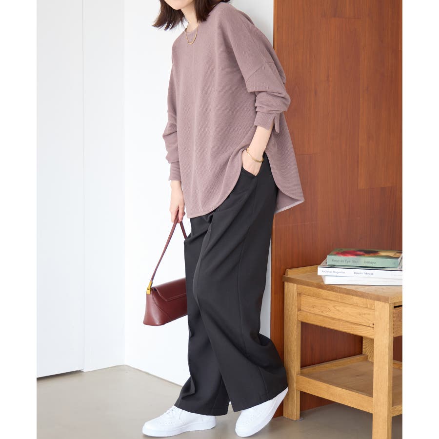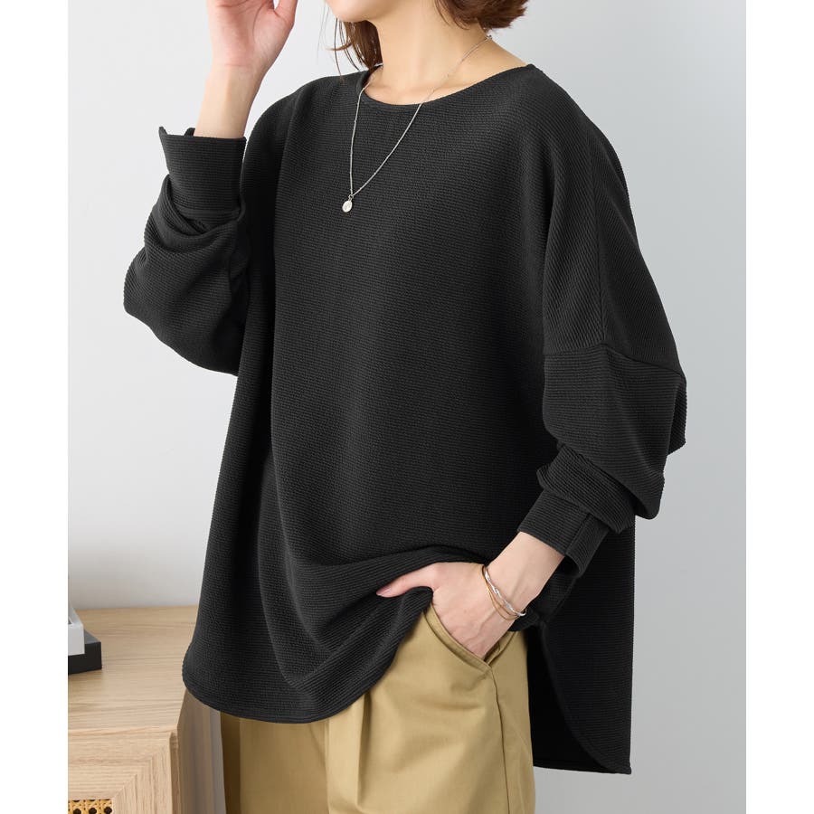 ・横リブに見えるジャカード素材で上品な質感と立体感のある仕上がり。