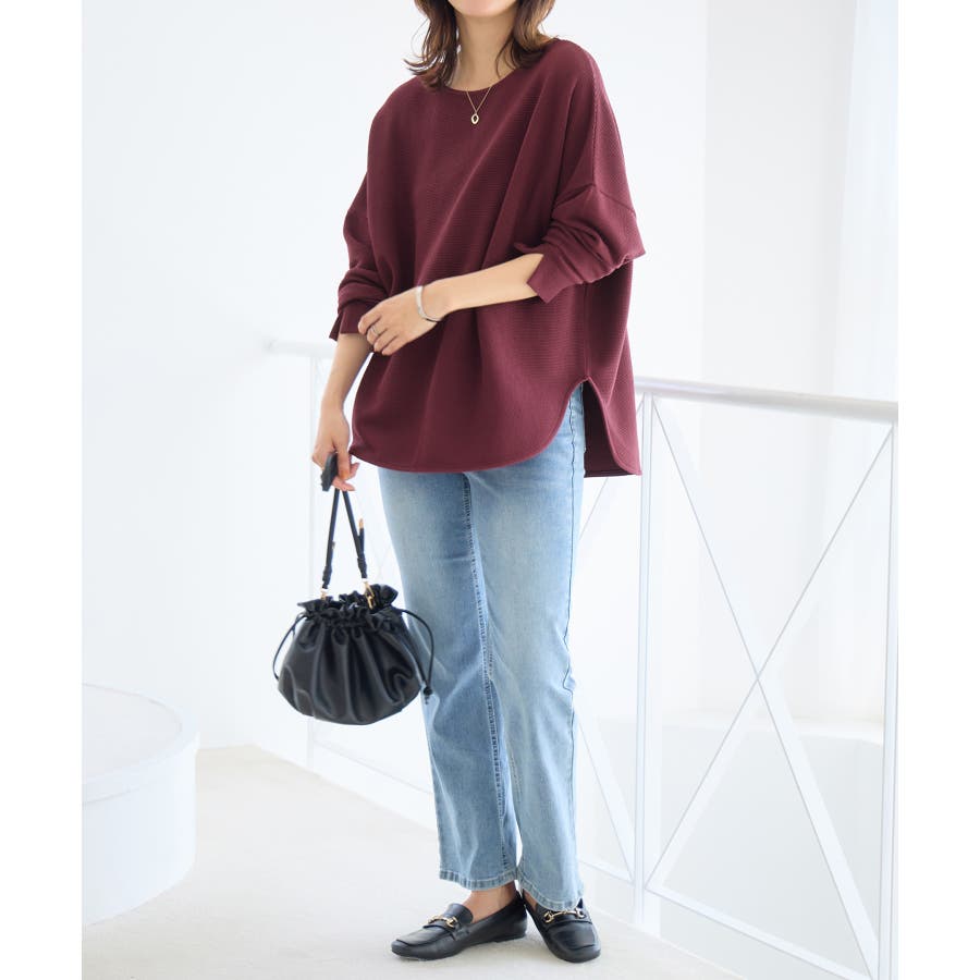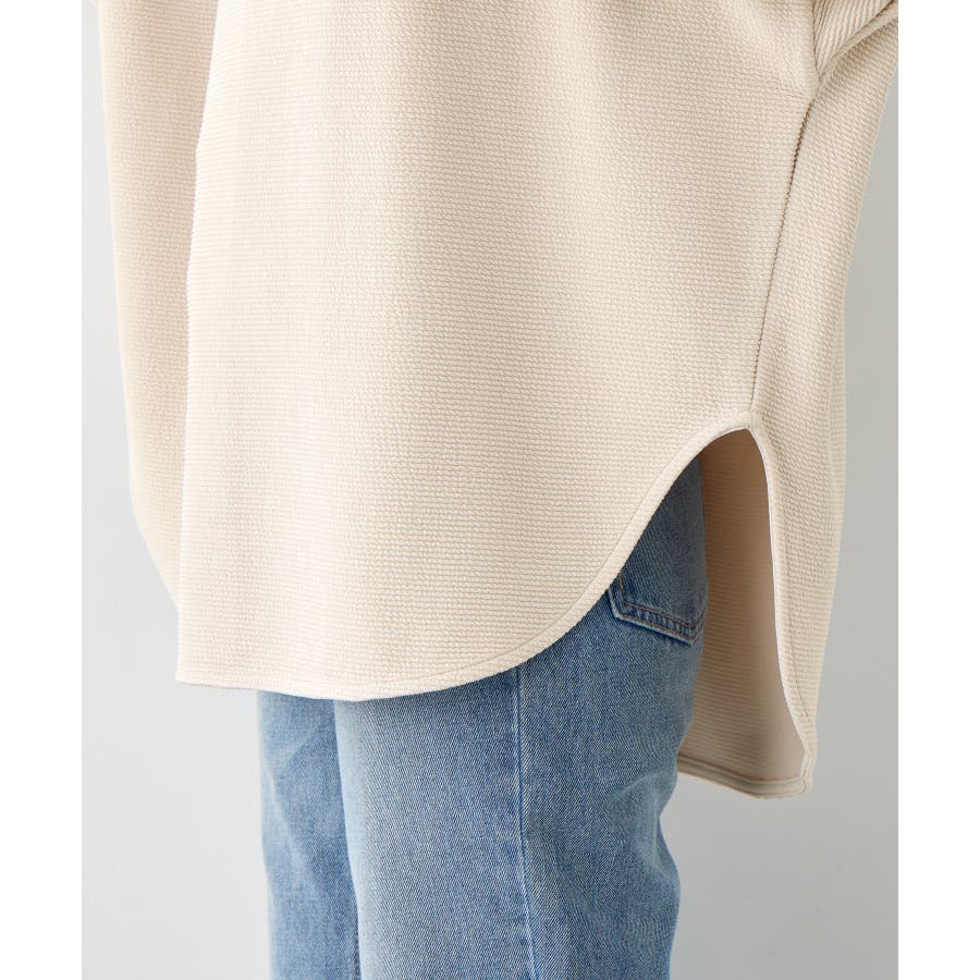 ・チュニック丈のラウンド裾がお腹周りをしっかり隠しながら、すっきりとした印象に仕上げます。