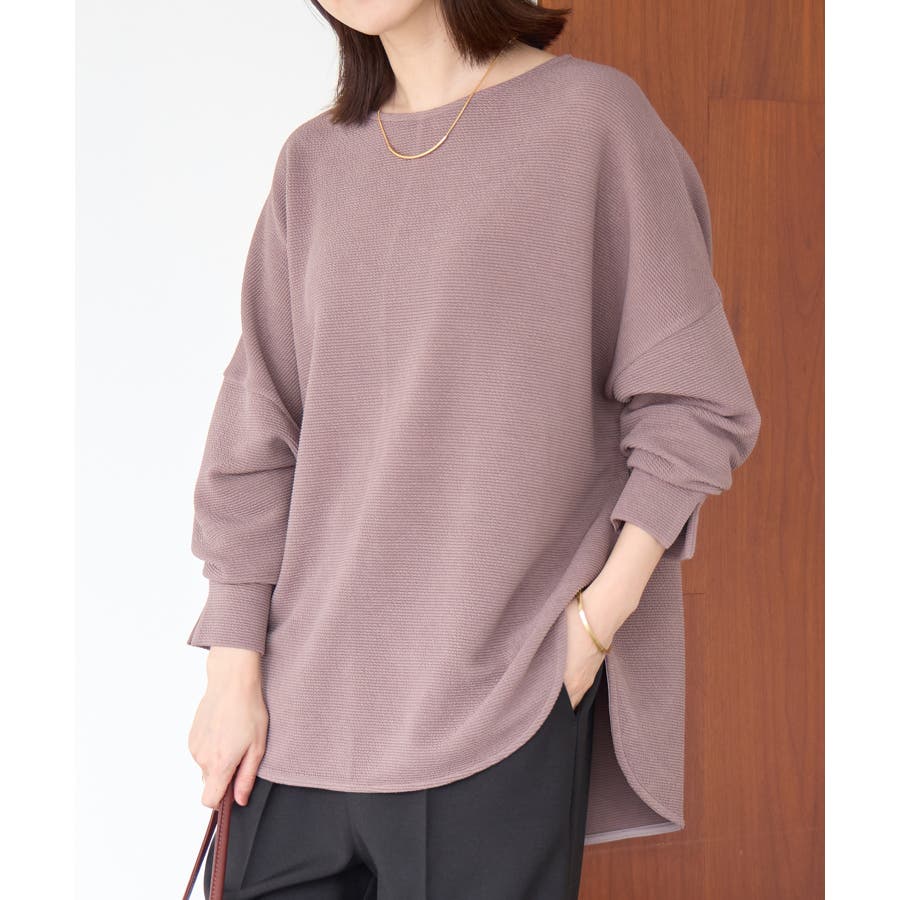 ・ボートネックのデザインで首回りをすっきりと見せ、上品な印象を演出します。