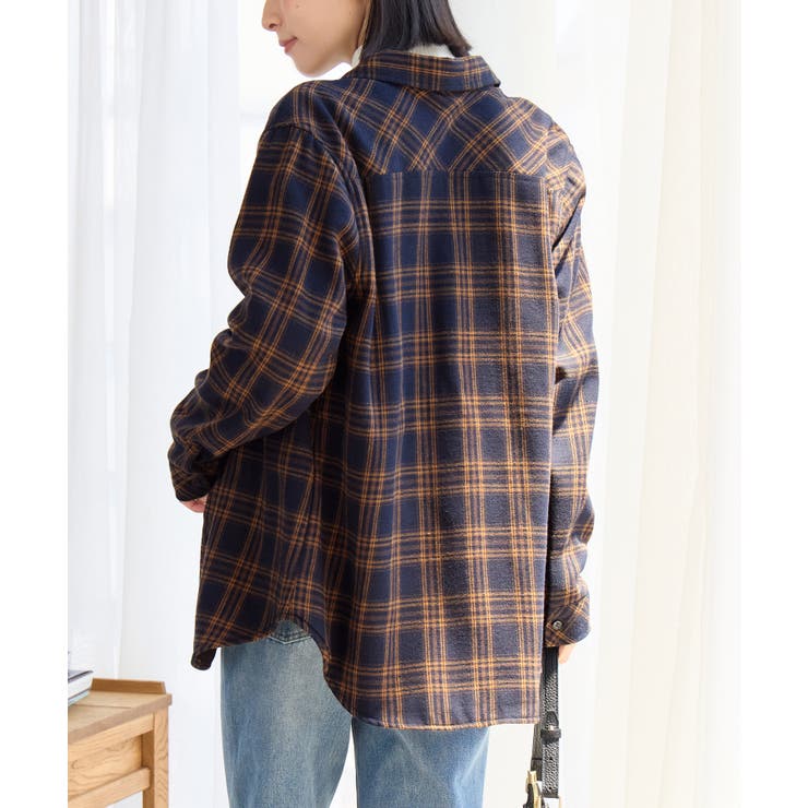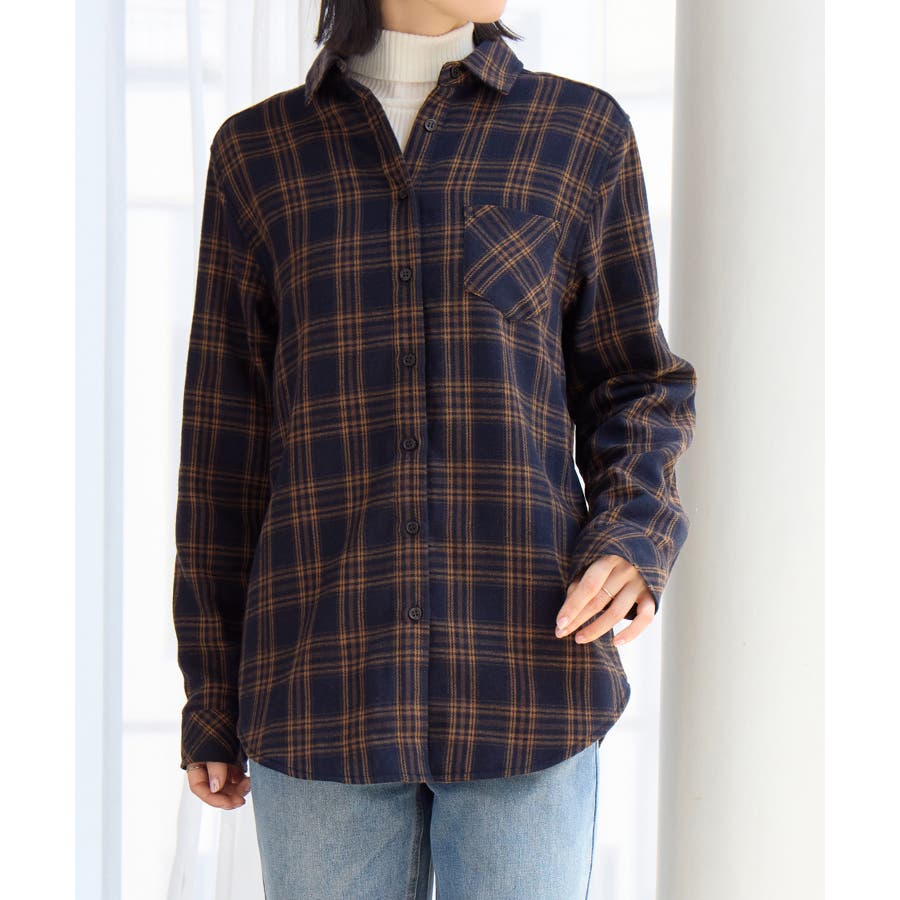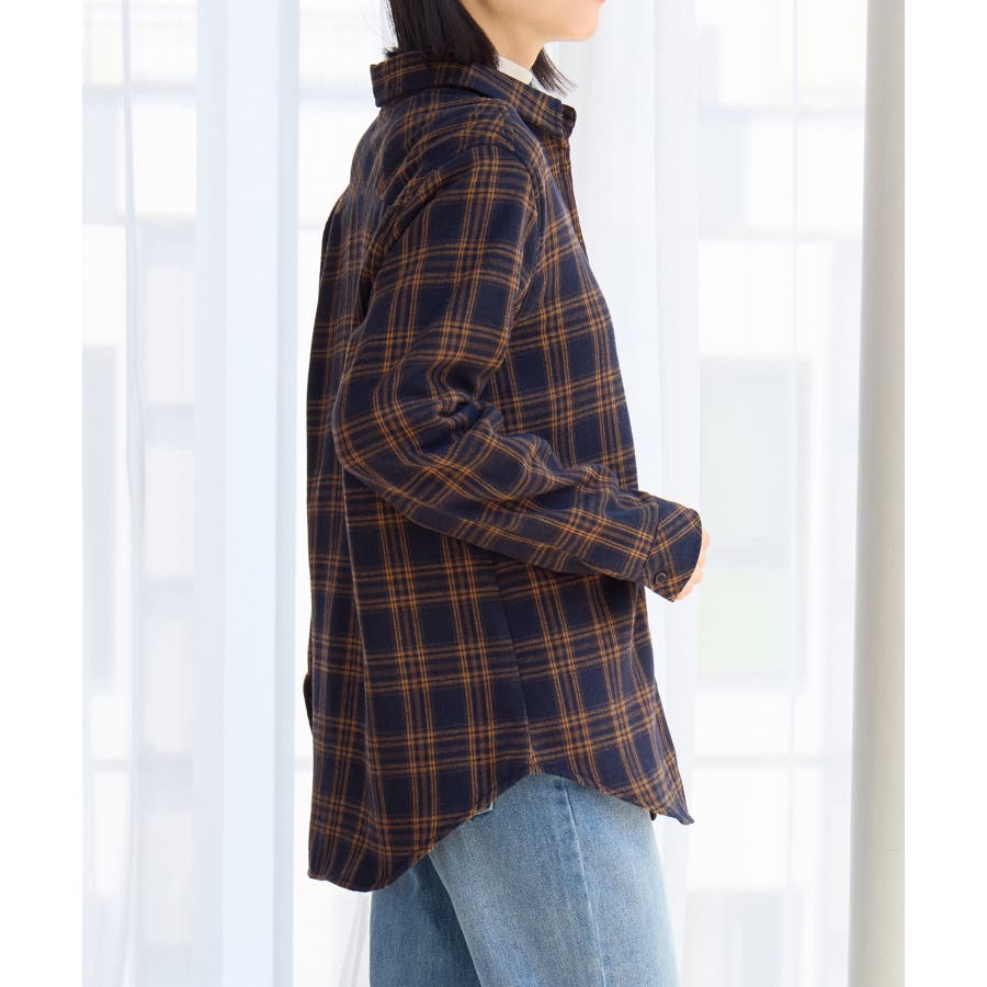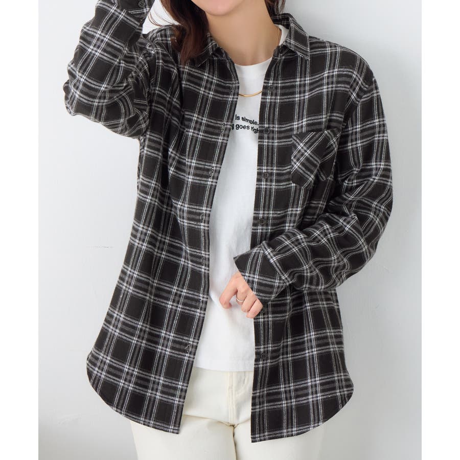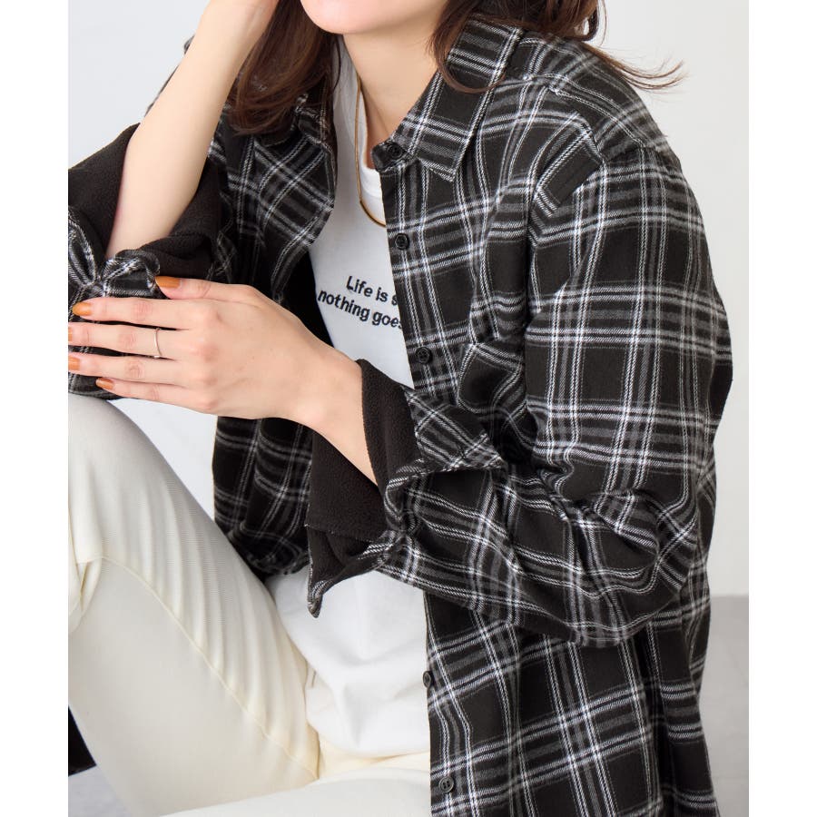 ・表面はチェック柄のネル素材なのに、裏面は薄手フリースの機能的なシャツ。