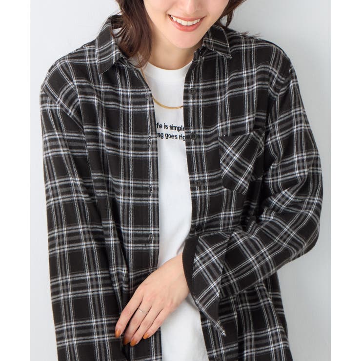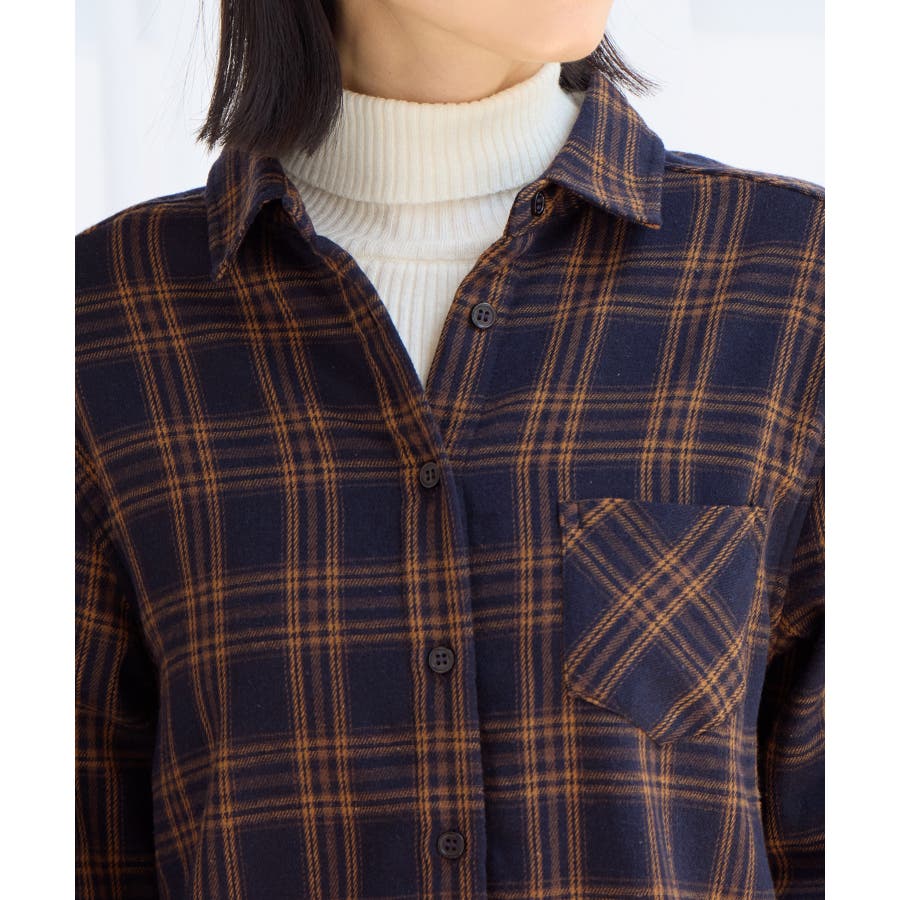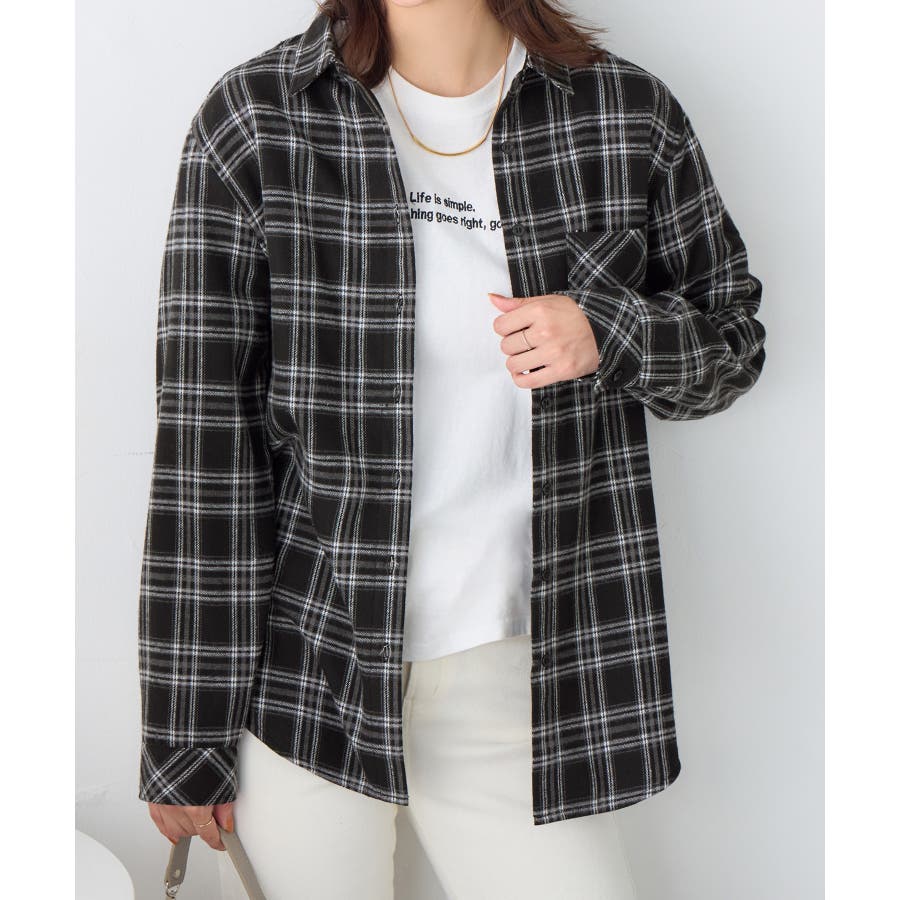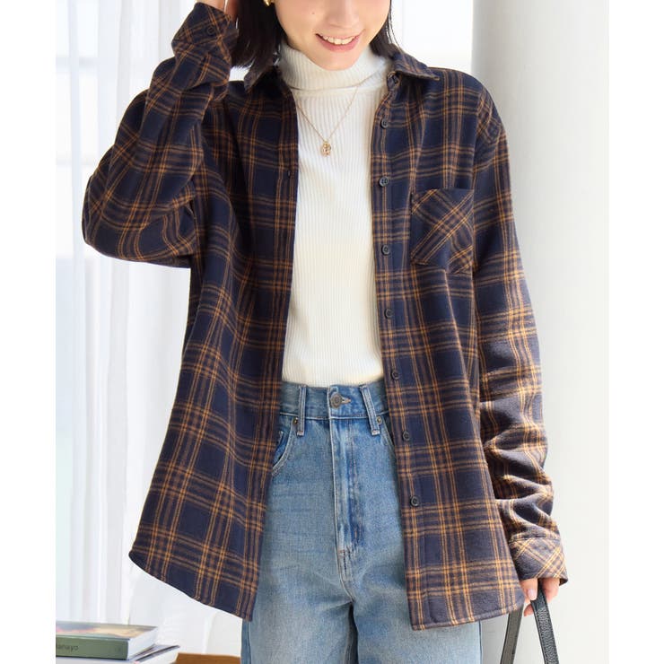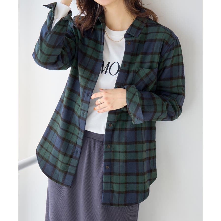 ・表面はチェック柄のネル素材なのに、裏面は薄手フリースの機能的なシャツ。