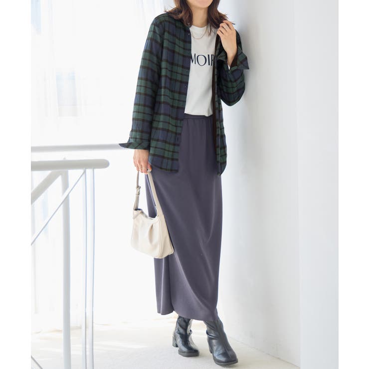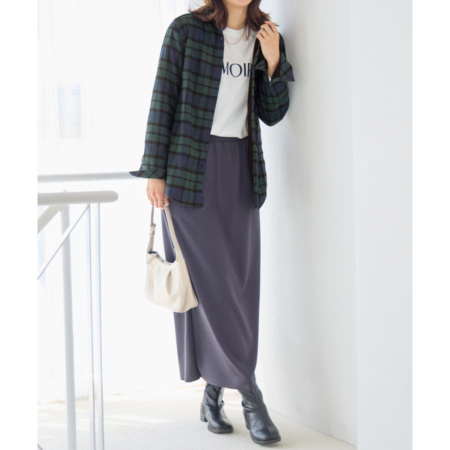 ・スカートにあわせると上品な印象に。大人の女性らしい落ち着いたスタイリングに。