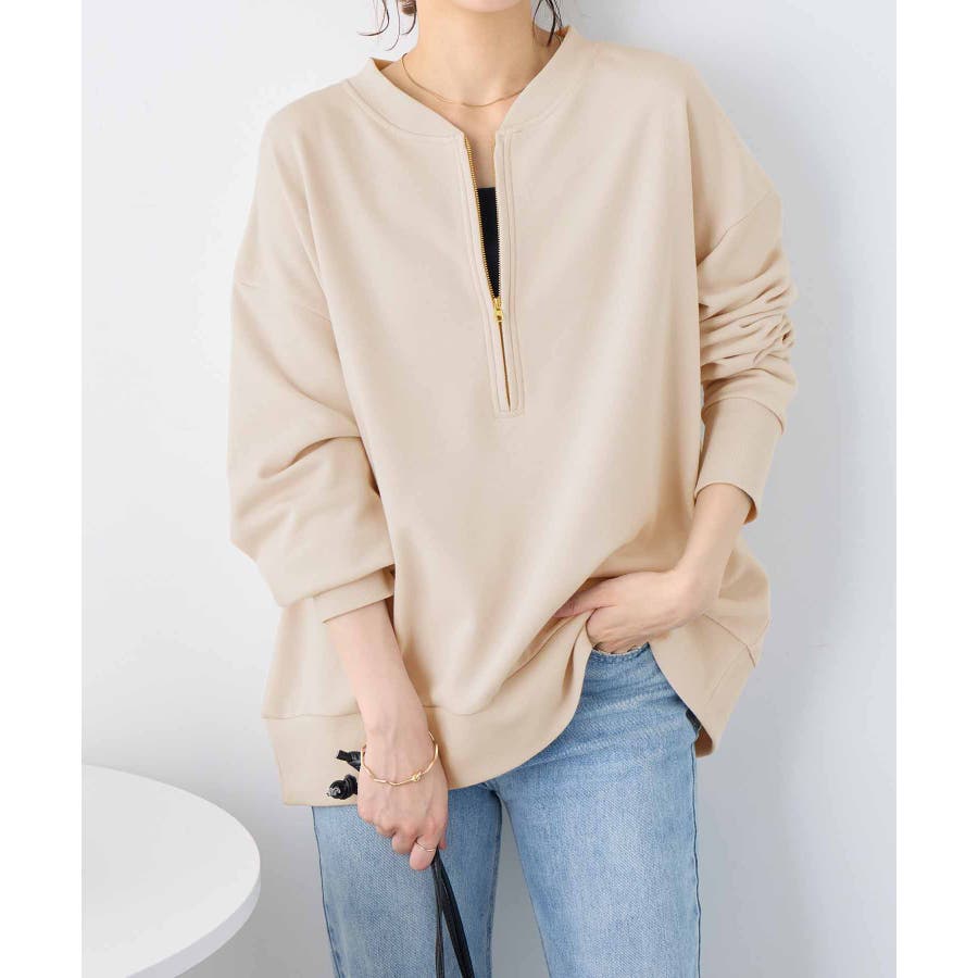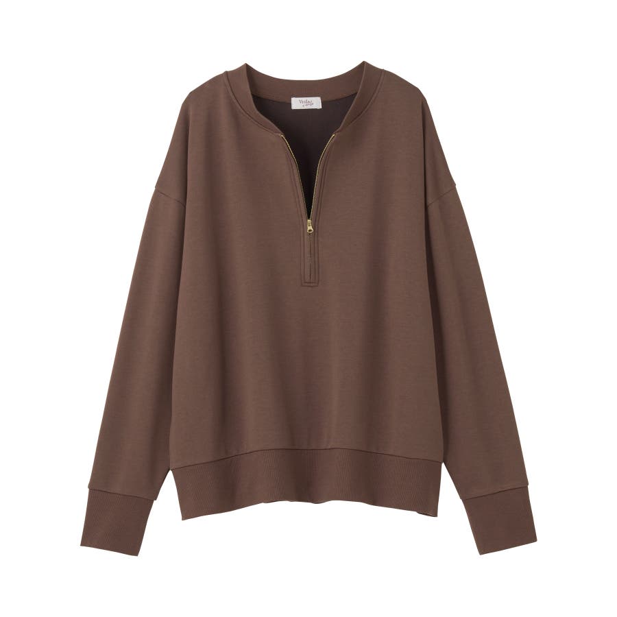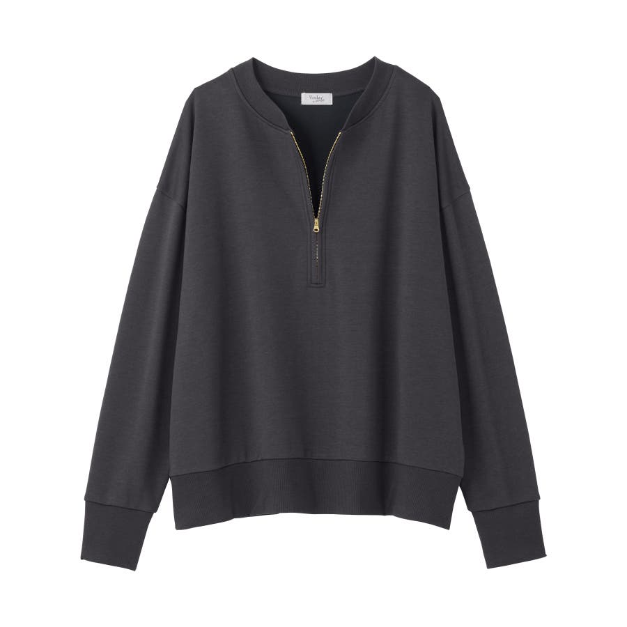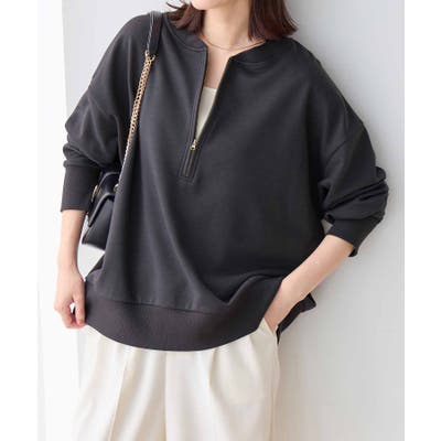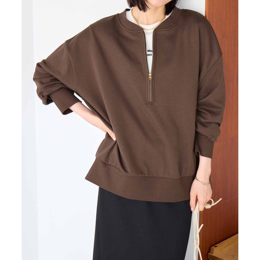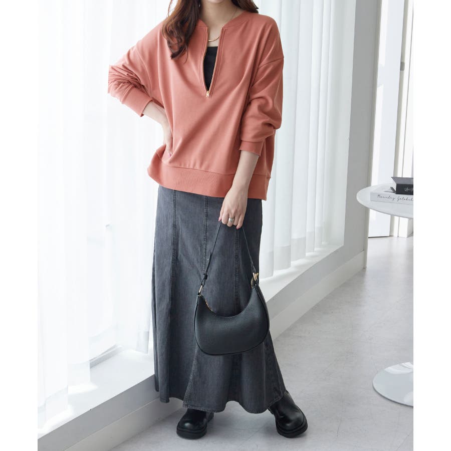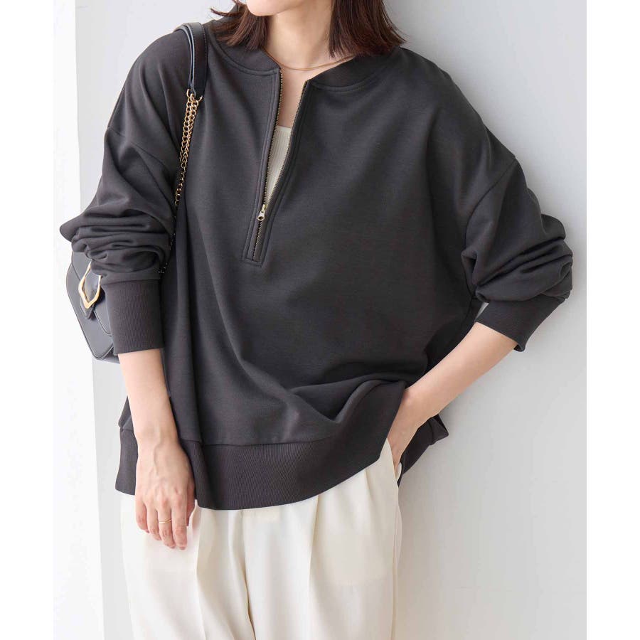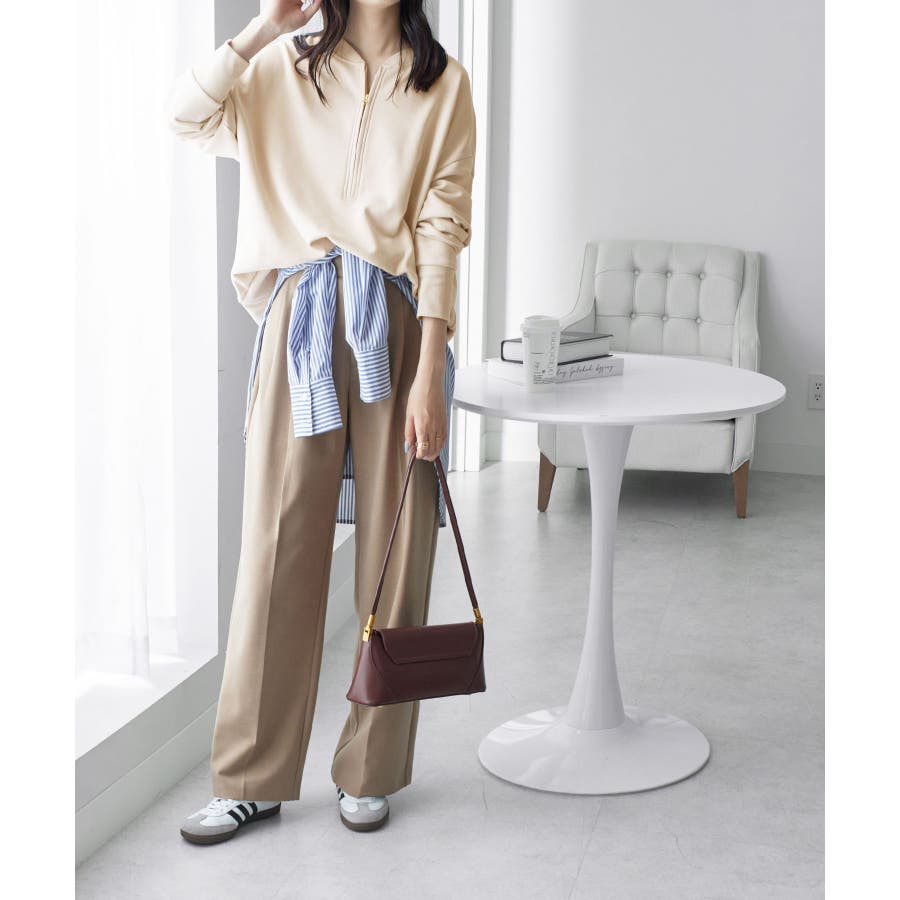 ・大人っぽく綺麗めに着られるデザインで、スウェットながら上品な印象に。