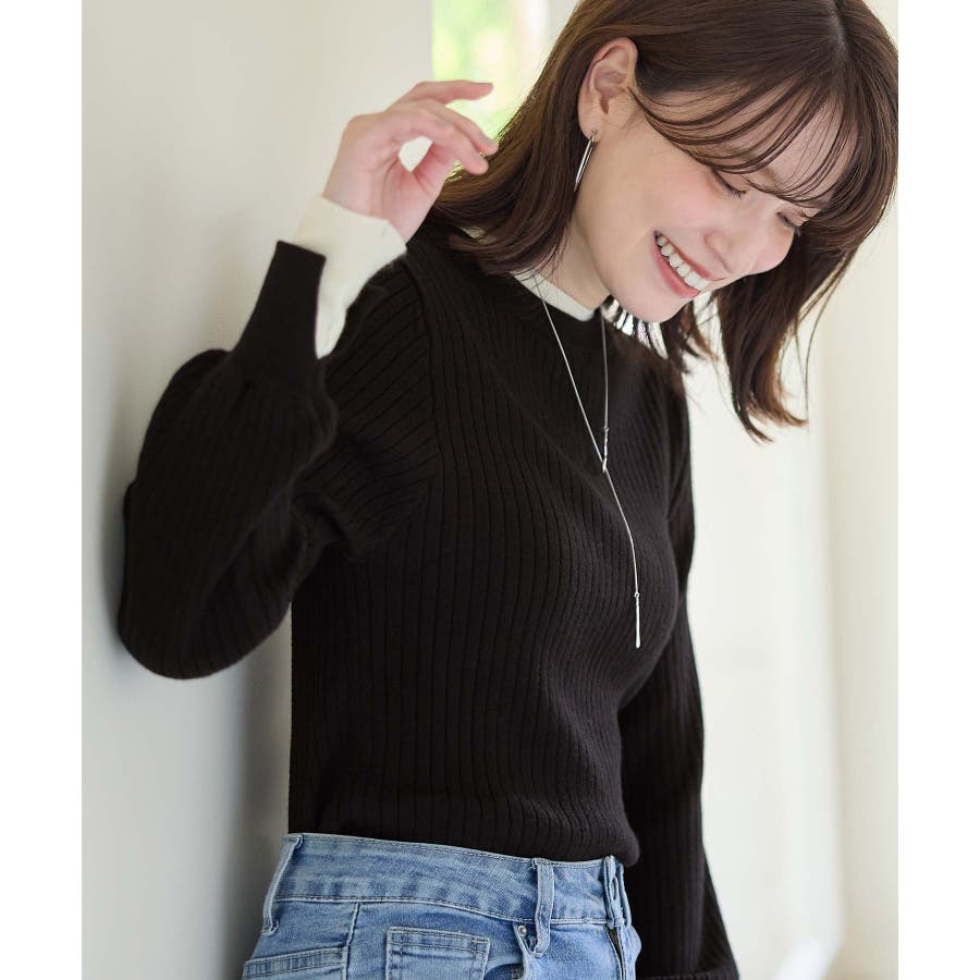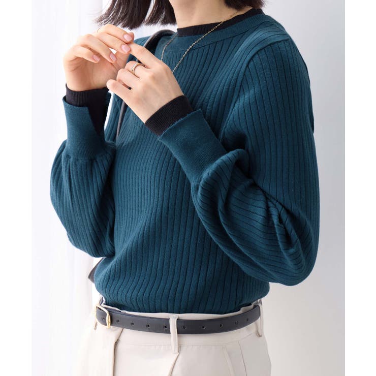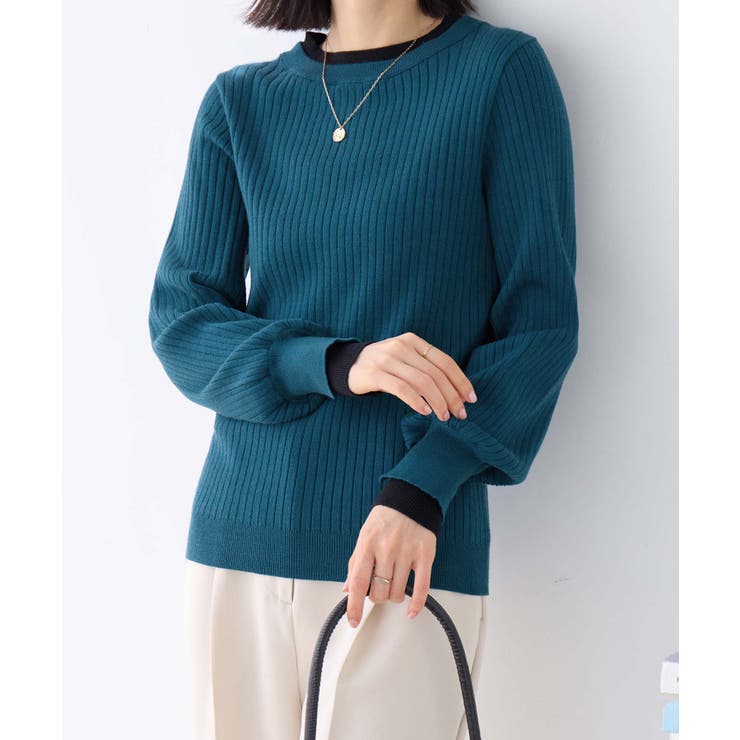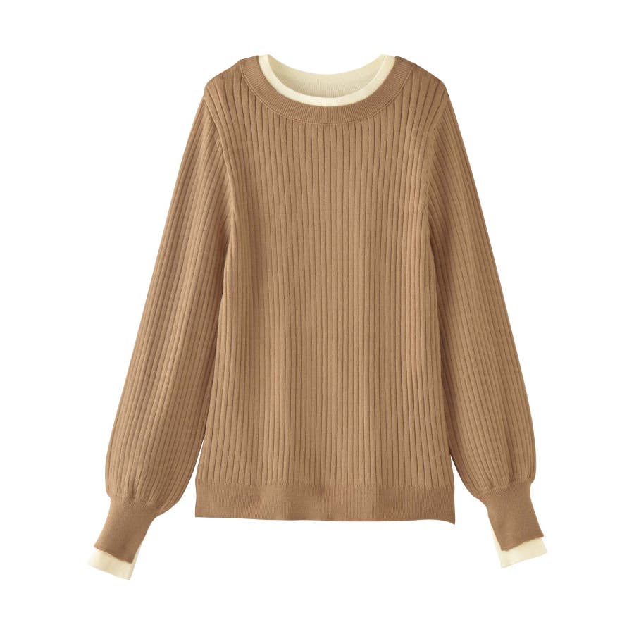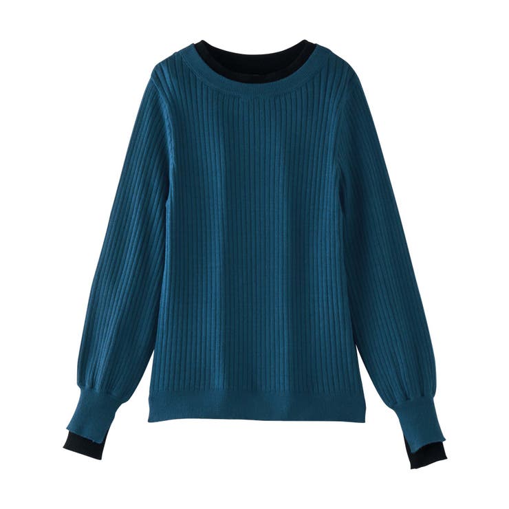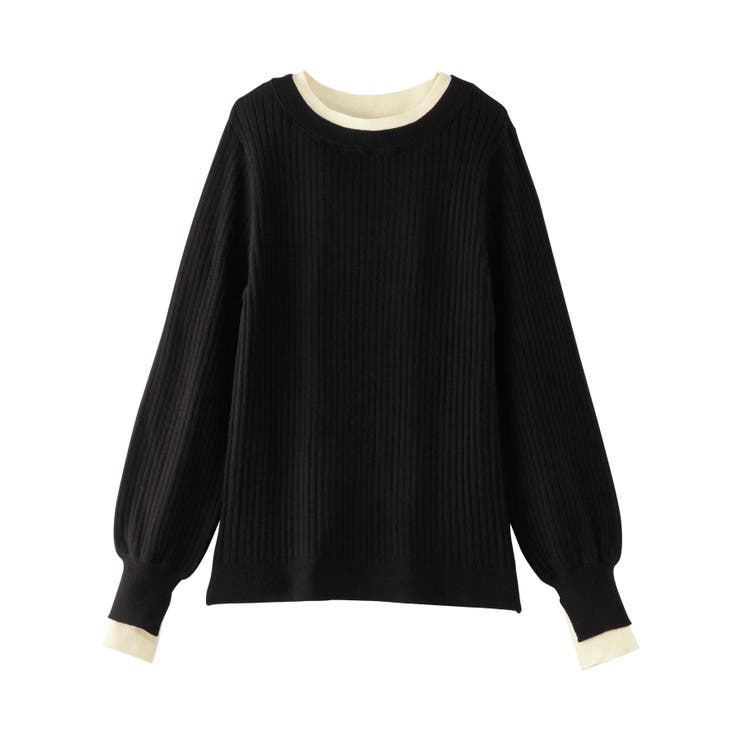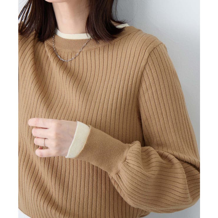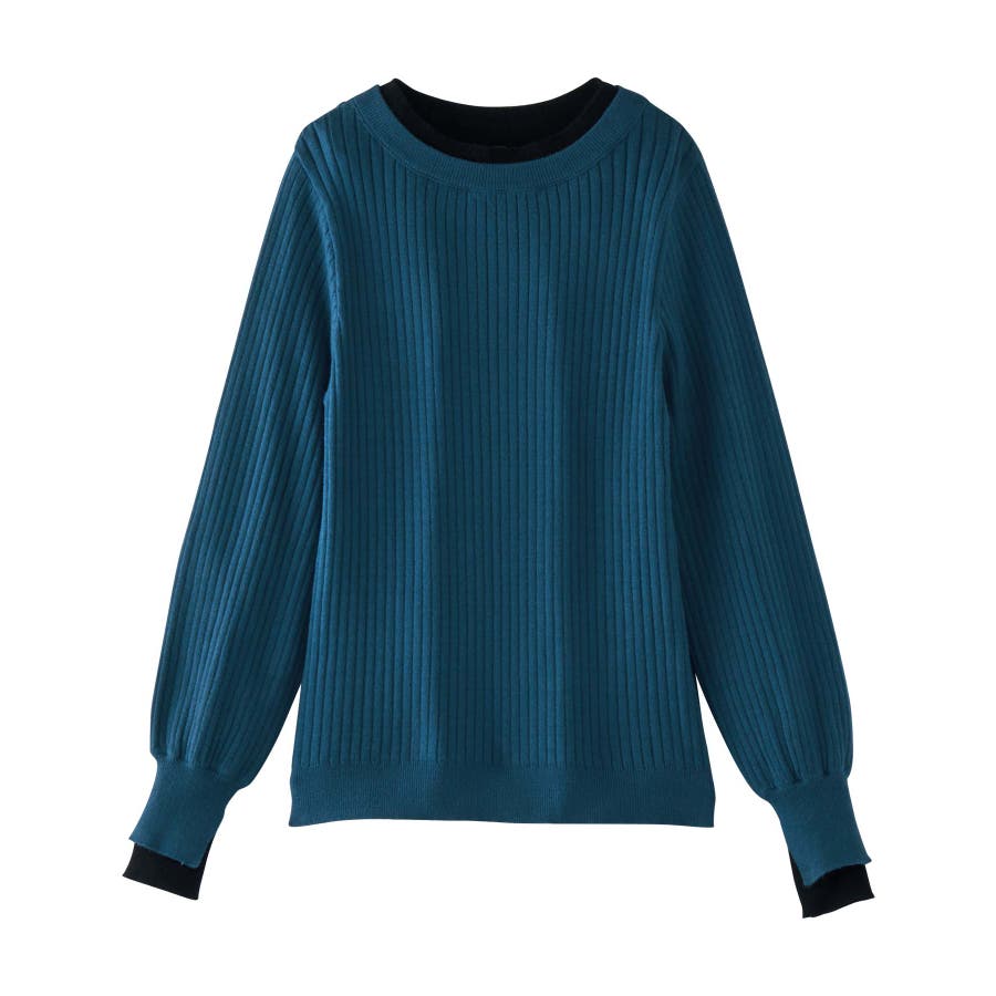 ・襟と袖口がレイヤード風になったデザインが特徴的なニット。