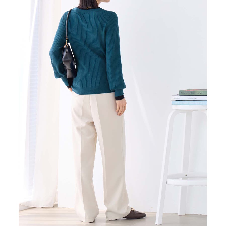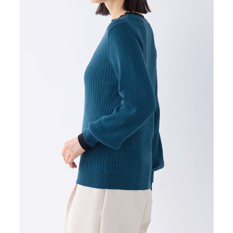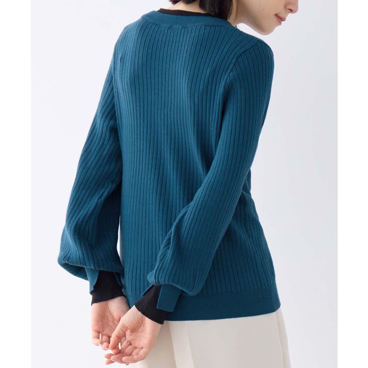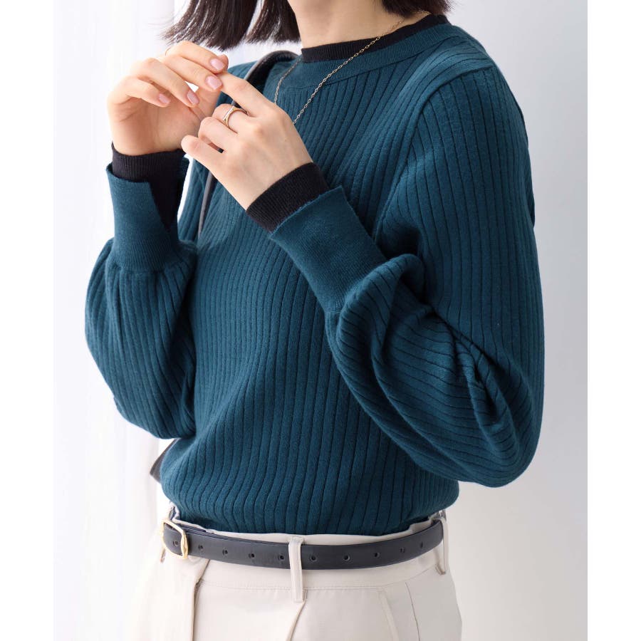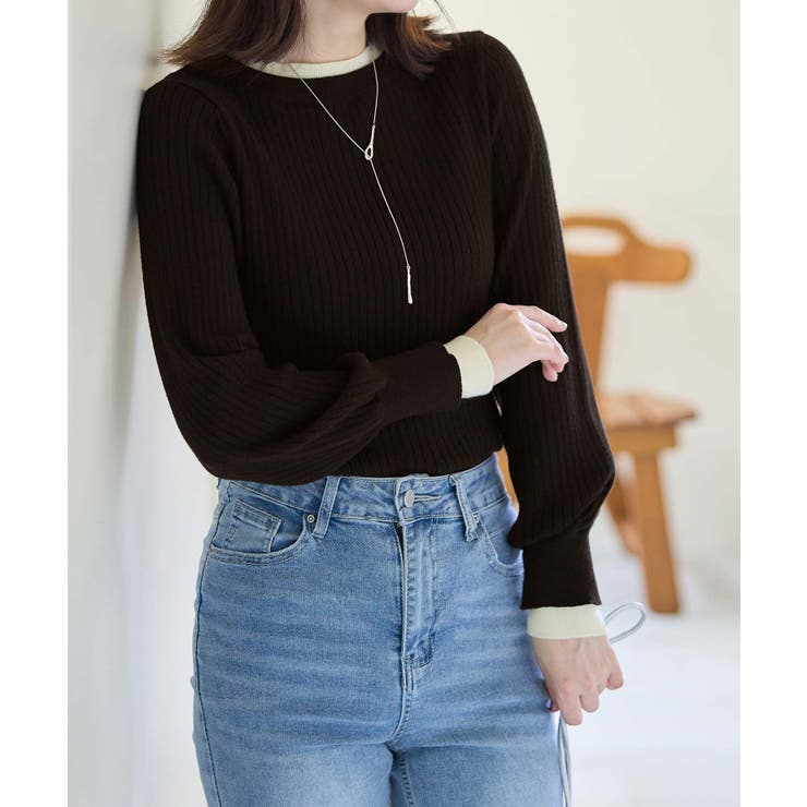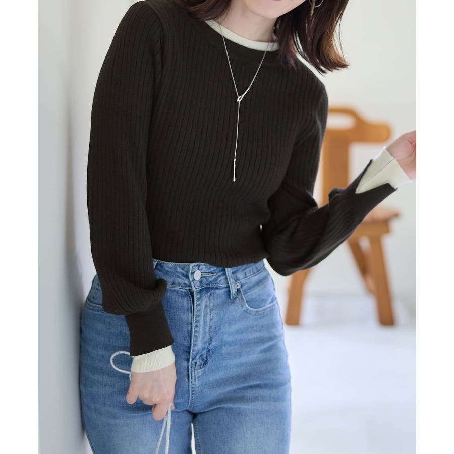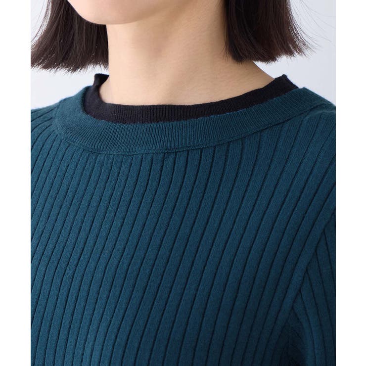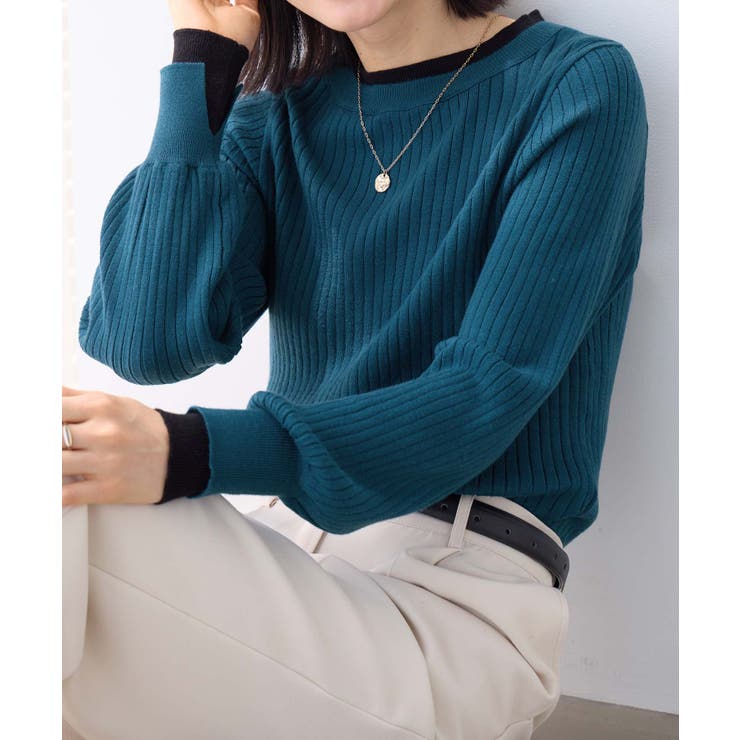 ・襟と袖口がレイヤード風になったデザインが特徴的なニット。