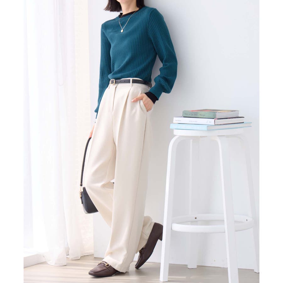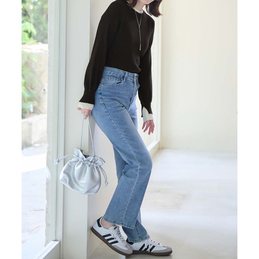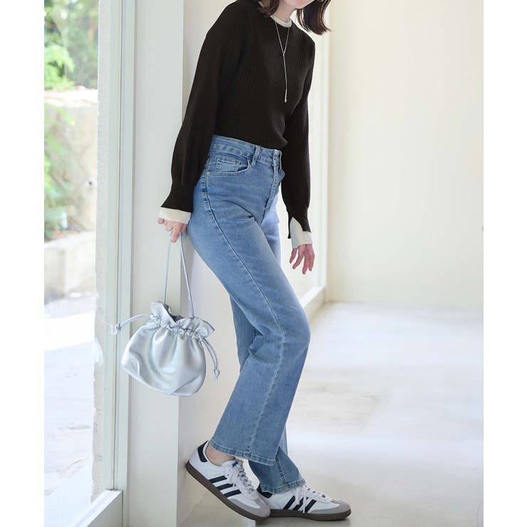 ・すっきりしたシルエットなので、スカートやワイドパンツなどボリューム感のあるボトムとのバランス◎ウエストインでバランスよく仕上げるのがおすすめ。