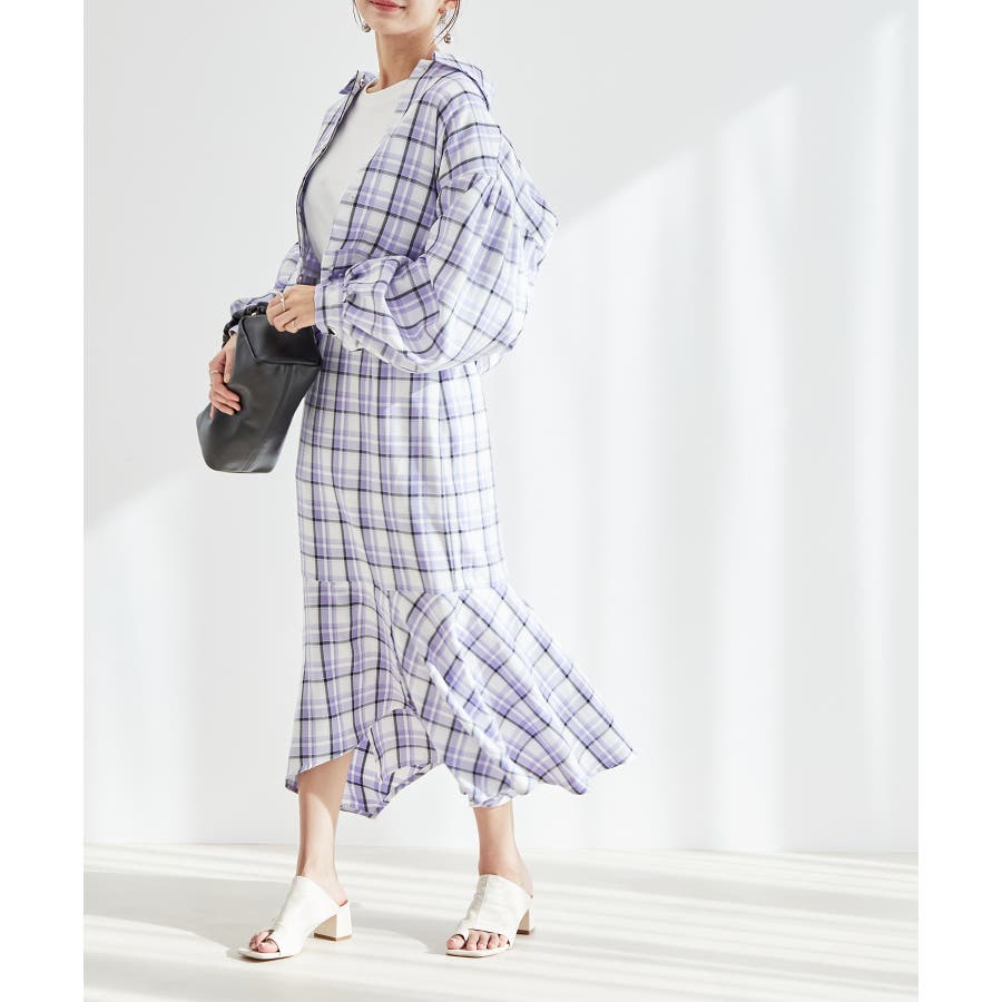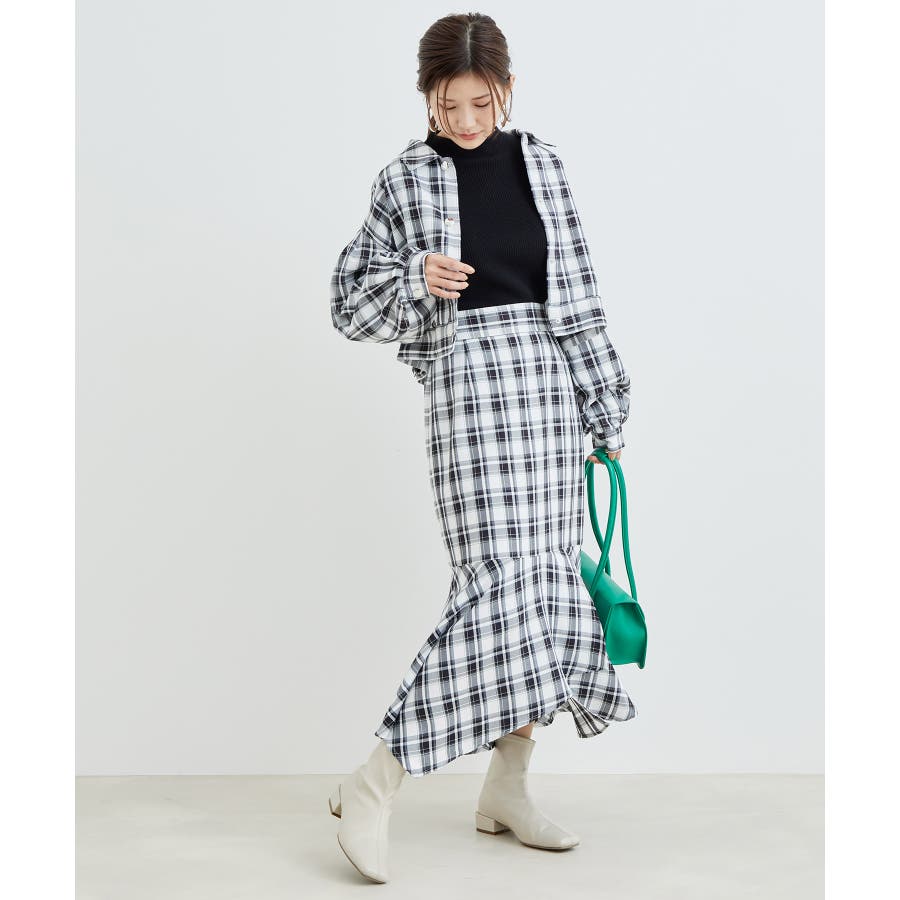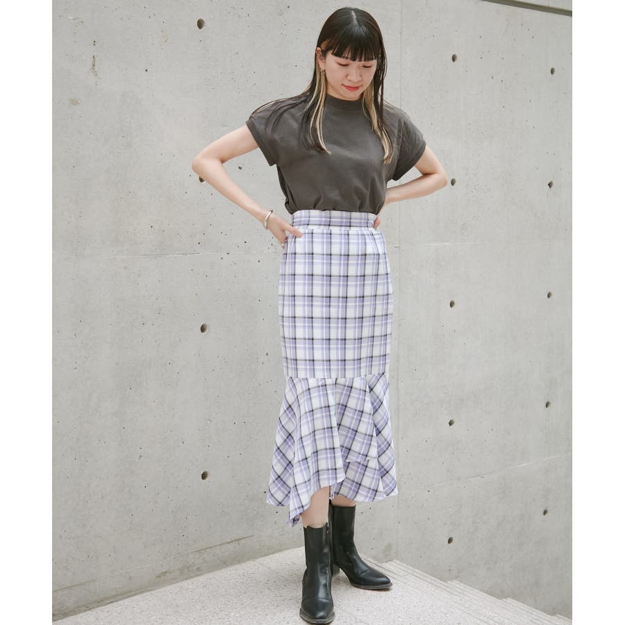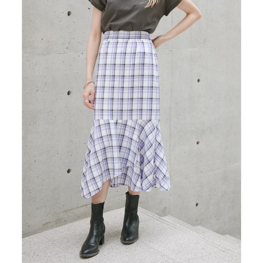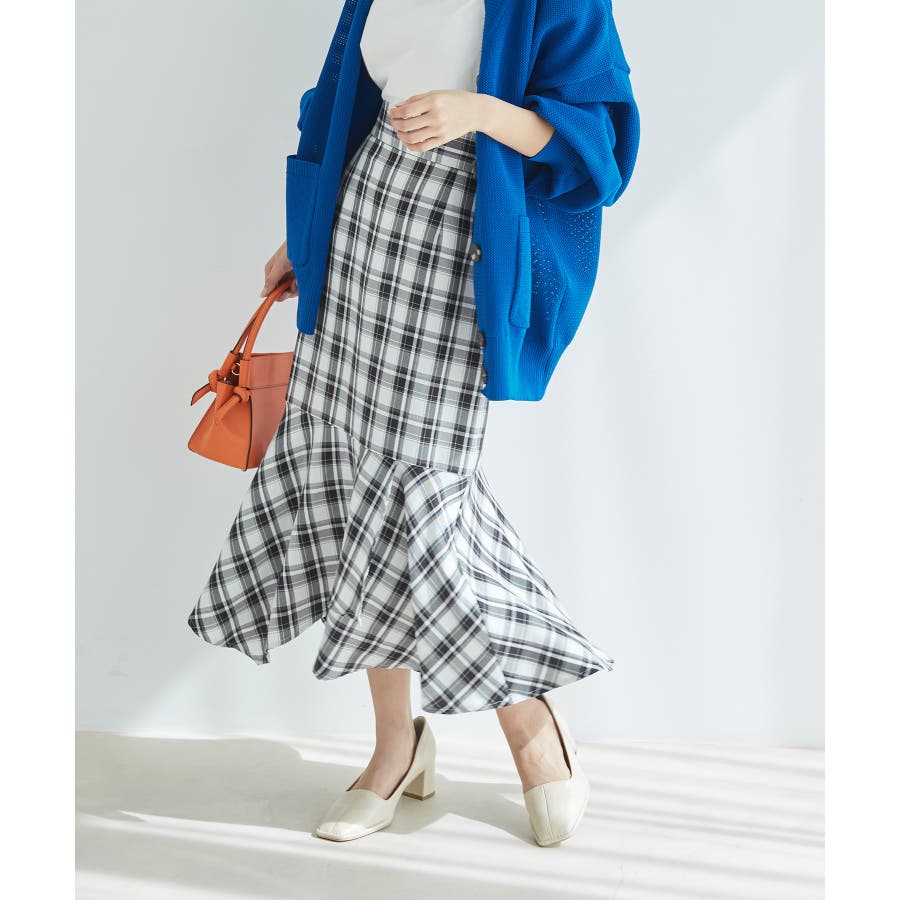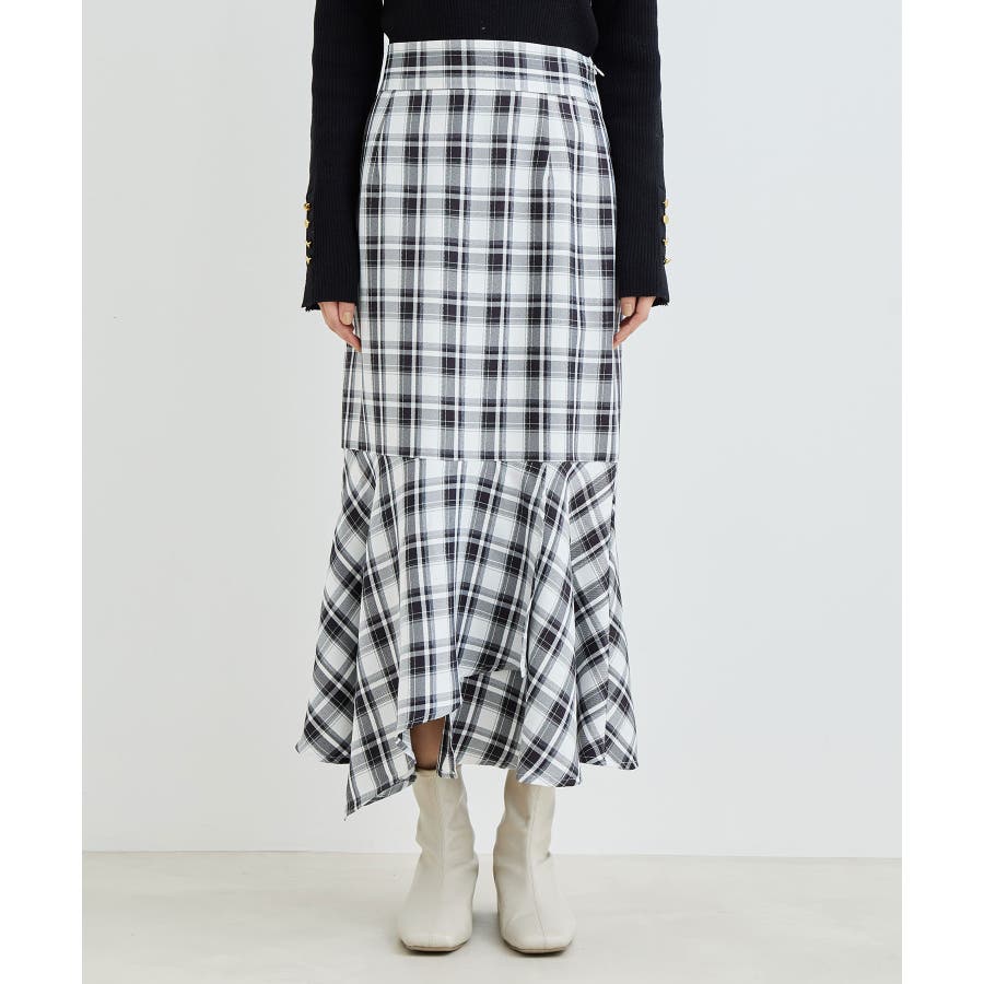 【一部店舗限定】チェック柄イレヘムマーメイドスカート【セットアップ対応】