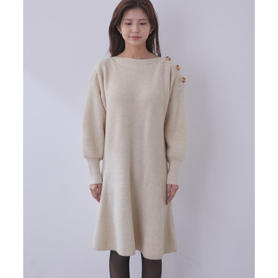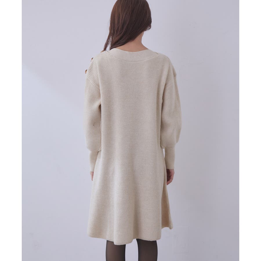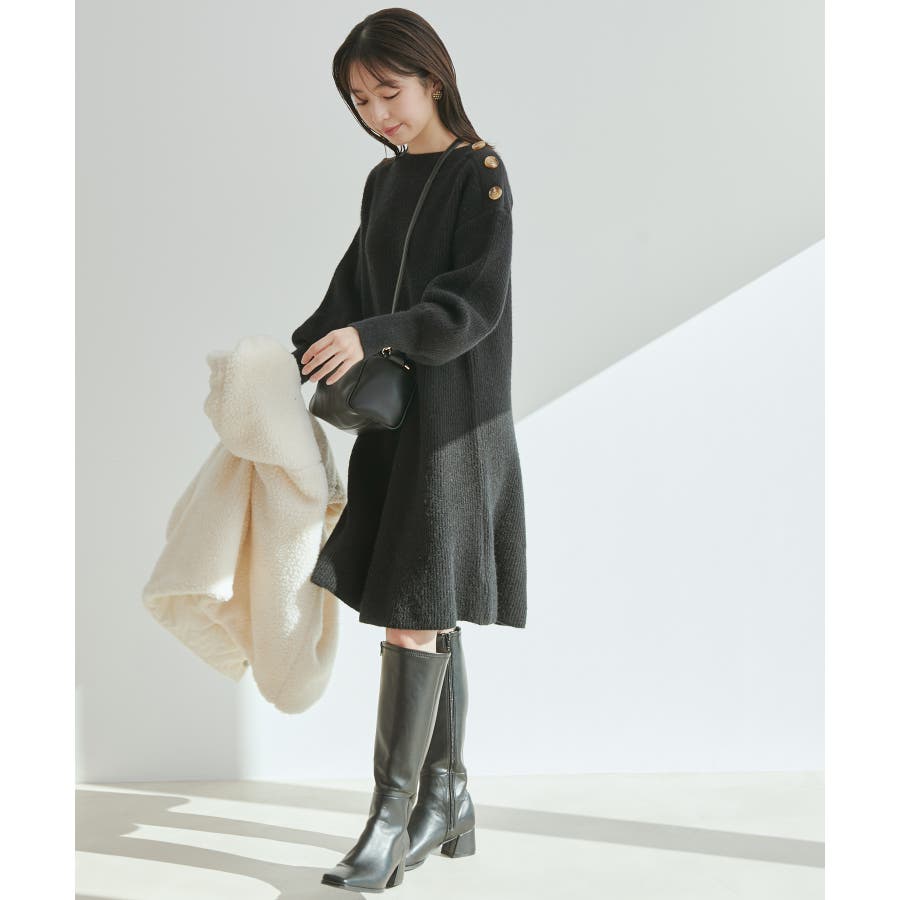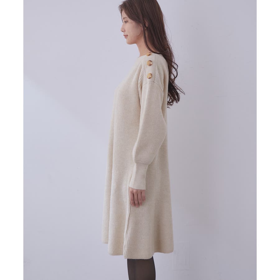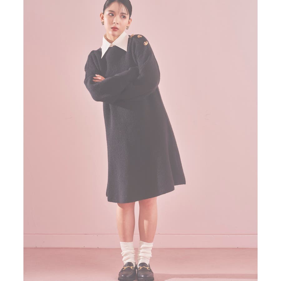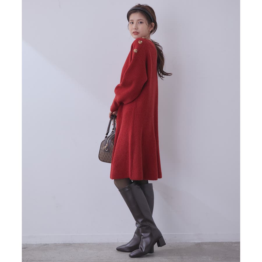 【WEB限定】クラシカル肩釦ニットミニ丈ワンピース