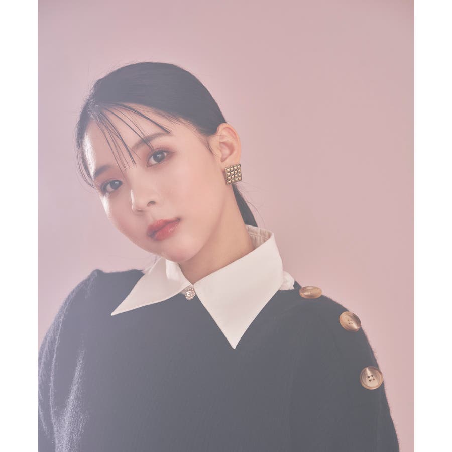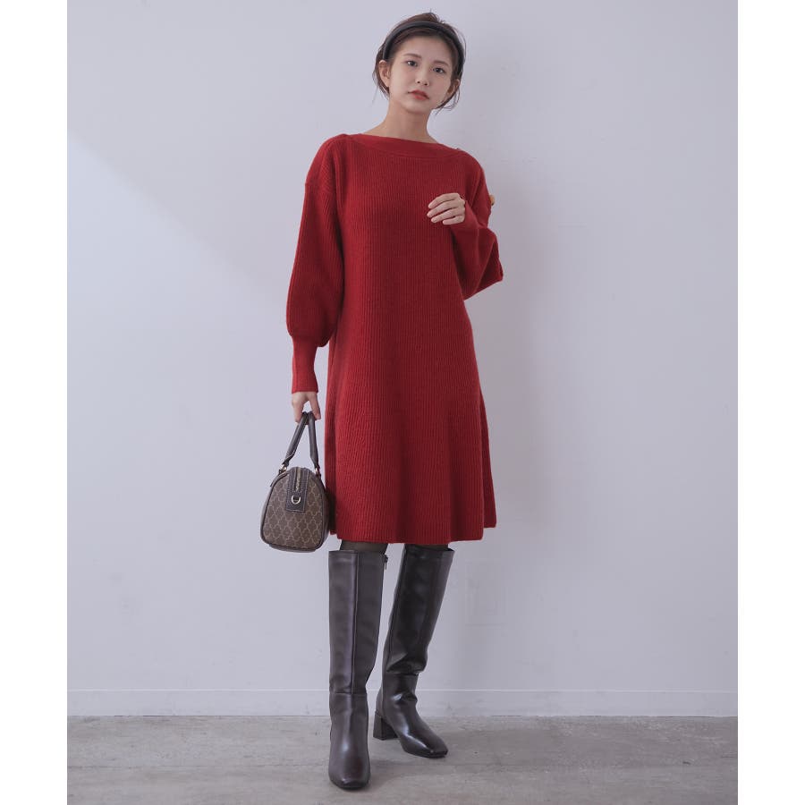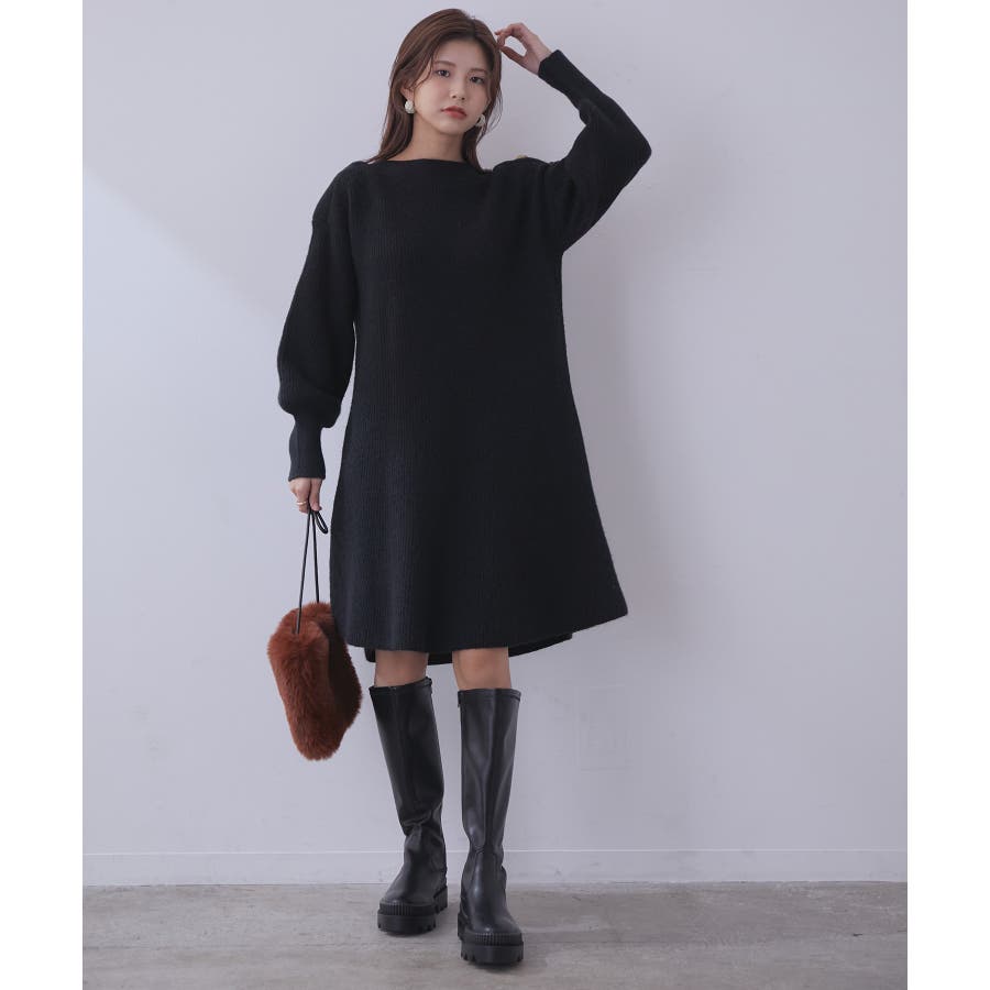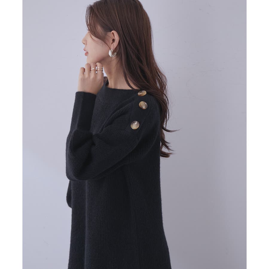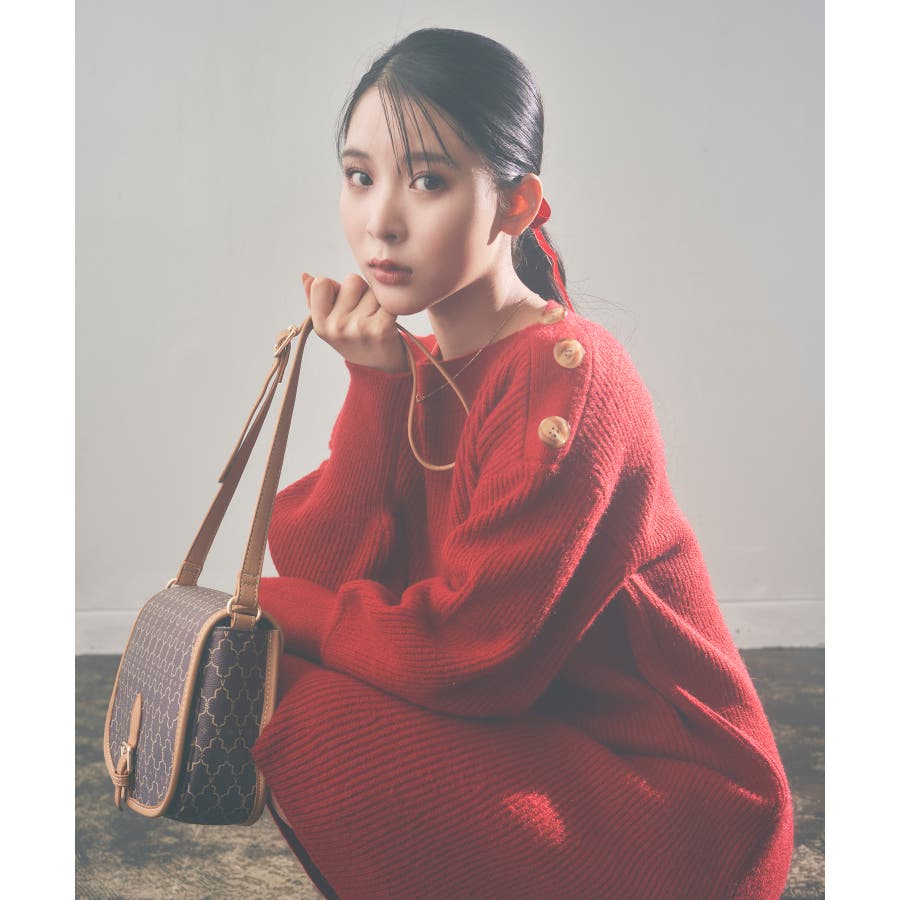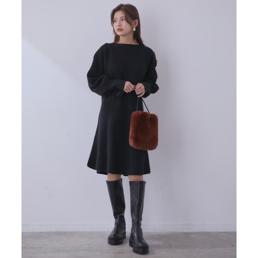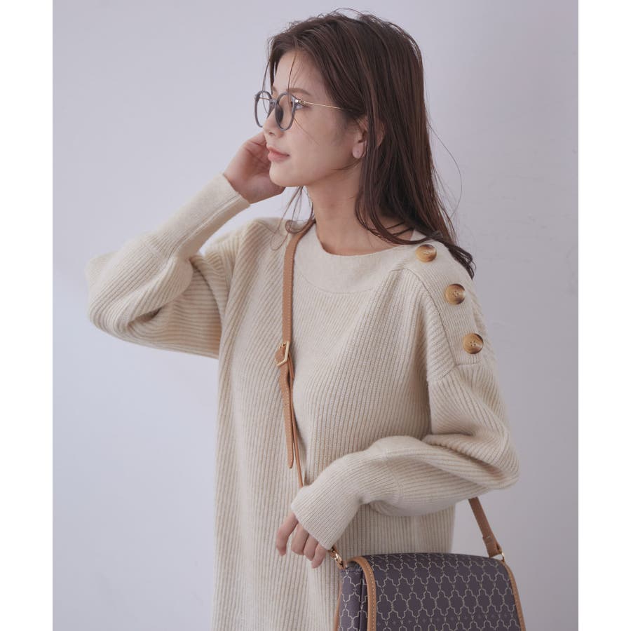 【WEB限定】クラシカル肩釦ニットミニ丈ワンピース