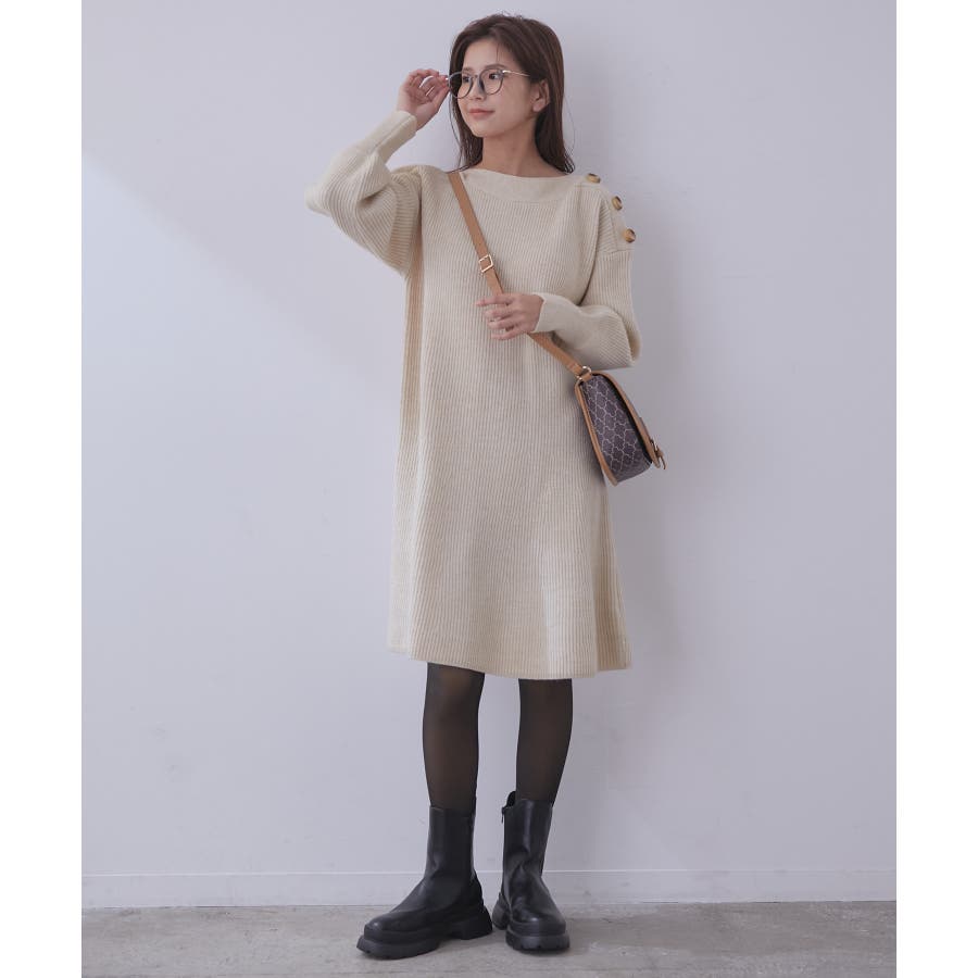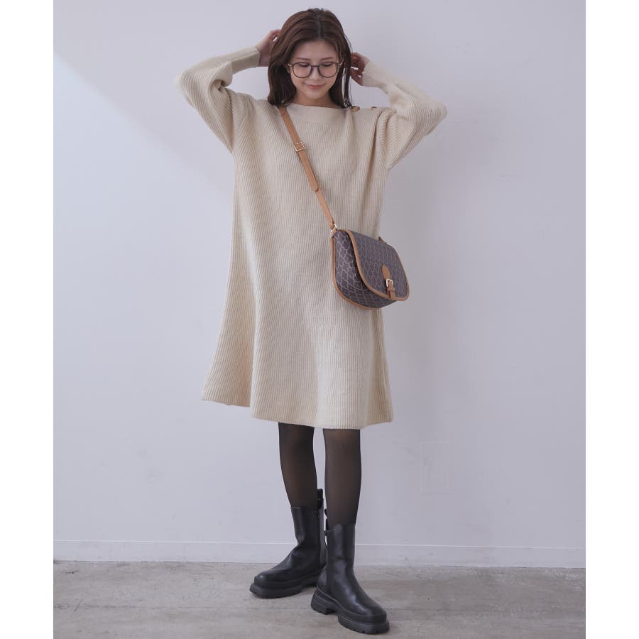 【vis-`a-vis/ビザビ】 ベーシックとトレンドをMIXしたカジュアルスタイルを提案。 デイリ―に使える・今欲しいがすぐに見つかる・その時の気分とトレンドのカジュアルファッションを手軽に楽しみたい女性に向けて。 【デザイン・シルエット】 大き目の肩釦が目を引くニットワンピース。 カジュアルな編地とざっくりとしたサイズ感がポイントです。 抜け感のある首元でこなれ感を演出。 【素材】 ピリング(毛玉)ができにくい加工をかけたニット素材。 【カラー】 秋冬を意識したカラーバリエーションで取り揃えました。 【おすすめのスタイリング】 ブーツを合わせたスタイリングがおすすめ。タイツ合わせも◎ ----------------------------- 裏地:なし 光沢感:なし 透け感:なし ポケット:なし 伸縮性:あり 生地の厚さ:やや厚手 ボタン:肩に飾りボタンあり 季節:秋、冬 ----------------------------- 【モデル着用サイズ】 ミチさん身長:156cm、着用サイズ:M 全色モデル身長:160cm、着用サイズ:M ※こちらは、WEB店舗限定の商品です。実店舗での販売はしておりません。 ※画像の商品はサンプルです。 実際の商品と仕様、加工、サイズが若干異なる場合がございます。