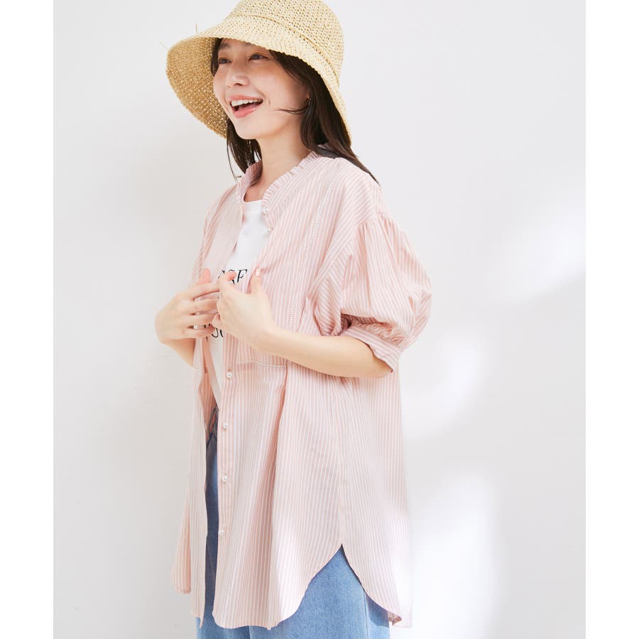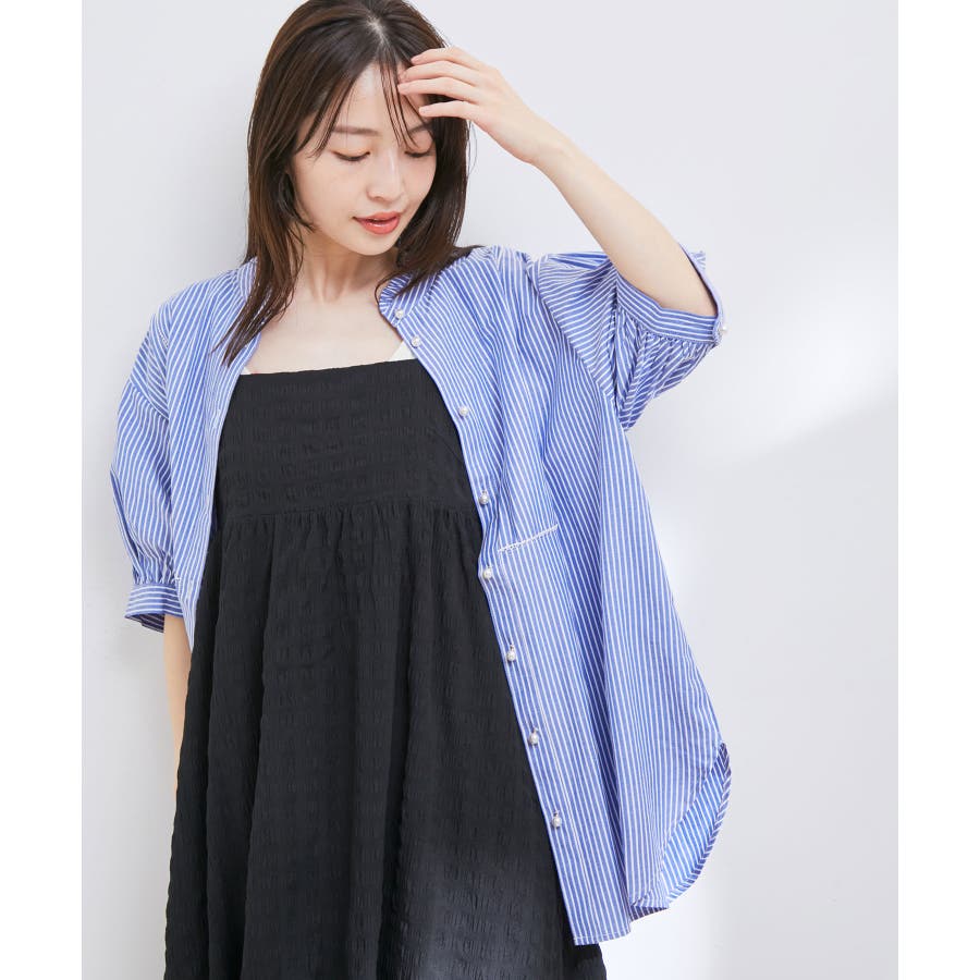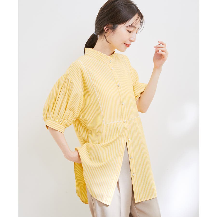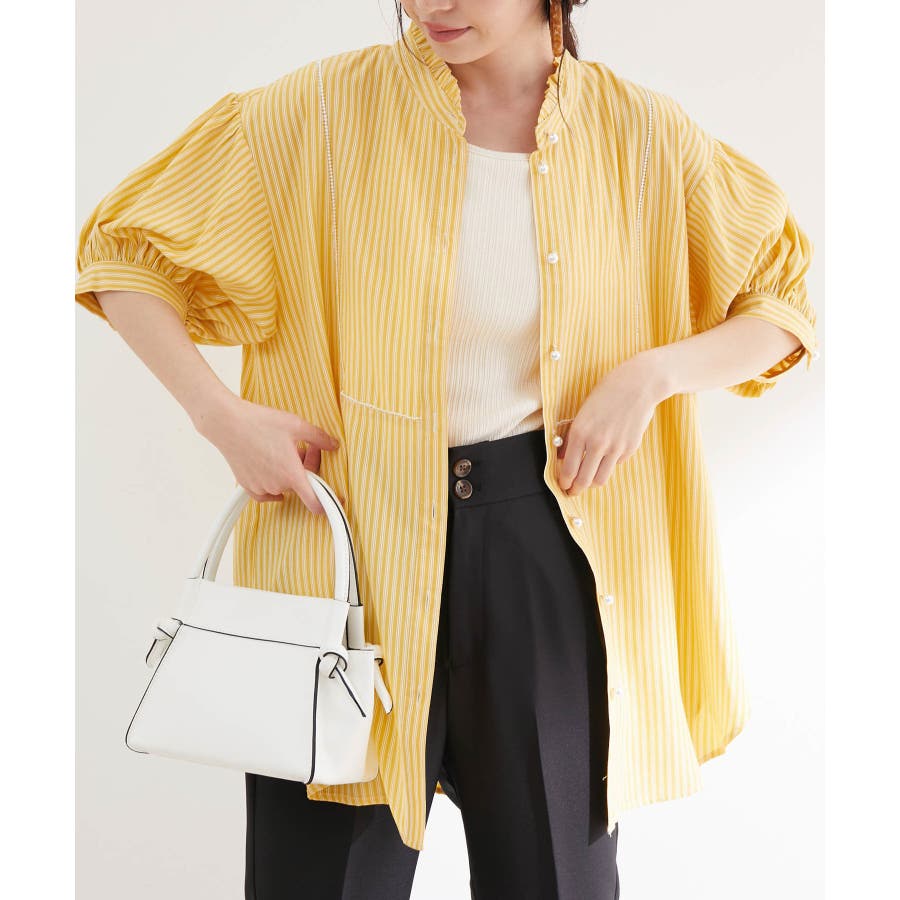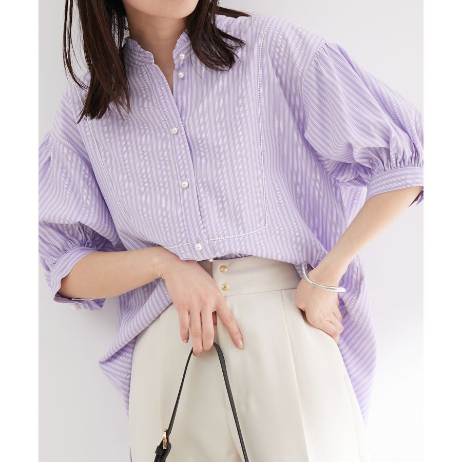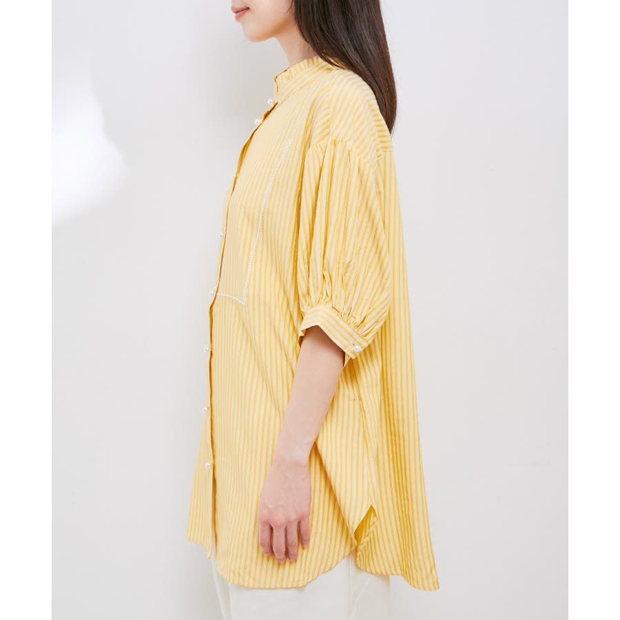 【vis-`a-vis/ビザビ】 女っぽくエッジの効いた好奇心旺盛なビザビスタイル 「Casual」「Feminine」へのこだわりのディテールと着映えするトレンド服を手軽な価格で提案 どこか必ず女性らしさを感じる魅せる今どきスタイル 【デザイン・シルエット】 切り替え部分にレースをはさみこんだ細部まで拘ったアイテムです。 釦はコロッとした大きめのパールを使用し、高見えと女性らしいディティールになっています。 裾はラウンドタイプで、インしてもアウトで着ても簡単に決まります。 フリル付きのスタンドタイプの衿なので重ね着もしやすいです。 袖はロングシーズン使いやすい上品な5分袖丈に。 同シリーズで長袖バージョン(BPH52000)もございます。 【素材】 どんなシーンでも合わせやすい細めのストライプ生地を使用しています。 シワになりにくいのも嬉しいポイント◎ ※カラーによって組成が異なります。 ネイビー・ピンク:(本体)ポリエステル 65% 綿 35%(レース部分)ポリエステル 100% ラベンダー・イエロー:(本体)ポリエステル 61% レーヨン 39%(レース部分)ポリエステル 100% 【カラー】 定番のネイビーに柔らかなカラーをプラスしたストライプ柄4色展開。 ラベンダーは完売しました。 【おすすめのスタイリング】 ボトムイン・アウトどちらでも◎ 衿だけ出したレイヤードスタイリングや前秋の羽織としてもおすすめです! ----------------------------- 裏地:なし 光沢感:なし 透け感:なし ポケット:なし 伸縮性:なし 生地の厚さ:やや薄手 ボタン:あり 季節:春~初秋 ----------------------------- 【モデル着用サイズ】 全色モデル身長:160cm、着用サイズ:F ※こちらは、WEB店舗限定の商品です。実店舗での販売はしておりません。 ※画像の商品はサンプルです。 実際の商品と仕様、加工、サイズが若干異なる場合がございます。