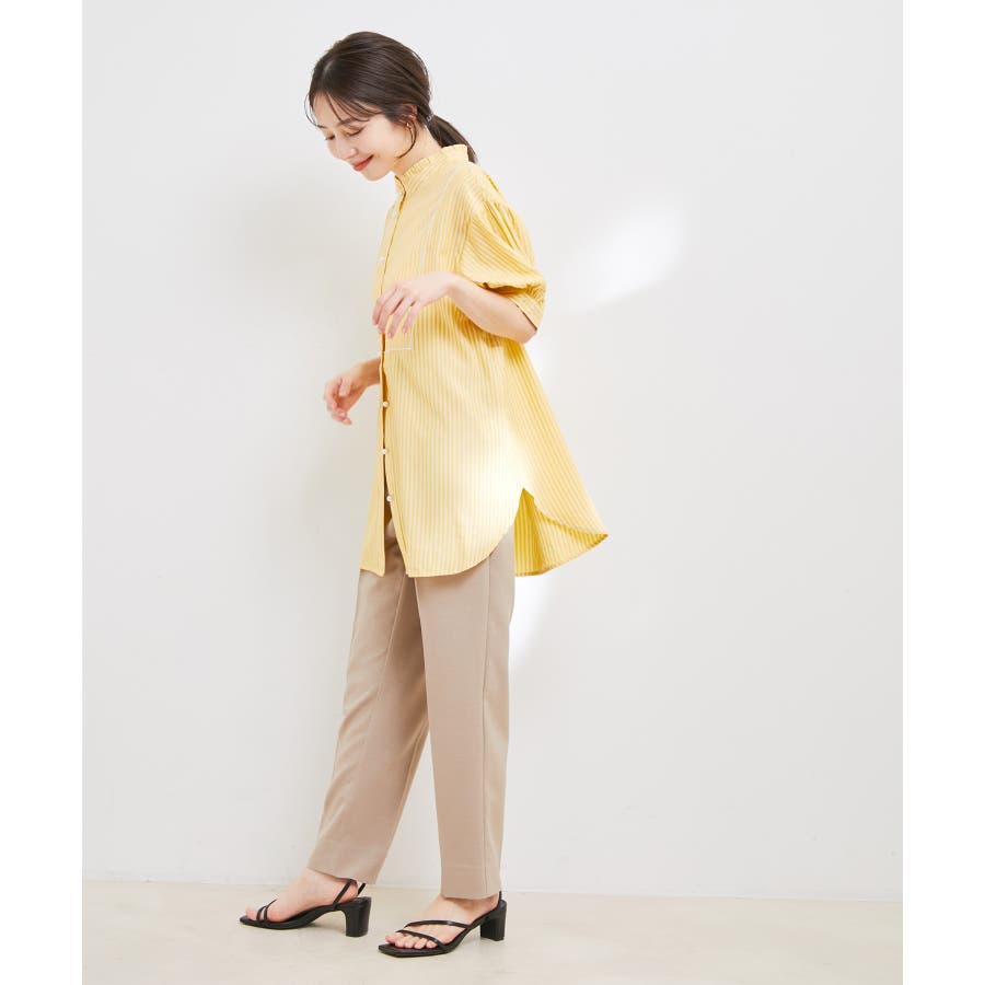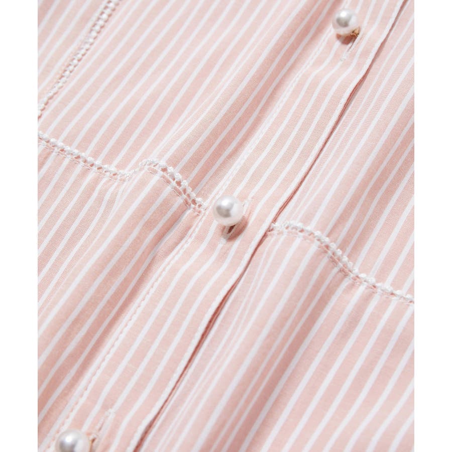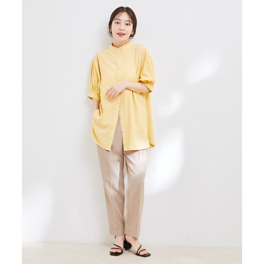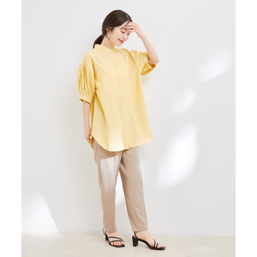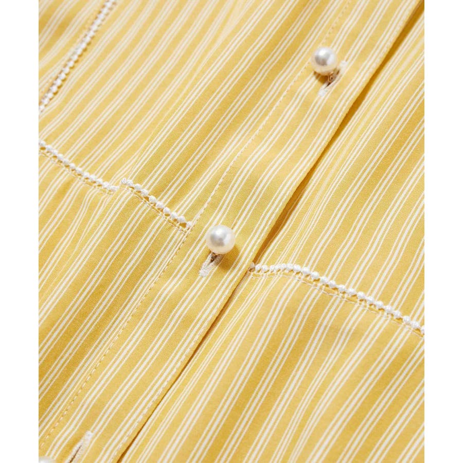 【vis-`a-vis/ビザビ】 女っぽくエッジの効いた好奇心旺盛なビザビスタイル 「Casual」「Feminine」へのこだわりのディテールと着映えするトレンド服を手軽な価格で提案 どこか必ず女性らしさを感じる魅せる今どきスタイル 【デザイン・シルエット】 切り替え部分にレースをはさみこんだ細部まで拘ったアイテムです。 釦はコロッとした大きめのパールを使用し、高見えと女性らしいディティールになっています。 裾はラウンドタイプで、インしてもアウトで着ても簡単に決まります。 フリル付きのスタンドタイプの衿なので重ね着もしやすいです。 袖はロングシーズン使いやすい上品な5分袖丈に。 同シリーズで長袖バージョン(BPH52000)もございます。 【素材】 どんなシーンでも合わせやすい細めのストライプ生地を使用しています。 シワになりにくいのも嬉しいポイント◎ ※カラーによって組成が異なります。 ネイビー・ピンク:(本体)ポリエステル 65% 綿 35%(レース部分)ポリエステル 100% ラベンダー・イエロー:(本体)ポリエステル 61% レーヨン 39%(レース部分)ポリエステル 100% 【カラー】 定番のネイビーに柔らかなカラーをプラスしたストライプ柄4色展開。 ラベンダーは完売しました。 【おすすめのスタイリング】 ボトムイン・アウトどちらでも◎ 衿だけ出したレイヤードスタイリングや前秋の羽織としてもおすすめです! ----------------------------- 裏地:なし 光沢感:なし 透け感:なし ポケット:なし 伸縮性:なし 生地の厚さ:やや薄手 ボタン:あり 季節:春~初秋 ----------------------------- 【モデル着用サイズ】 全色モデル身長:160cm、着用サイズ:F ※こちらは、WEB店舗限定の商品です。実店舗での販売はしておりません。 ※画像の商品はサンプルです。 実際の商品と仕様、加工、サイズが若干異なる場合がございます。