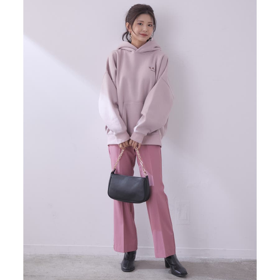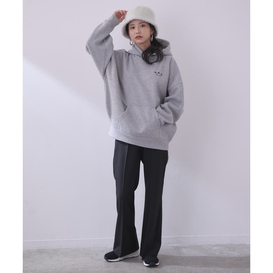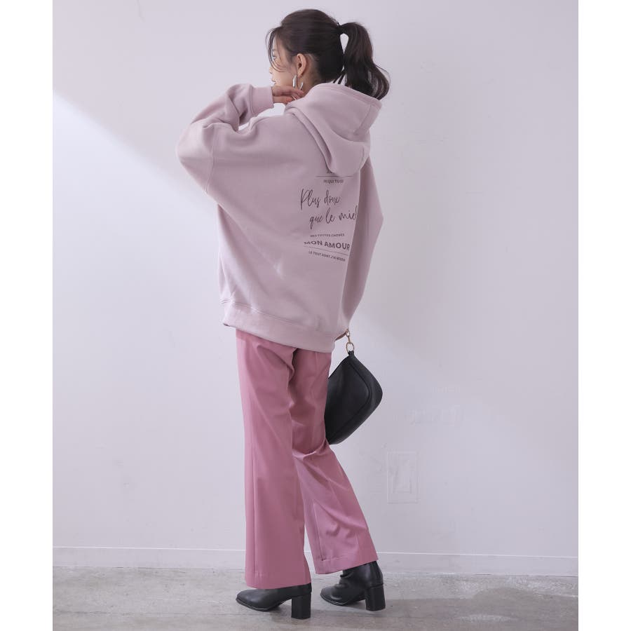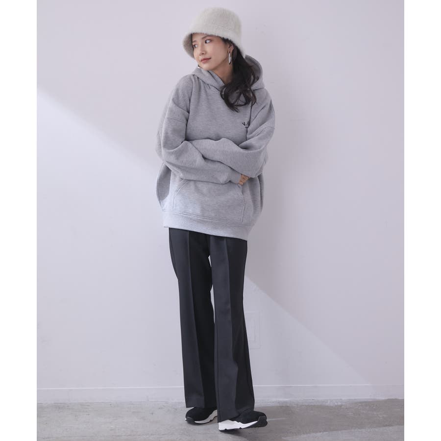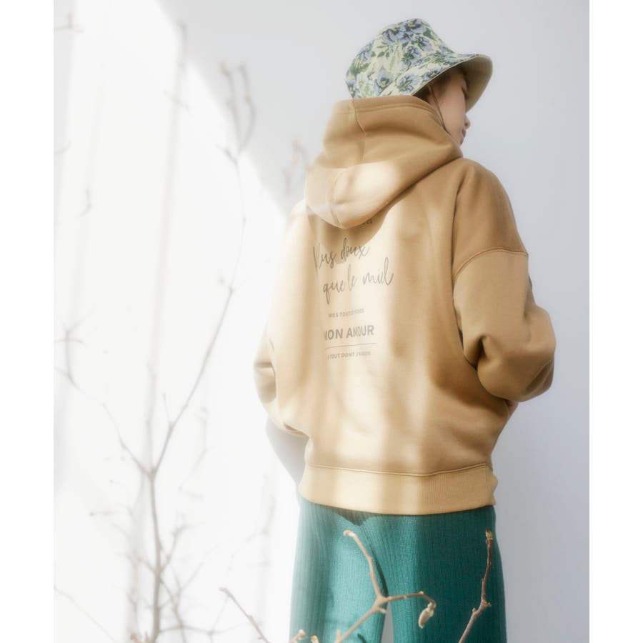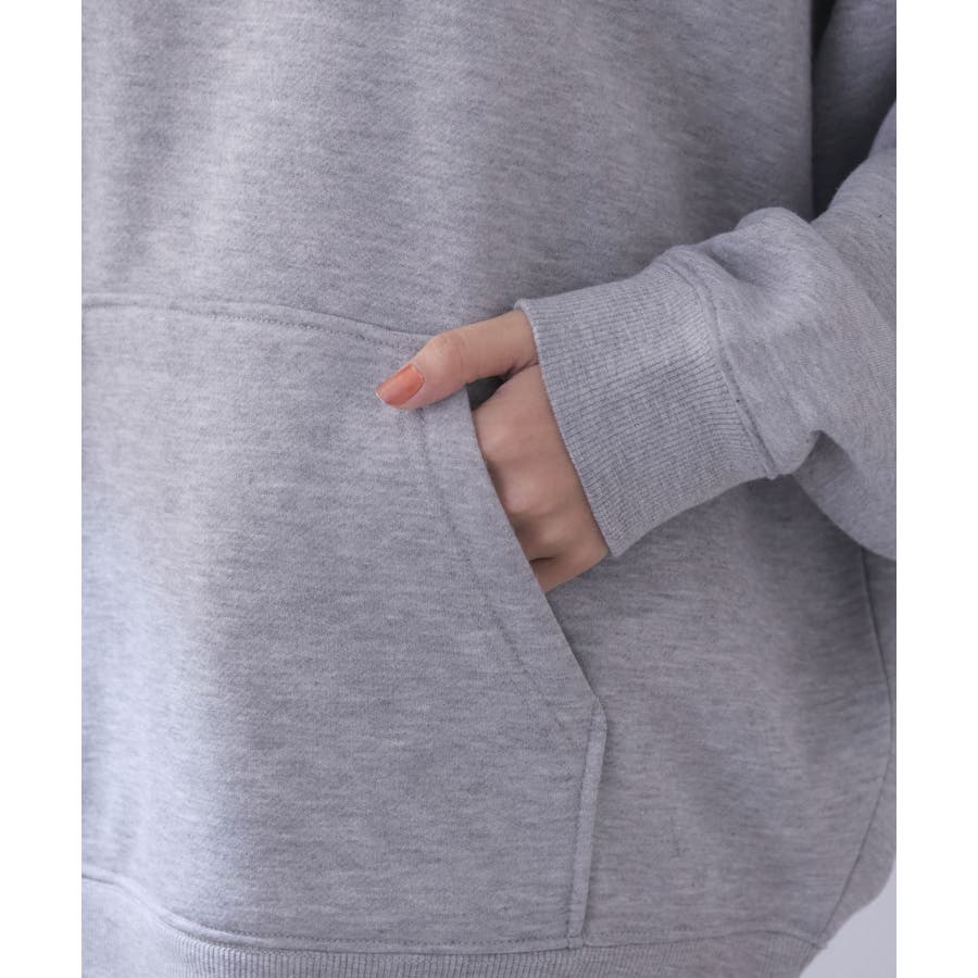 【vis-`a-vis/ビザビ】 ベーシックとトレンドをMIXしたカジュアルスタイルを提案。 デイリ―に使える・今欲しいがすぐに見つかる・その時の気分とトレンドのカジュアルファッションを手軽に楽しみたい女性に向けて。 【デザイン・シルエット】 フロント部分にもシンプルなブランドロゴ刺繍がありポイント◎ 少し厚手の素材感でフード部分も立つように作り、360度どこから見てもきれいなフォルムに仕上がりました! 前にカンガルーポケット付き。 【素材】 とても柔らかい生地感なので動きやすくモチっとした裏毛は着心地抜群。 【カラー】 ベーシックカラーに淡いピンクを加えた豊富な4色展開。 【おすすめのスタイリング】 オーバーサイズな作りの為、トレンドのフレアパンツなど、細身なパンツとも相性抜群! ニットのマーメイドスカートとあわせると女性らしい印象に。 ----------------------------- 裏地:なし 光沢感:なし 透け感:なし ポケット:あり 伸縮性:あり 生地の厚さ:やや厚手 季節:秋~初春 ----------------------------- 【モデル着用サイズ】 貴島明日香さん身長:170cm、着用サイズ:Fモデル身長:160cm、着用サイズ:F ※こちらは、WEB店舗限定の商品です。実店舗での販売はしておりません。 ※画像の商品はサンプルです。実際の商品と仕様、加工、サイズが若干異なる場合がございます。※ロケ撮影画像は、光の当たり具合で色味が異なって見える場合がございます。商品の色味は、詳細や生地アップの画像をご参照ください。