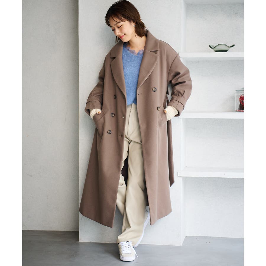 可愛くて気に入りました!さん (20代 / 女性 / 身長160~165cm )購入アイテム:カラー ブルー系(45)サイズ Fいつものトップスサイズ:Lサイズ感:ぴったり - ウールライクモッサトレンチコート