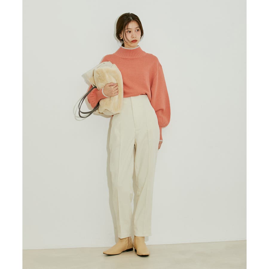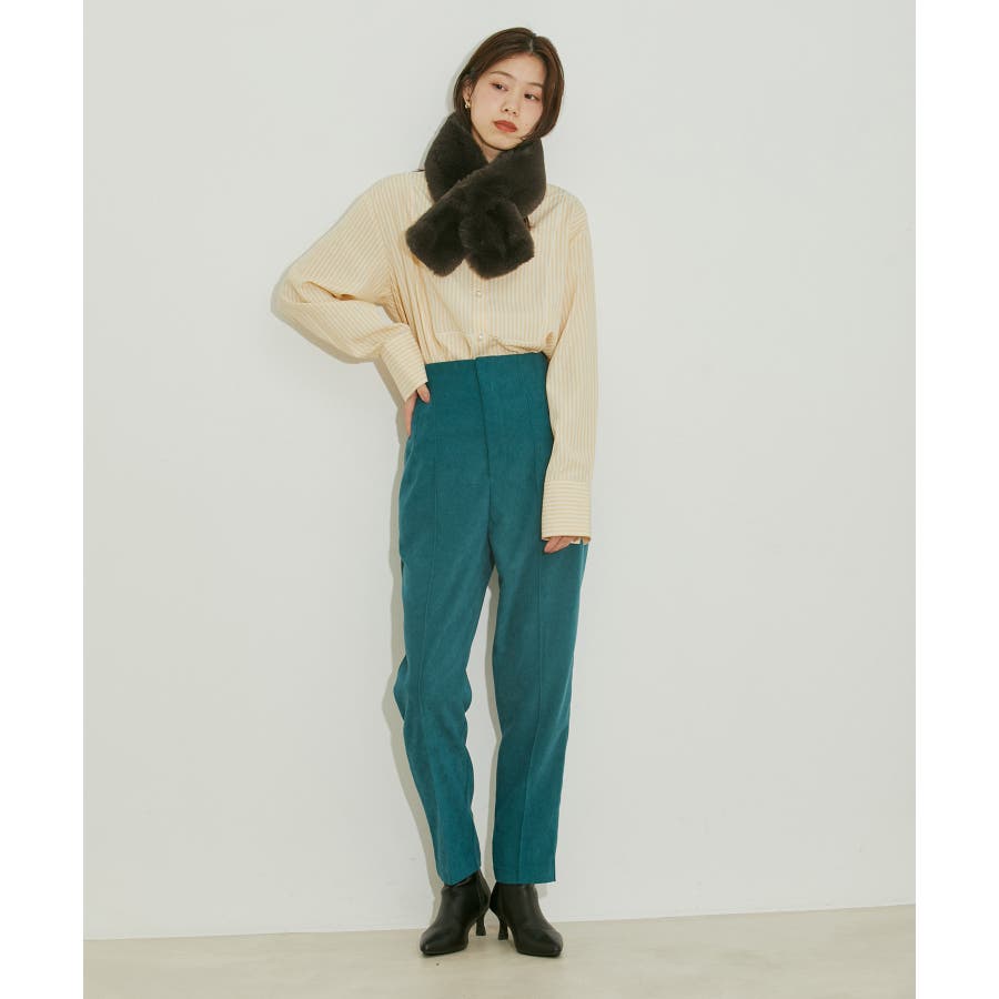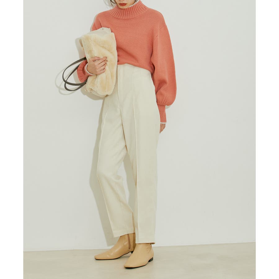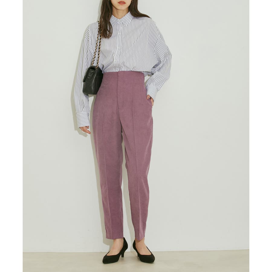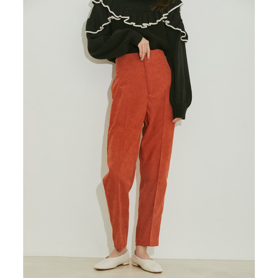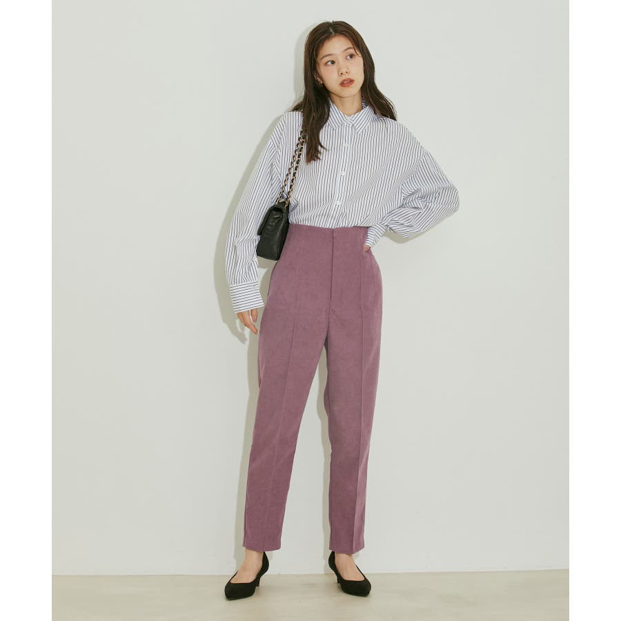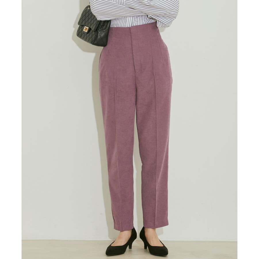 【WEB限定】ピンタックで脚長!ハイウエスト起毛カラーパンツ