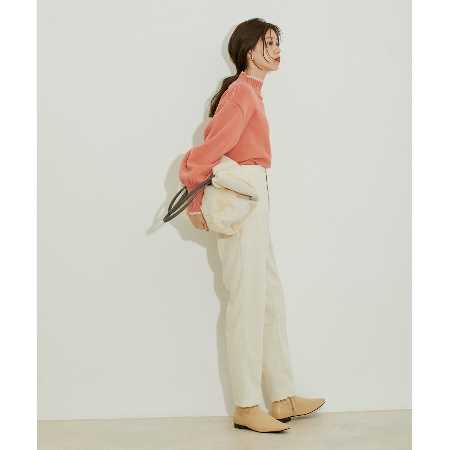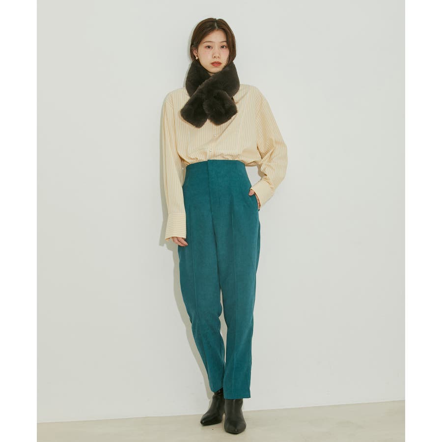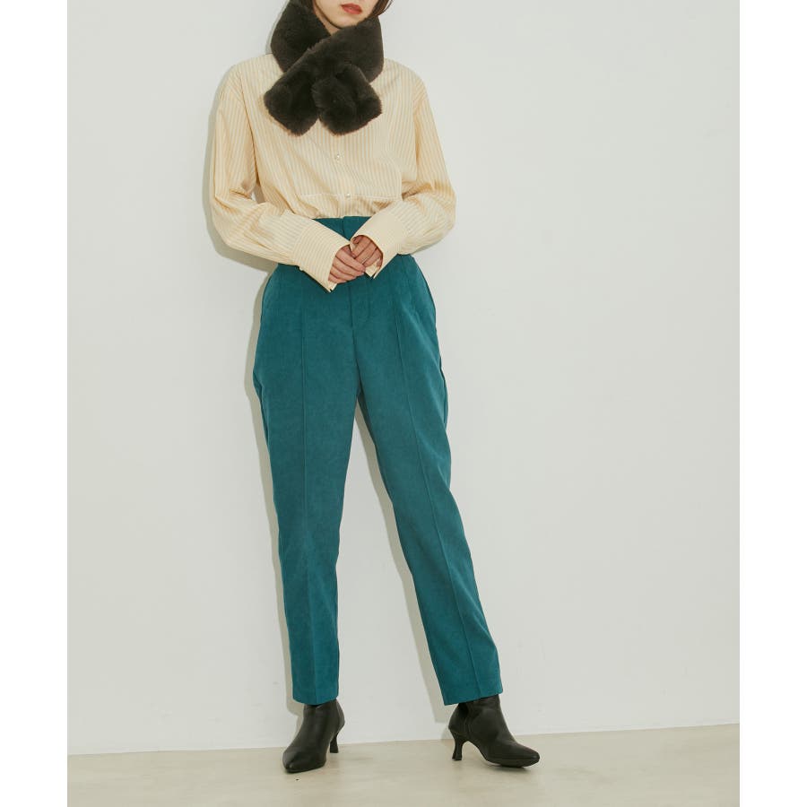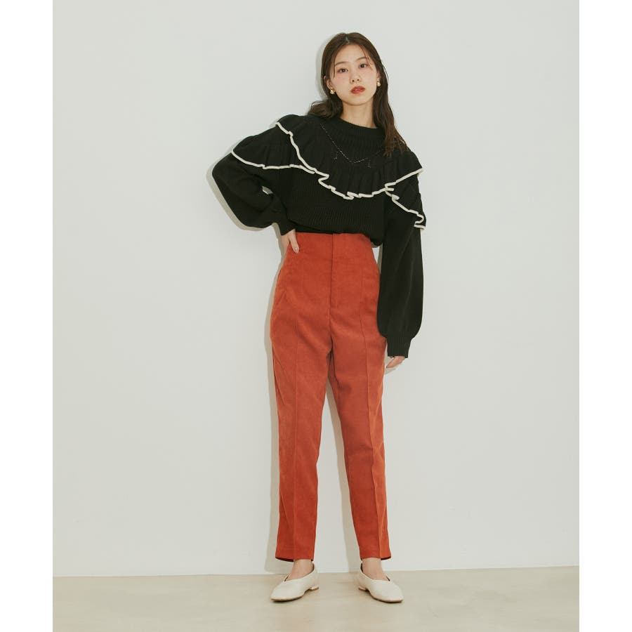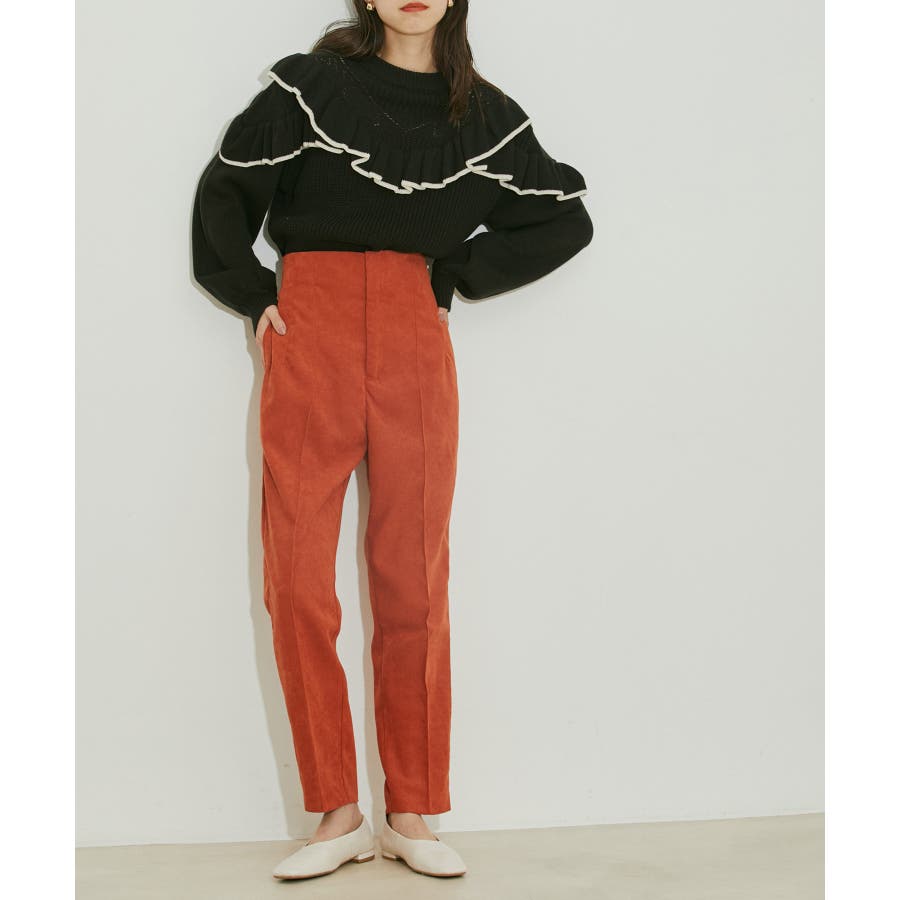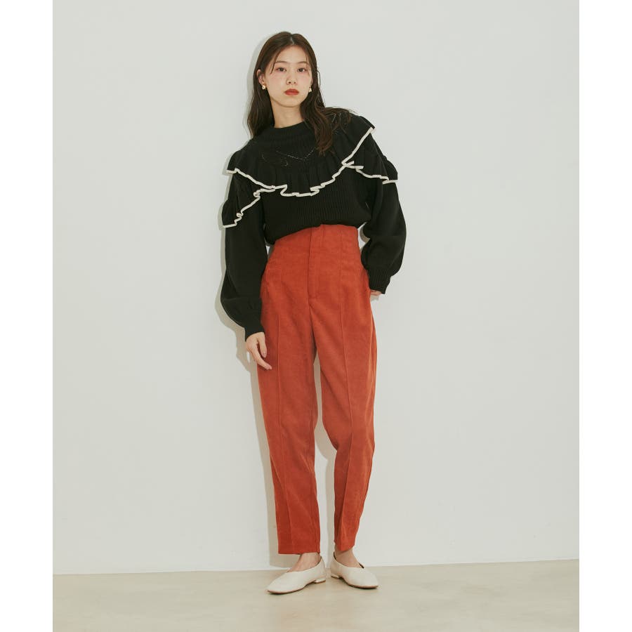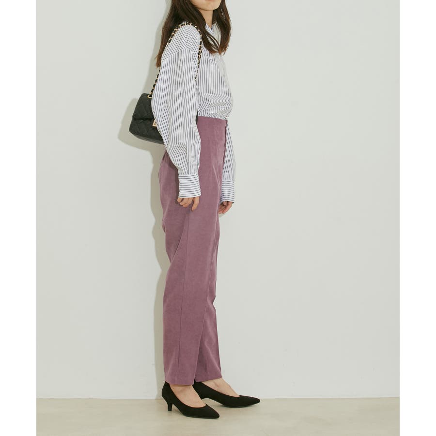 【WEB限定】ピンタックで脚長!ハイウエスト起毛カラーパンツ