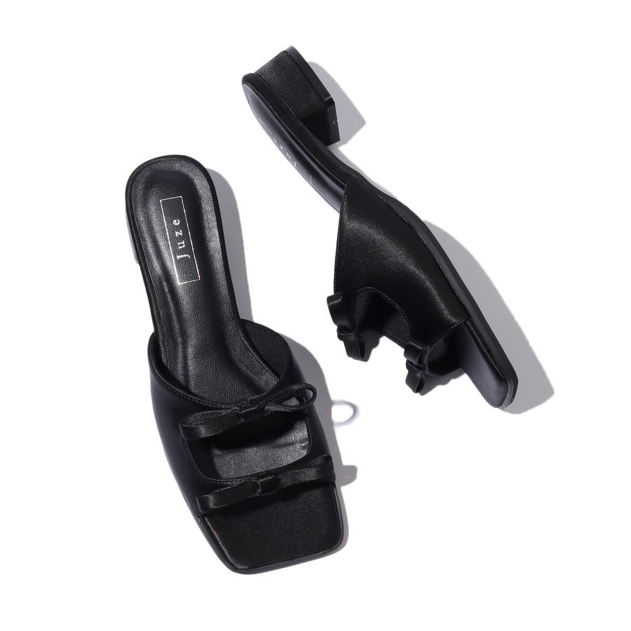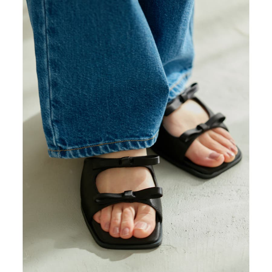 ◆2024春夏◆ 【デザイン・シルエット】 華奢なリボンを2つあしらったデザインサンダル。