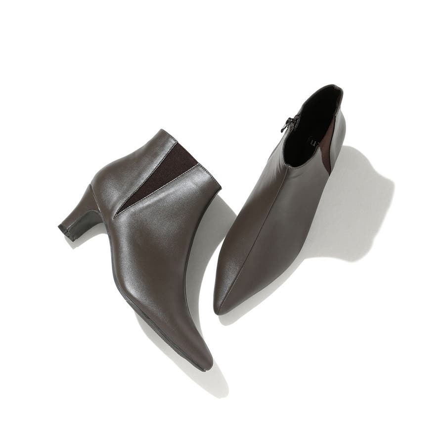 アンクル丈のショートブーツ。 上品なポインテッドトゥデザインで女性らしさをプラスし、洗練された印象に仕上げました。 程よい高さのヒールにより疲れにくく、安定した履き心地に。 ショート丈なのでパンツスタイルからロング丈のスカートまで、多様な着こなしにマッチします。