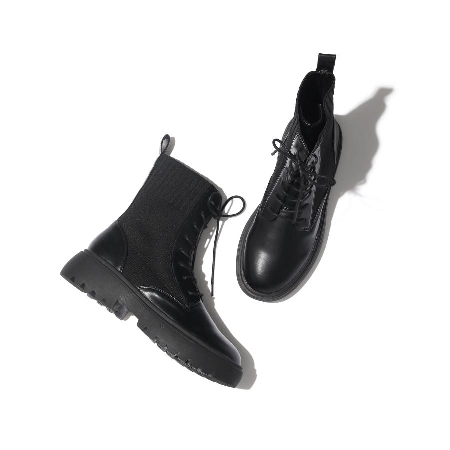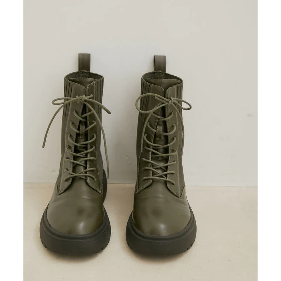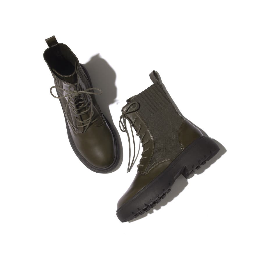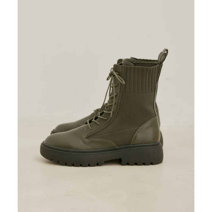 【デザイン・シルエット】 足元にボリュームを出せる厚底のレースアップブーツです。 ニットとのコンビアッパーで足当たりも良く、柔らかく、歩き易い! 華奢なレースを採用しているのでワーク感が出過ぎず女性らしさを忘れない仕上がりです。 普段のスタイリングのはずしにも、アウトドアシーンでも活躍する1足です。 【カラー】 ブラック・カーキの2色展開。 ※画像の商品はサンプルです。 実際の商品と仕様、加工、サイズが若干異なる場合がございます。 ※重量はサンプルLサイズ・両足の測量になります。サイズによって多少異なる場合があります。