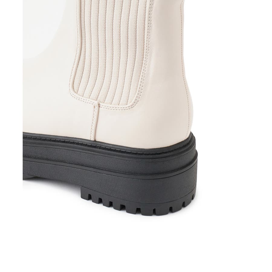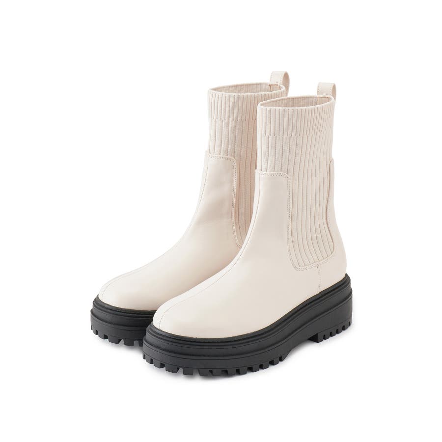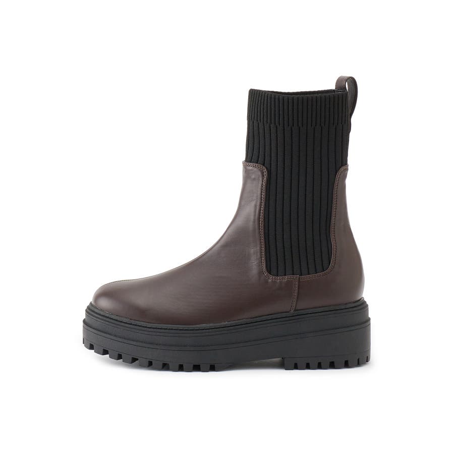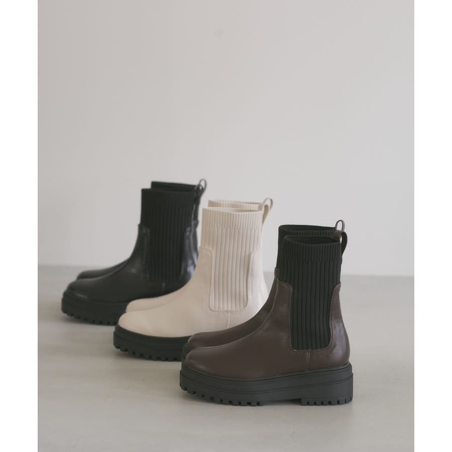 ◆2024-25 秋冬◆ 【デザイン・シルエット】 ニット切り替えなので着用時の柔らかい足あたりが嬉しいポイントです。 ファスナーが無い分、指にかかりやすいような長さのデザインループを付けることで着脱しやすくしております。 足のフィット感を感じていただけるクッションと足入れ感もポイント。 ボリュームソールのストンとした重さと、スッキリとしたシルエットをキープすることでメリハリのあるスッキリとした足元が叶います。 【カラー】 ベーシックなブラック、色味でも脚長効果を狙えるオフ、足元から秋冬気分を取り入れられるブラウンの3色展開。 【スタイリング】 ボリュームソールと脚に沿う設計のニットで脚長効果も期待でき、ミニ丈のボトムとのバランスも取りやすいです。 ワイド・ルーズパンツとの合わせもぴったりです。 ※一部の箱に配送の際についてしまった、キズ、へこみなどがある場合がございますが、商品に問題はございません。 ※画像の商品はサンプルです。 実際の商品と仕様、加工、サイズが若干異なる場合がございます。 ※重量はサンプルLサイズ・両足の測量になります。サイズによって多少異なる場合があります。