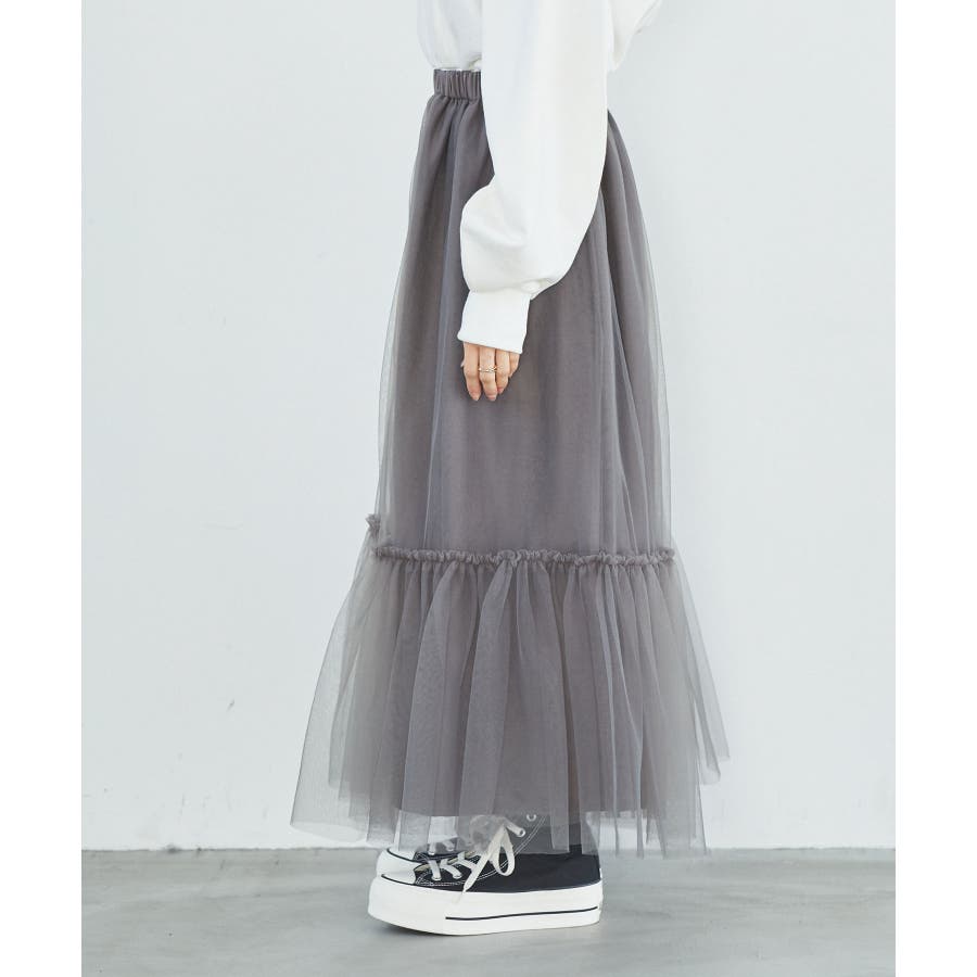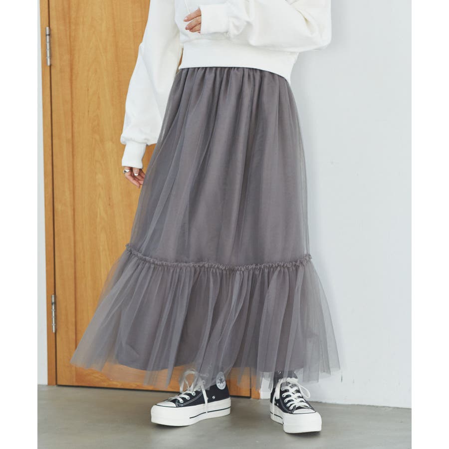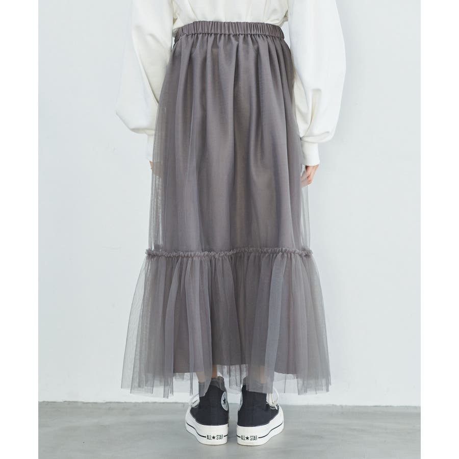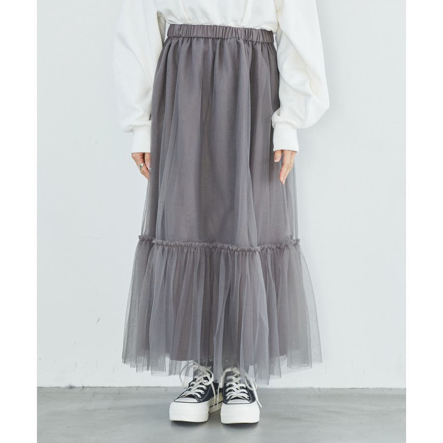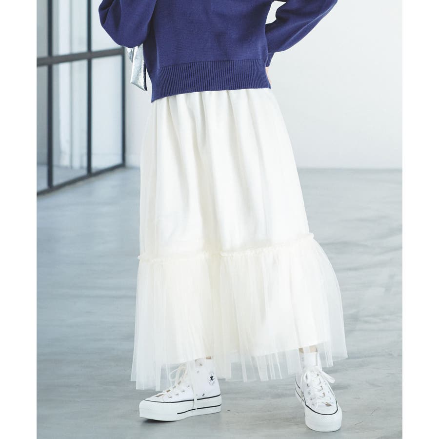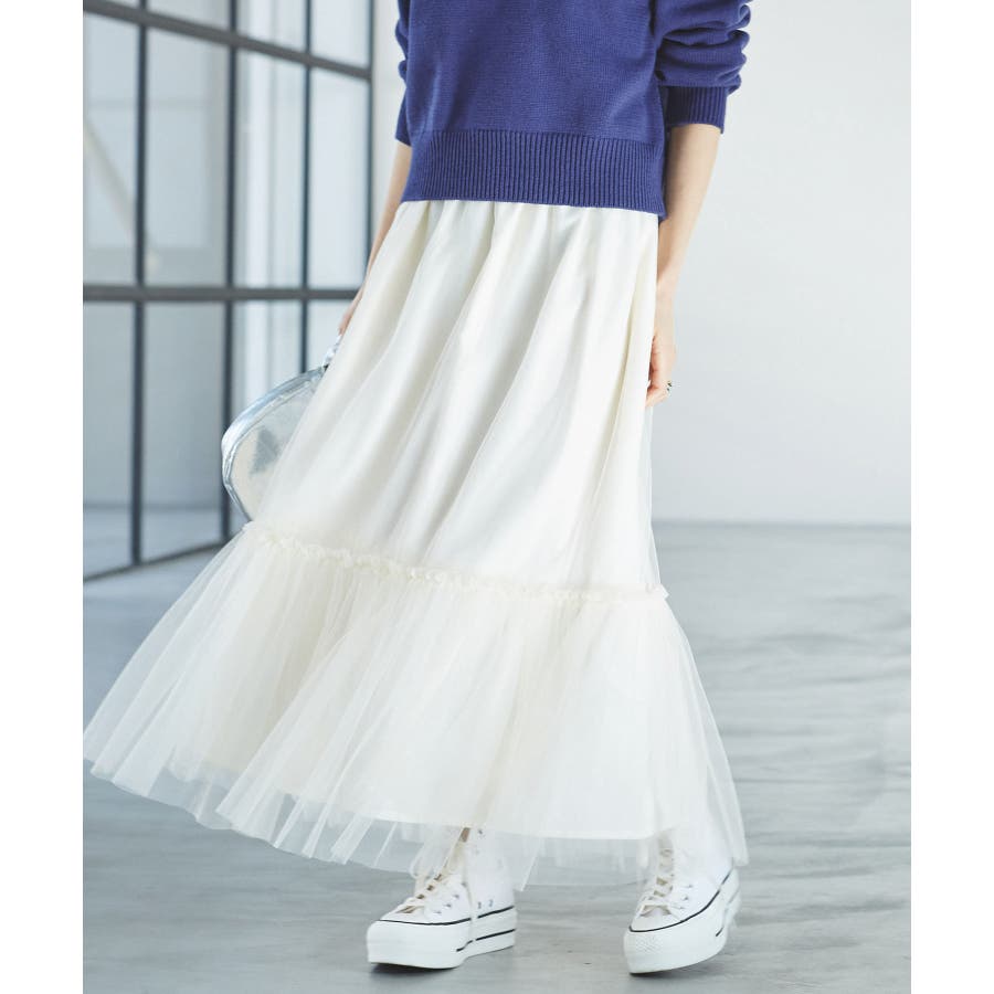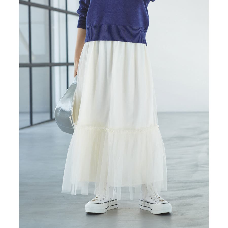 【デザイン・シルエット】 ふわっとチュールが春夏らしいスカートです。