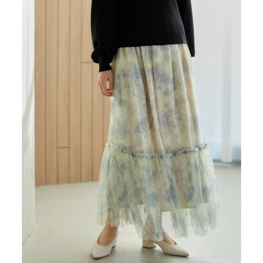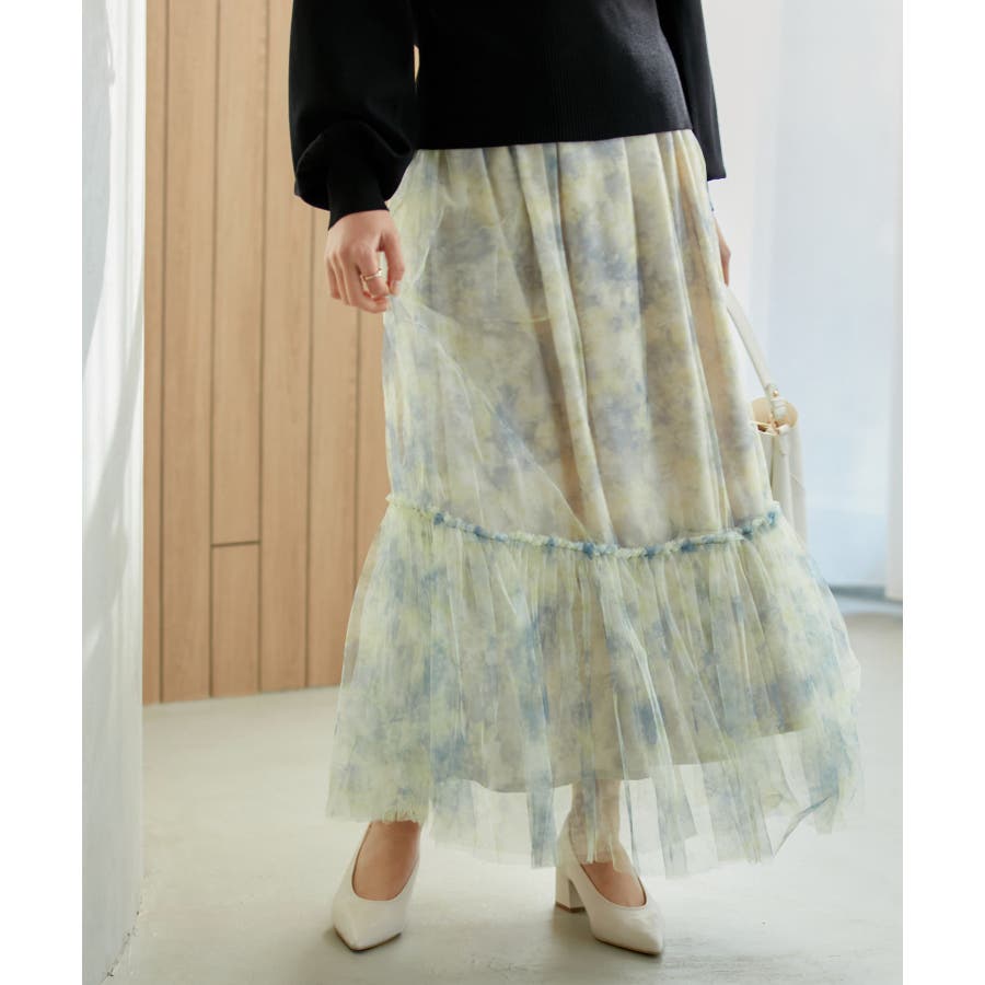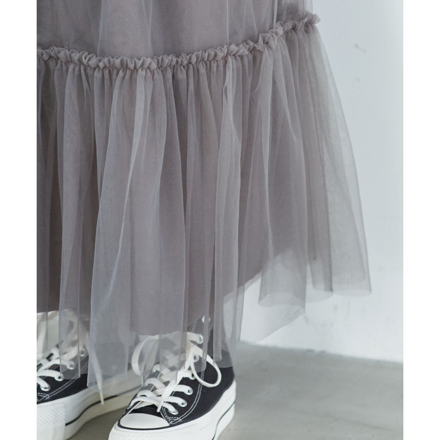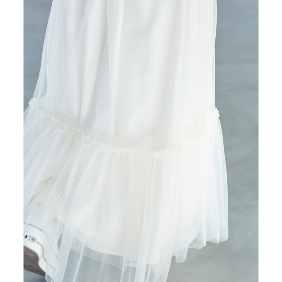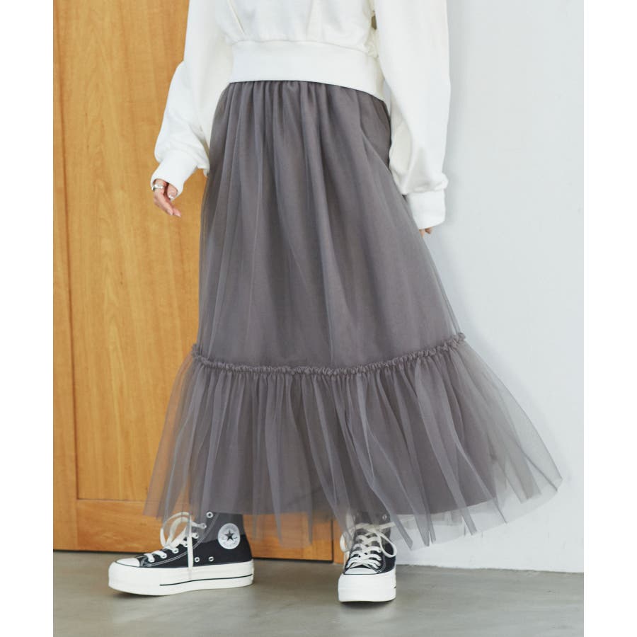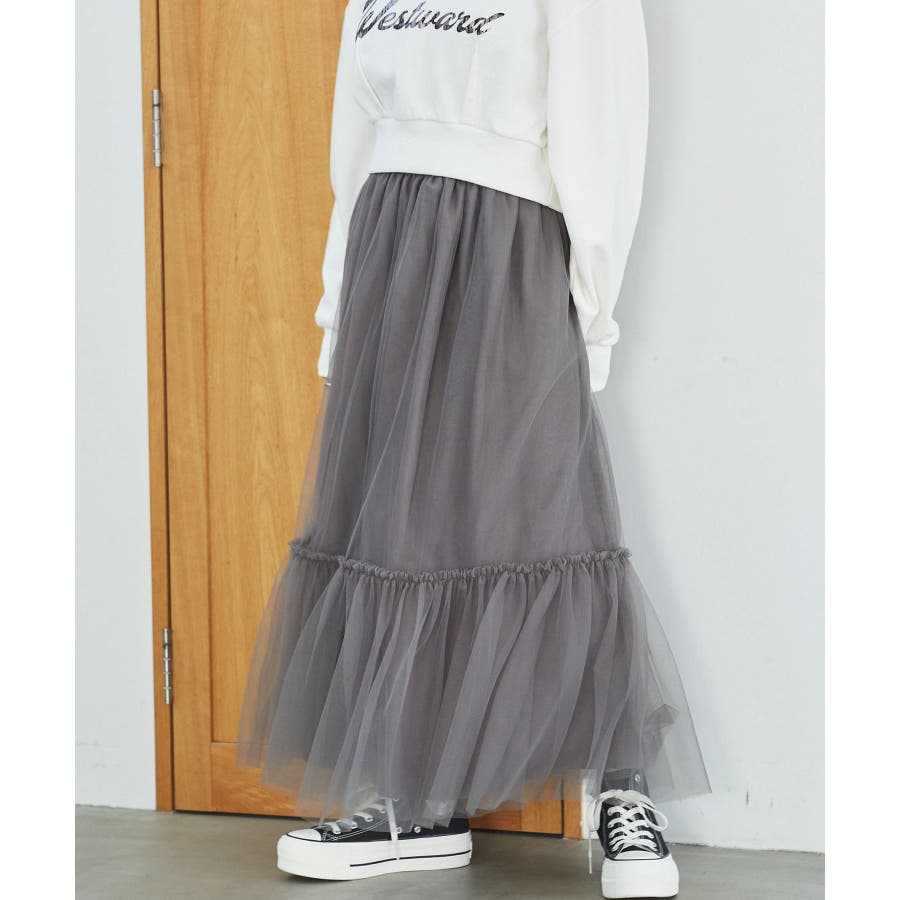 【デザイン・シルエット】 ふわっとチュールが春夏らしいスカートです。