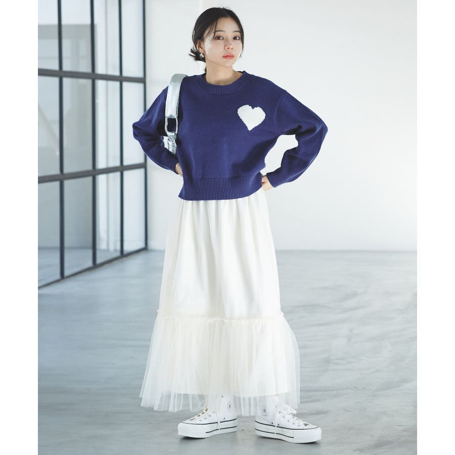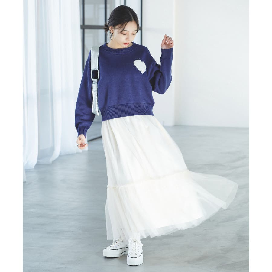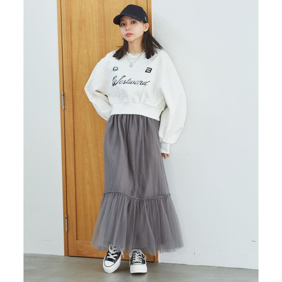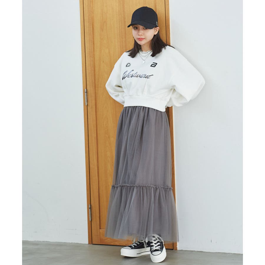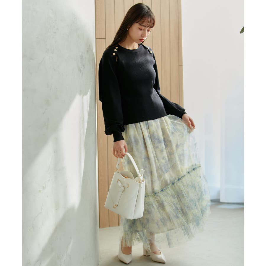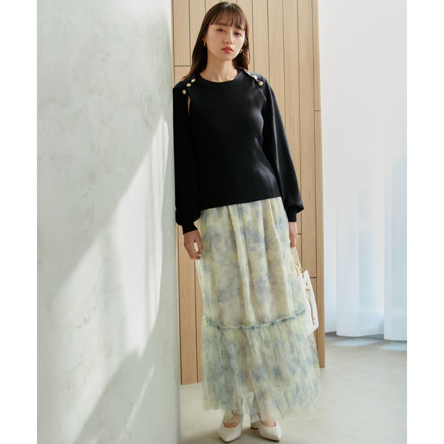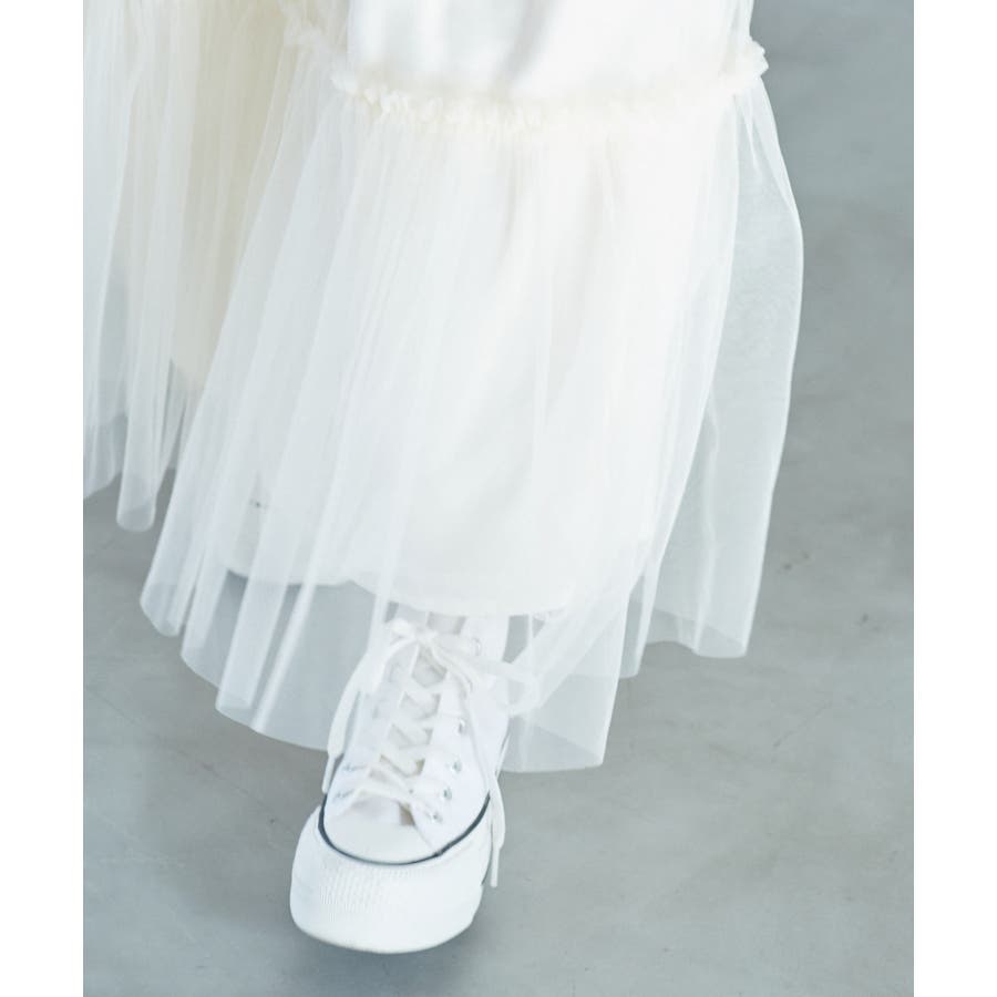 【デザイン・シルエット】 ふわっとチュールが春夏らしいスカートです。