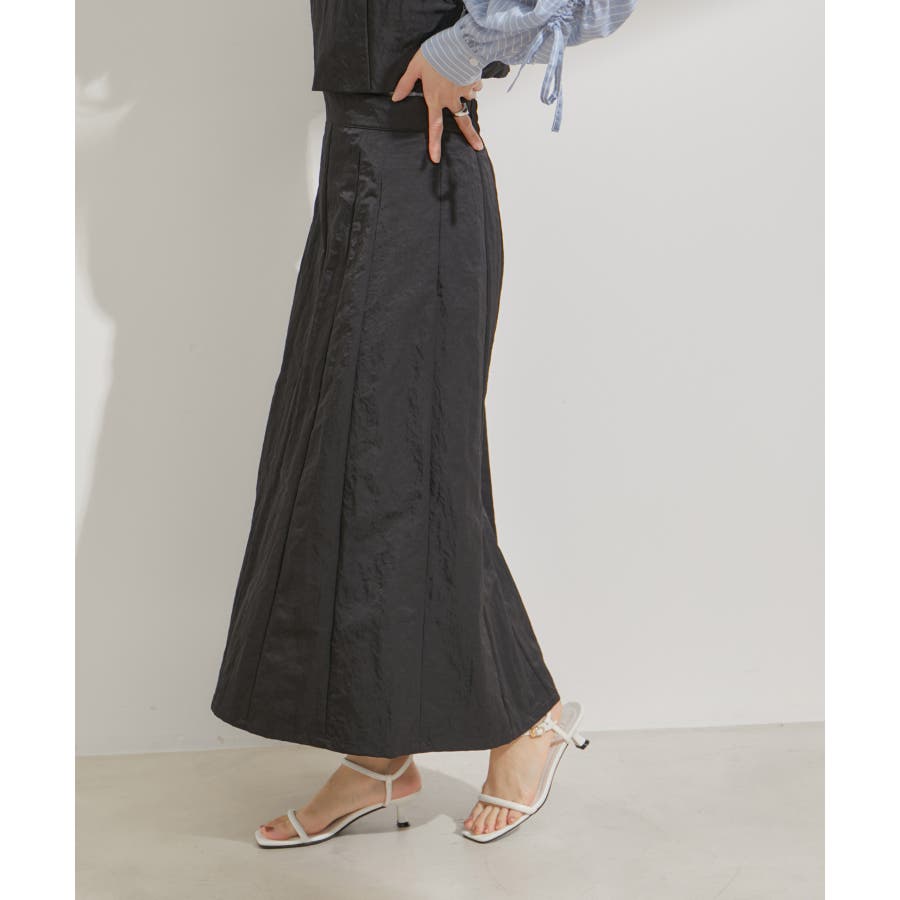 【セットアップ対応】ナイロンワッシャーAラインスカート【洗える】
