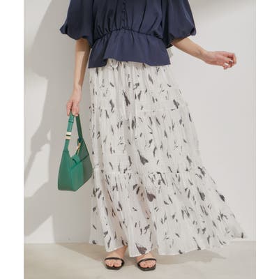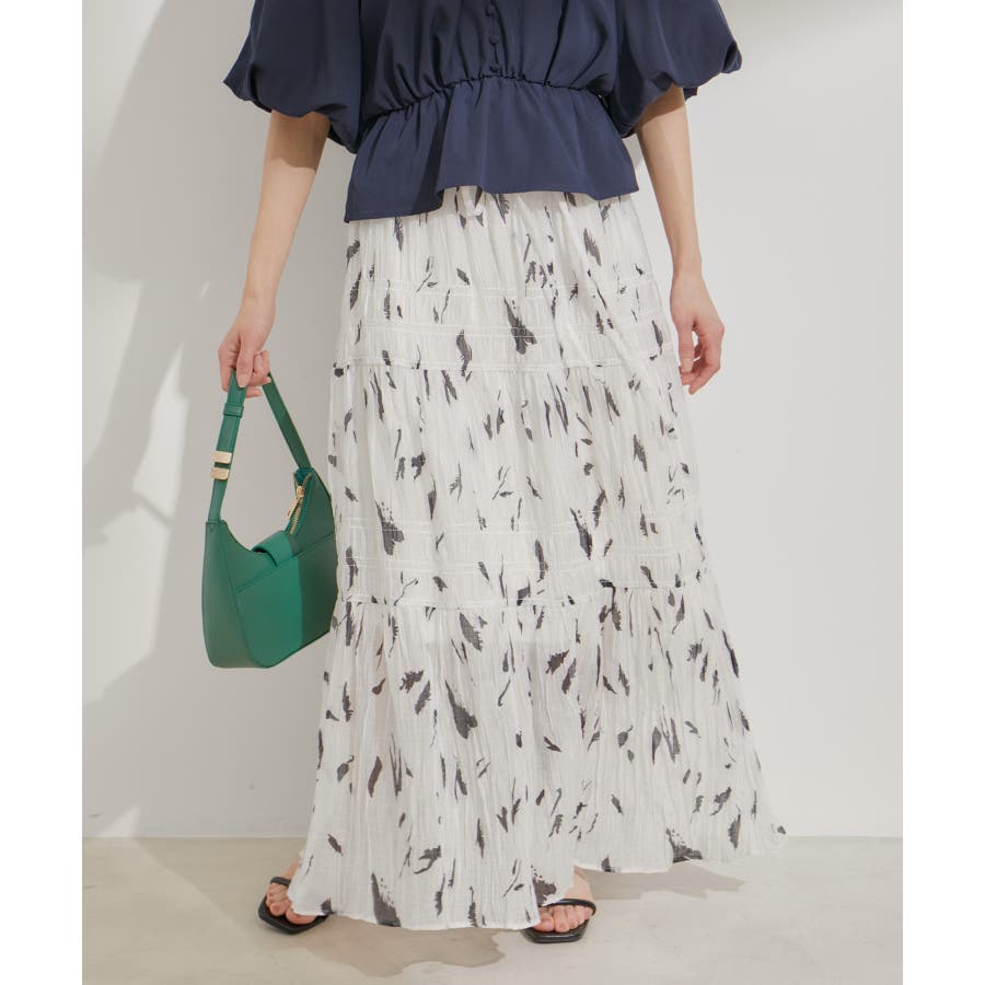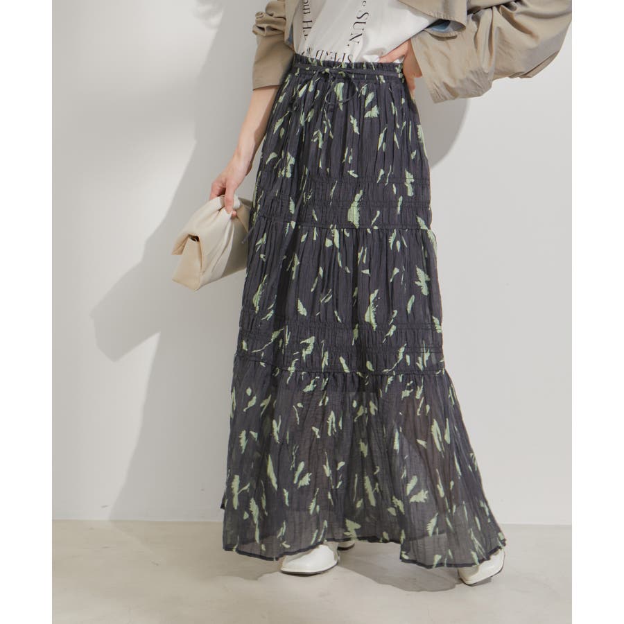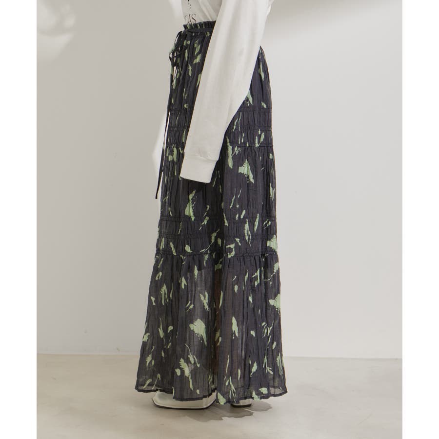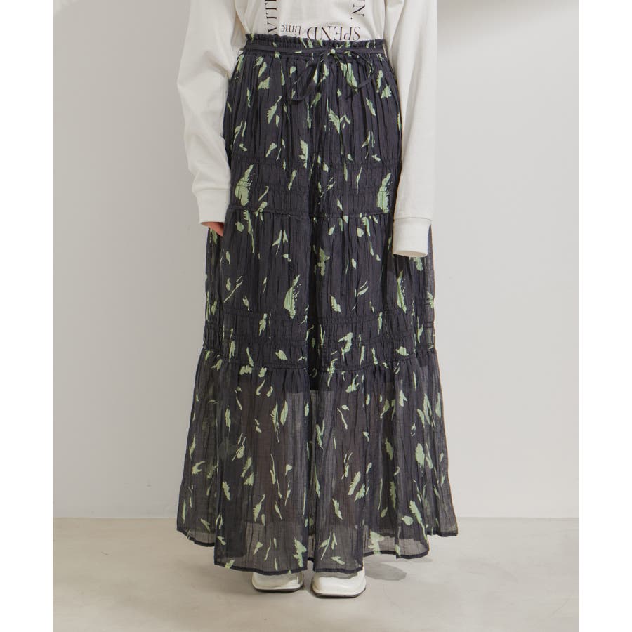 柄&無地アソートシャーリングティアードスカート