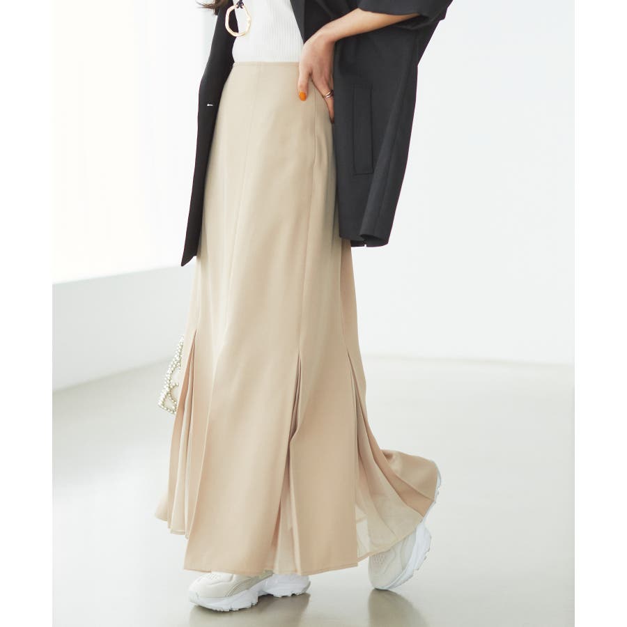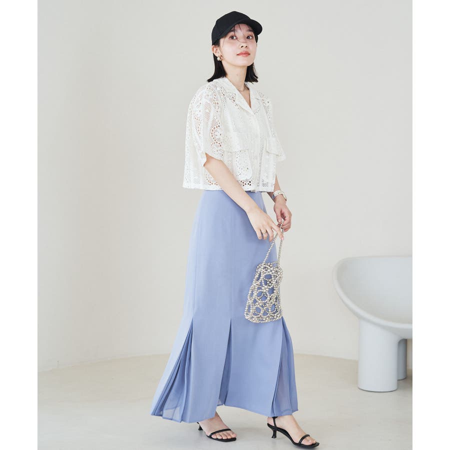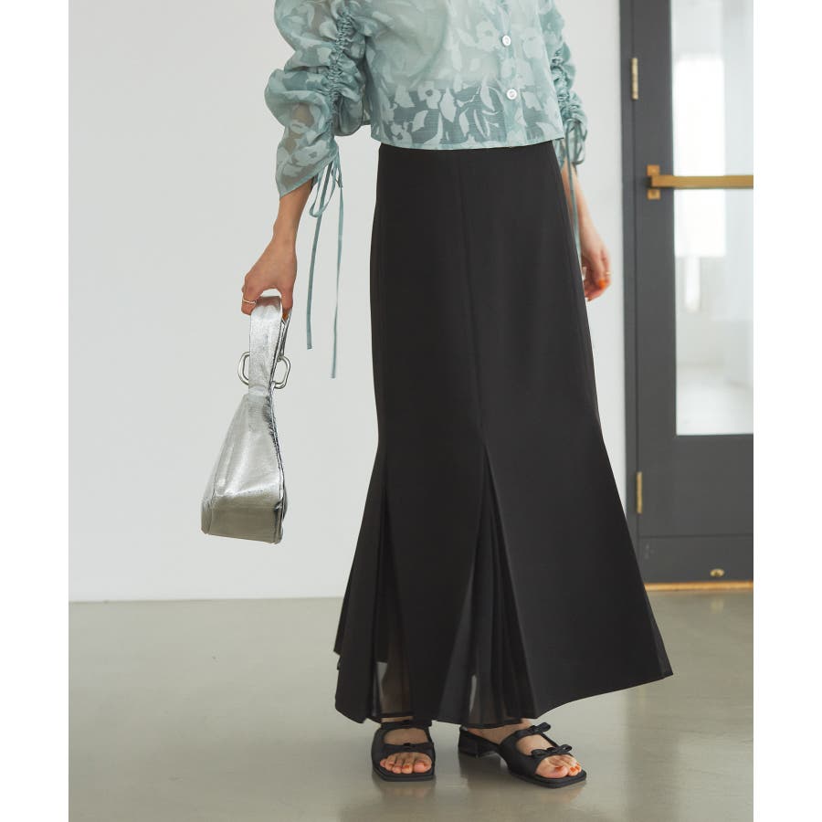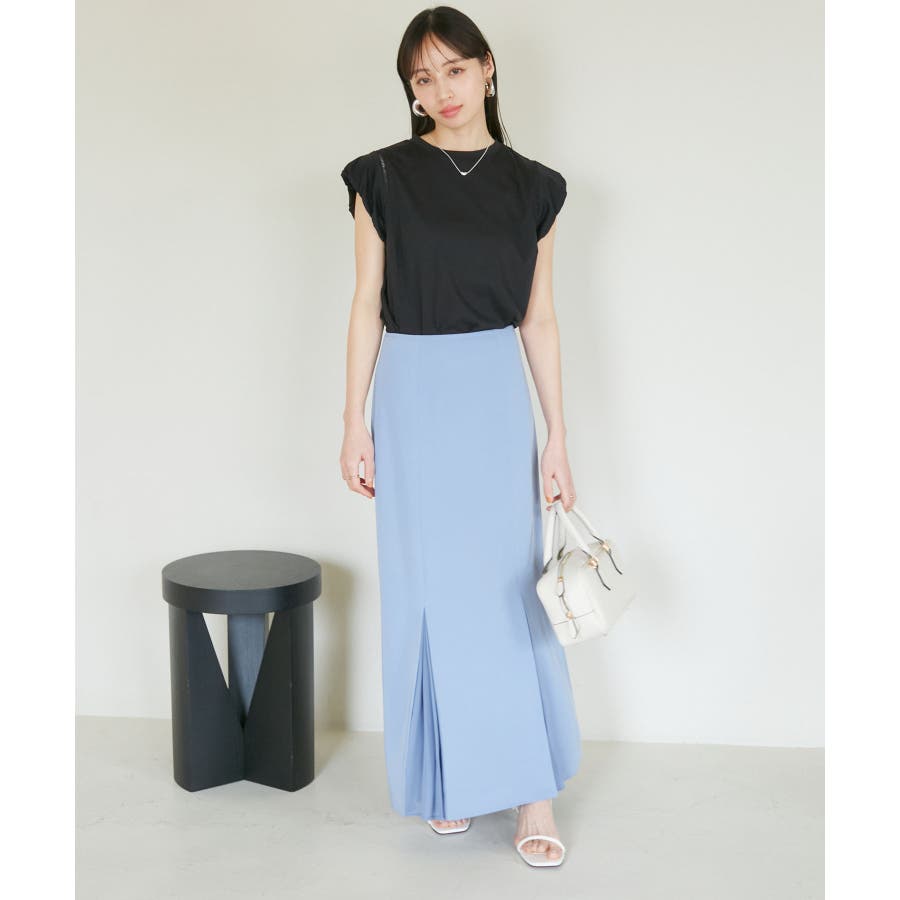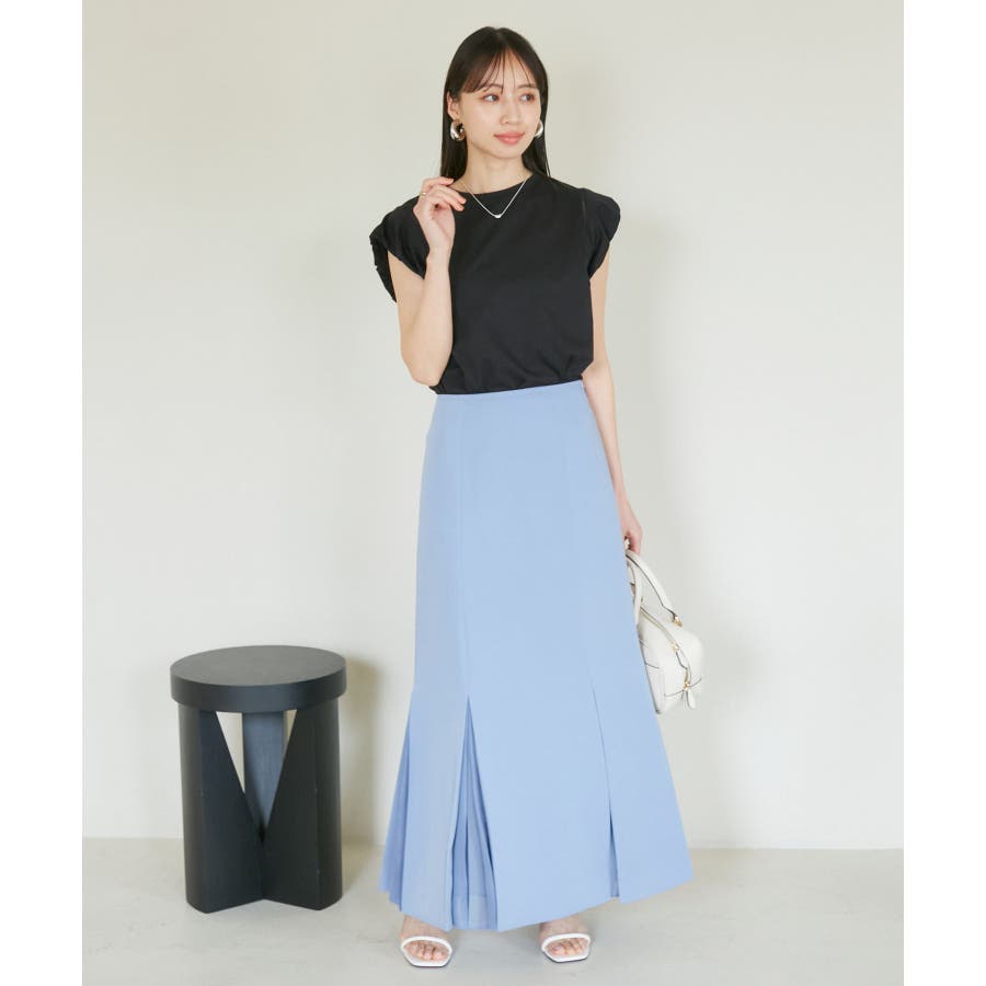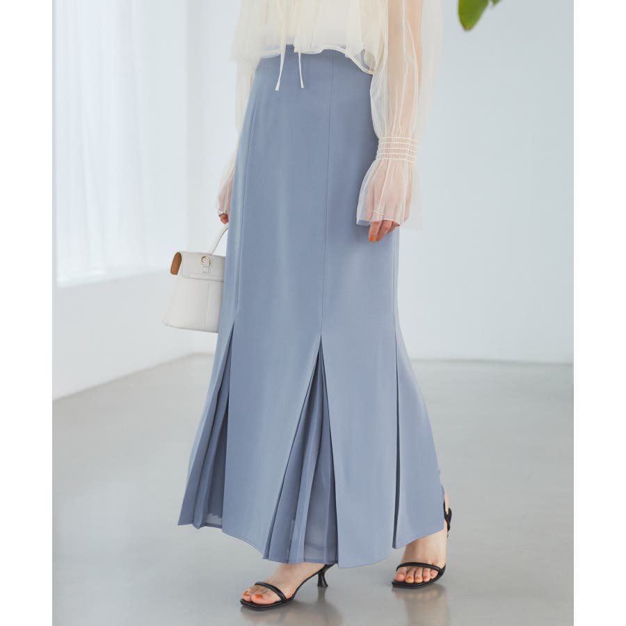 【ブルー(44)】プリーツ切替マーメイドスカート