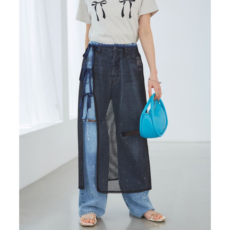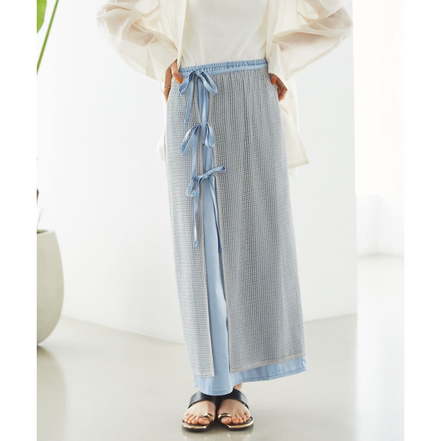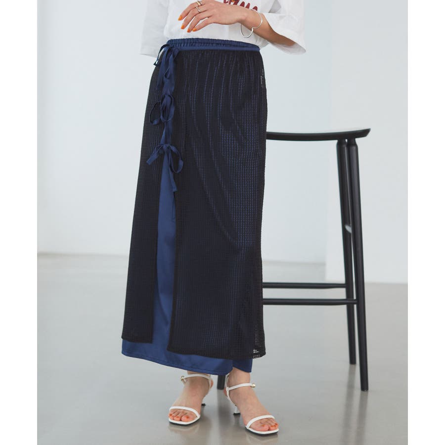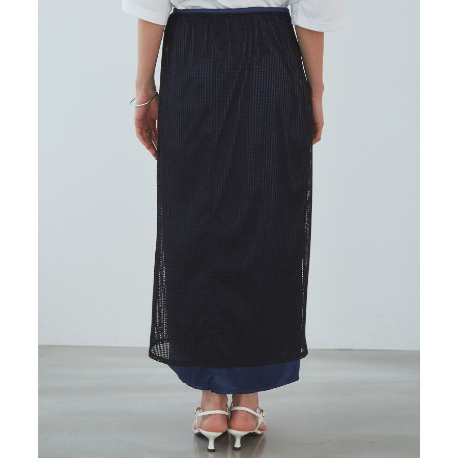 レイヤードラメメッシュIラインスカート