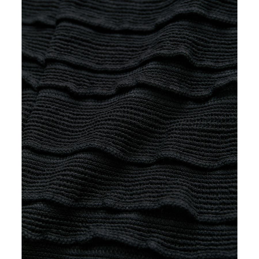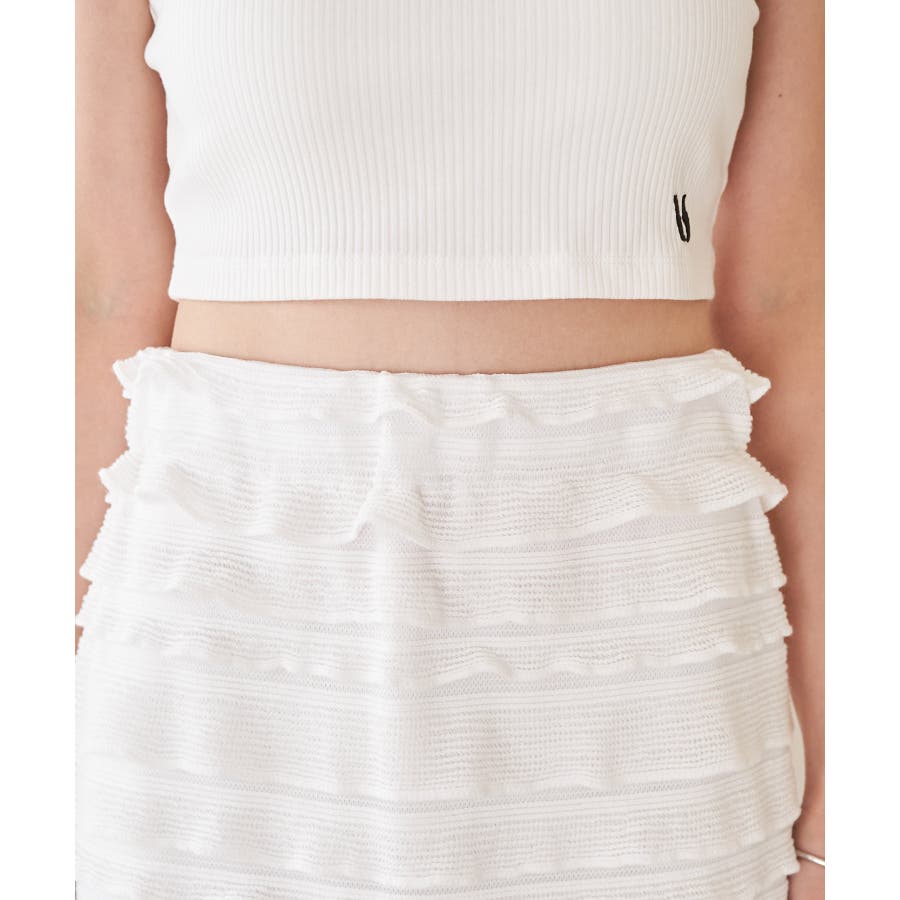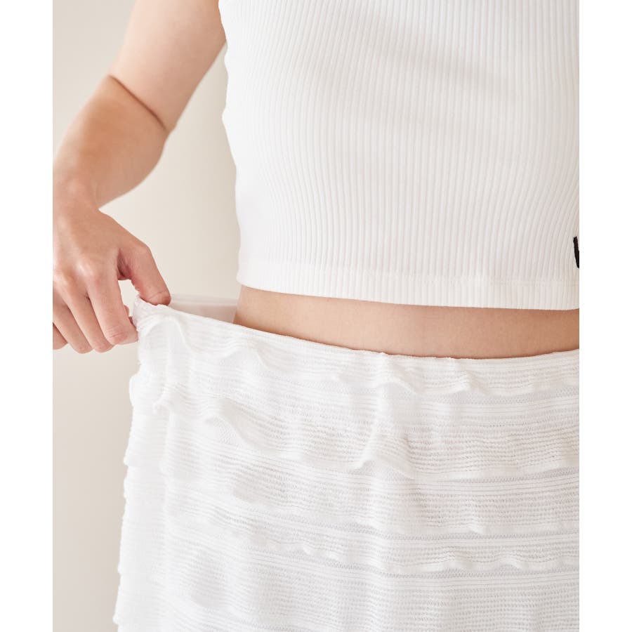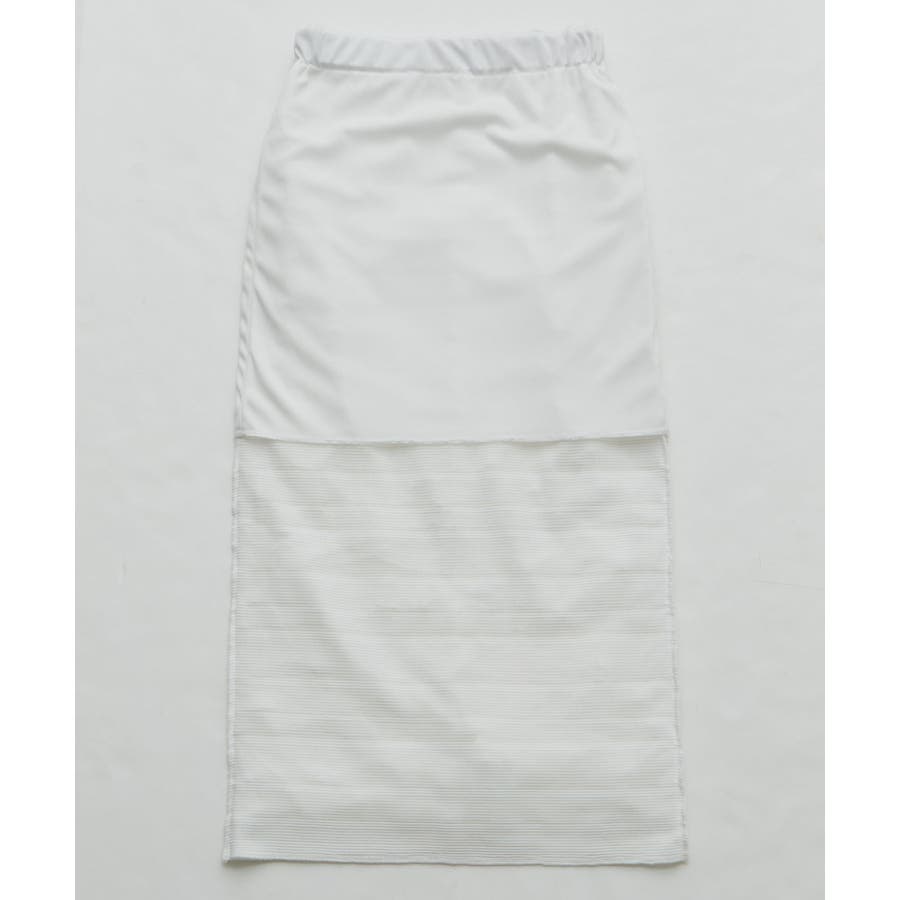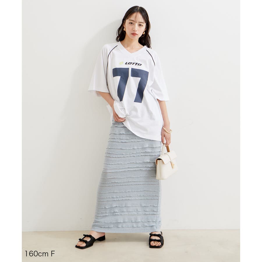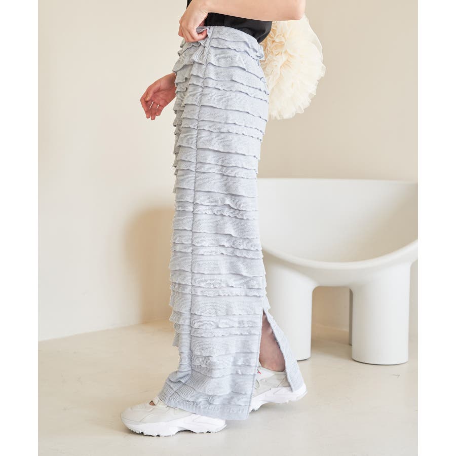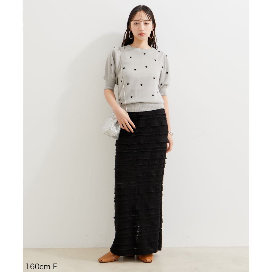 ◆2024春夏◆ 【デザイン・シルエット】 カット素材のフリルディテールIラインスカート。 高身長・低身長の方どちらが着ても同じ丈感、サイズ感に見えるようにシルエットに拘ったスカート。