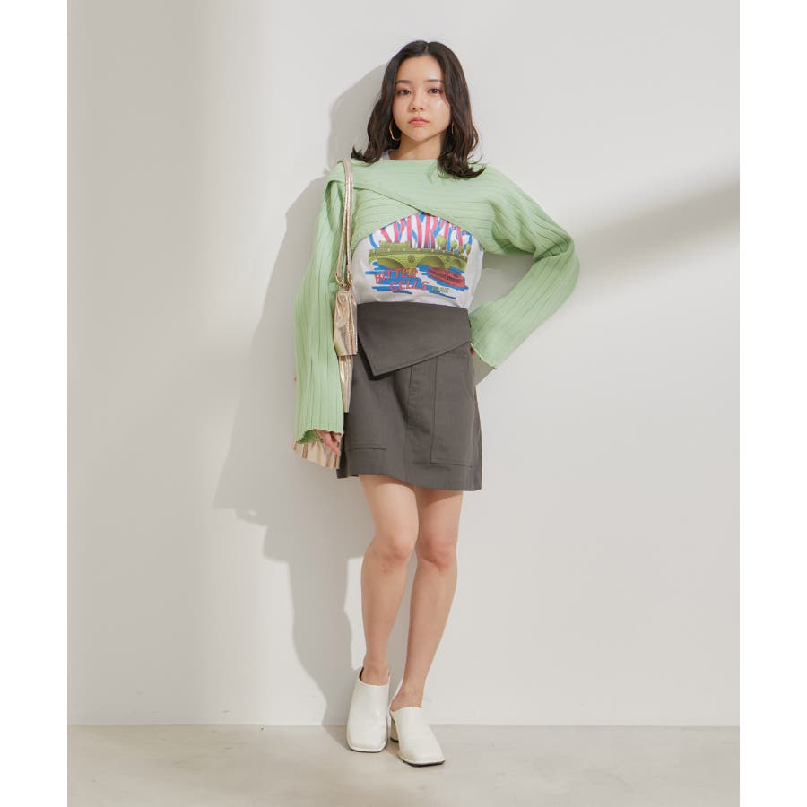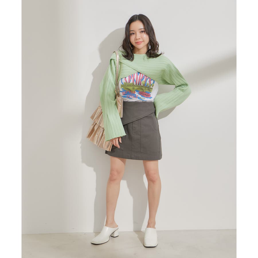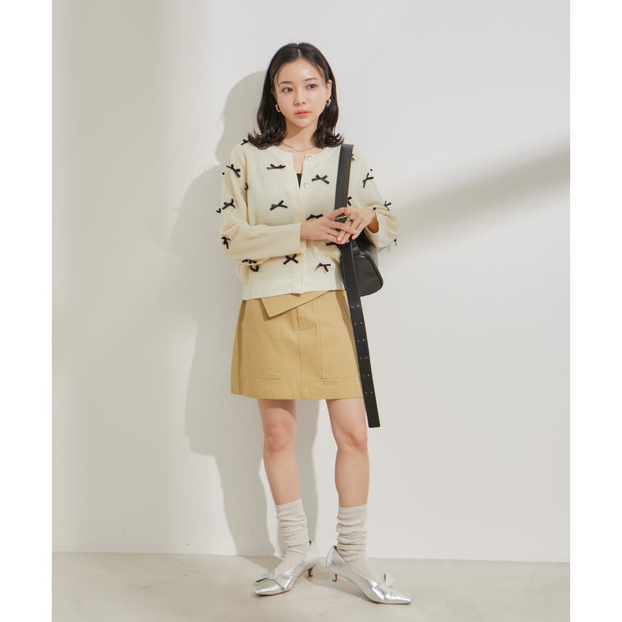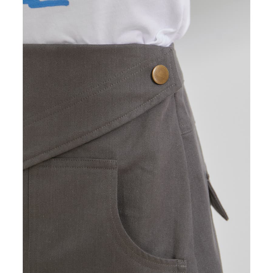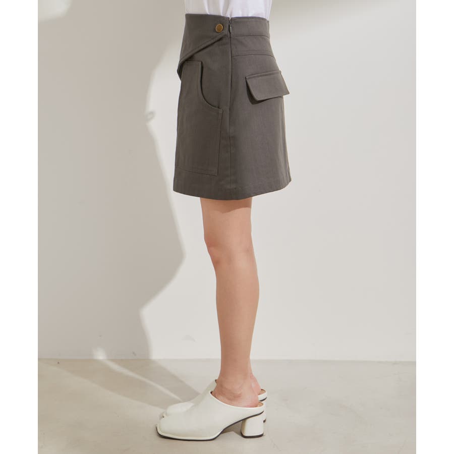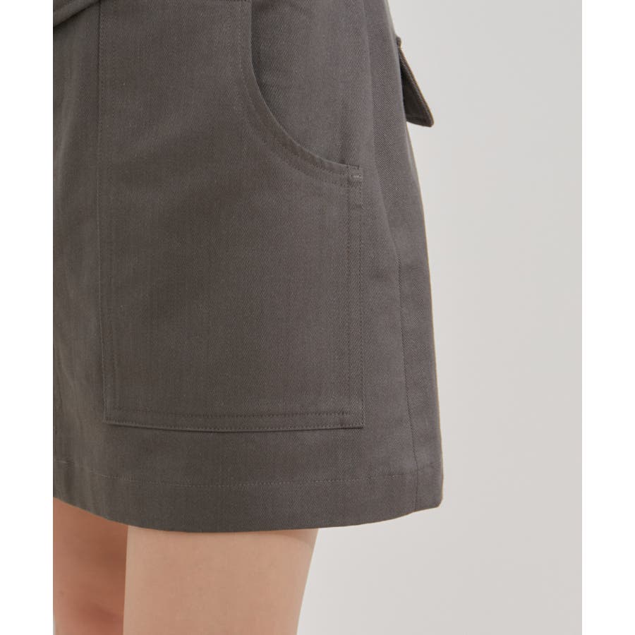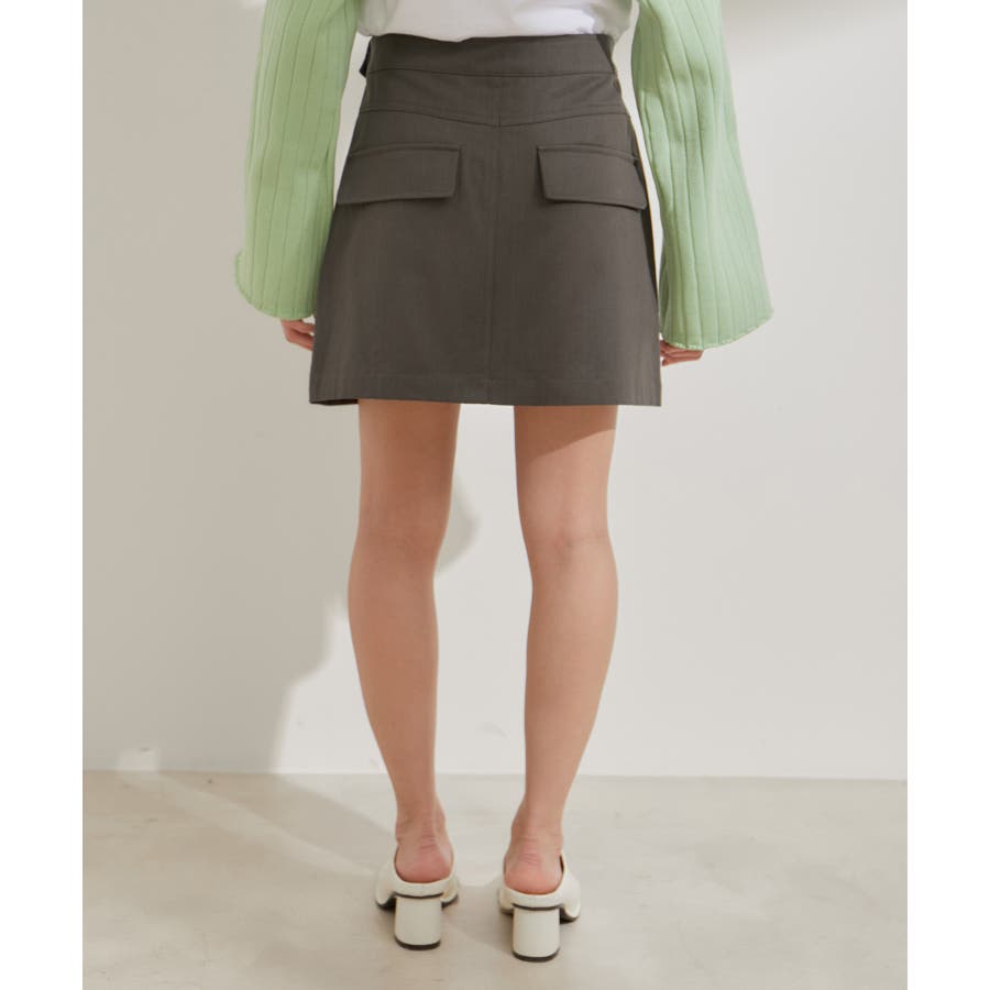 ◆2024春夏◆ 【デザイン・シルエット】 トレンドのミニボトムスは、可愛くなりすぎないように素材とデザインにエッジを効かせました。 トップスをインしても決まるフラップ部分がポイントです。