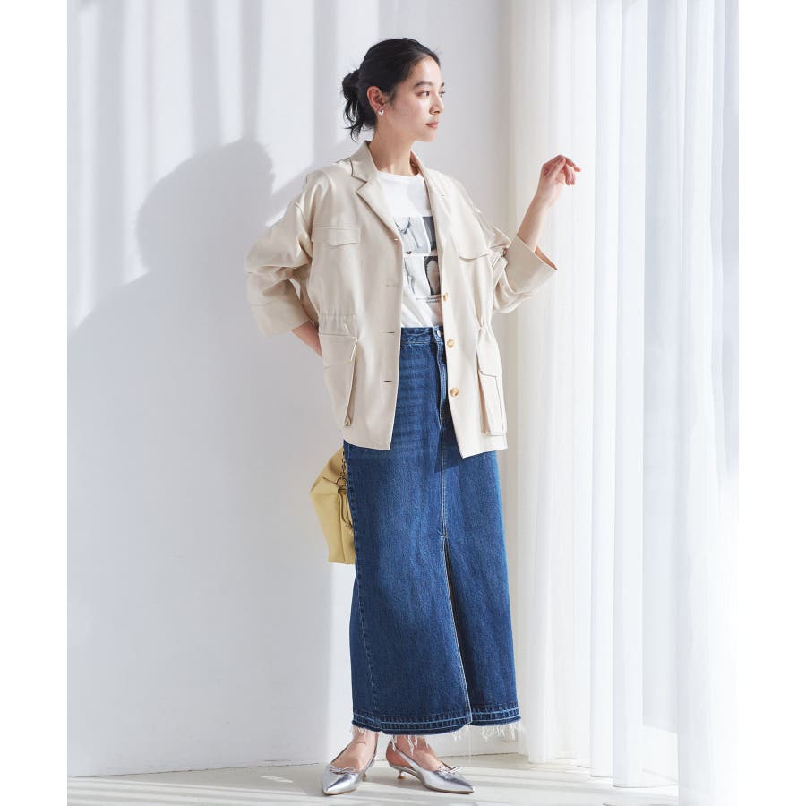 女性らしい春ニットやブラウスと合わせてカジュアルダウンしてスタイリングして頂くのがおすすめです。