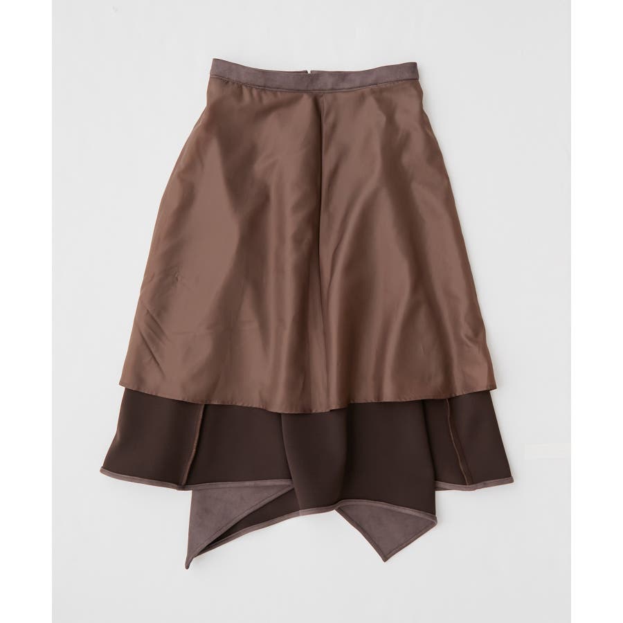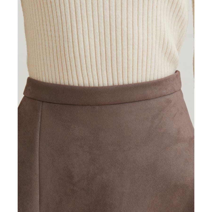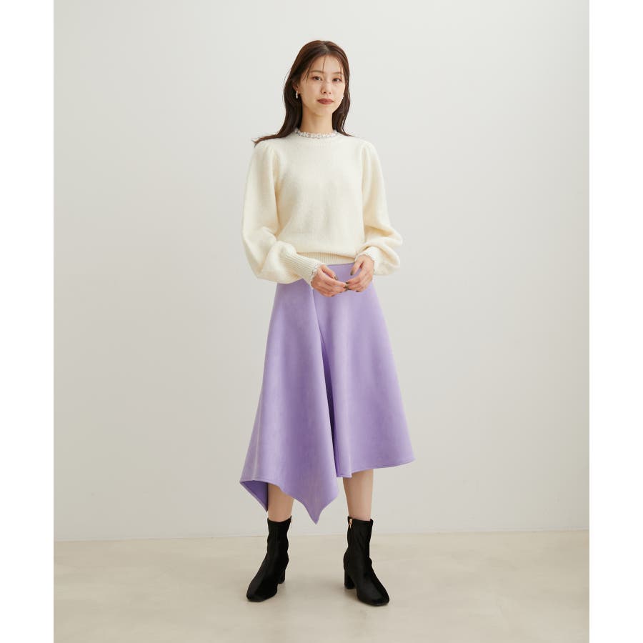 【デザイン・シルエット】 アシンメトリーのフレアーがスタイリングに程よいスパイスをプラスします。 膝下の少し短い丈感が新鮮。 上品さと遊びを兼ね備えたアイテムで、様々なシーンで活躍します。 スポンディッシュな生地感が立体的なフォルムを表現しつつ、ストレッチ性も有るので着心地も快適です。 【素材】 スポンディッシュなフェイクスエード生地。 リサイクルポリエステル50%使用しています。 【カラー】 キナリ・ブラウン・パープルの3色展開。 【おすすめのスタイリング】 シアートップスやボリュームスリーブブラウスとの合わせがおすすめ! 足元はヒールブーツでレディに仕上げるのが◎です。 ----------------------------- 裏地:あり 光沢感:なし 透け感:なし 伸縮性:あり ウエスト:ゴムなし ポケット:なし ボタン:なし 生地の厚さ:普通 その他仕様:脇ファスナーあり 季節:秋~春 ----------------------------- 【モデル着用サイズ】 全色モデル身長:166cm、着用サイズ:M ※画像の商品はサンプルです。 実際の商品と仕様、加工、サイズが若干異なる場合がございます。 ※重さはサンプルMサイズの測量になります。サイズによって多少異なる場合があります。