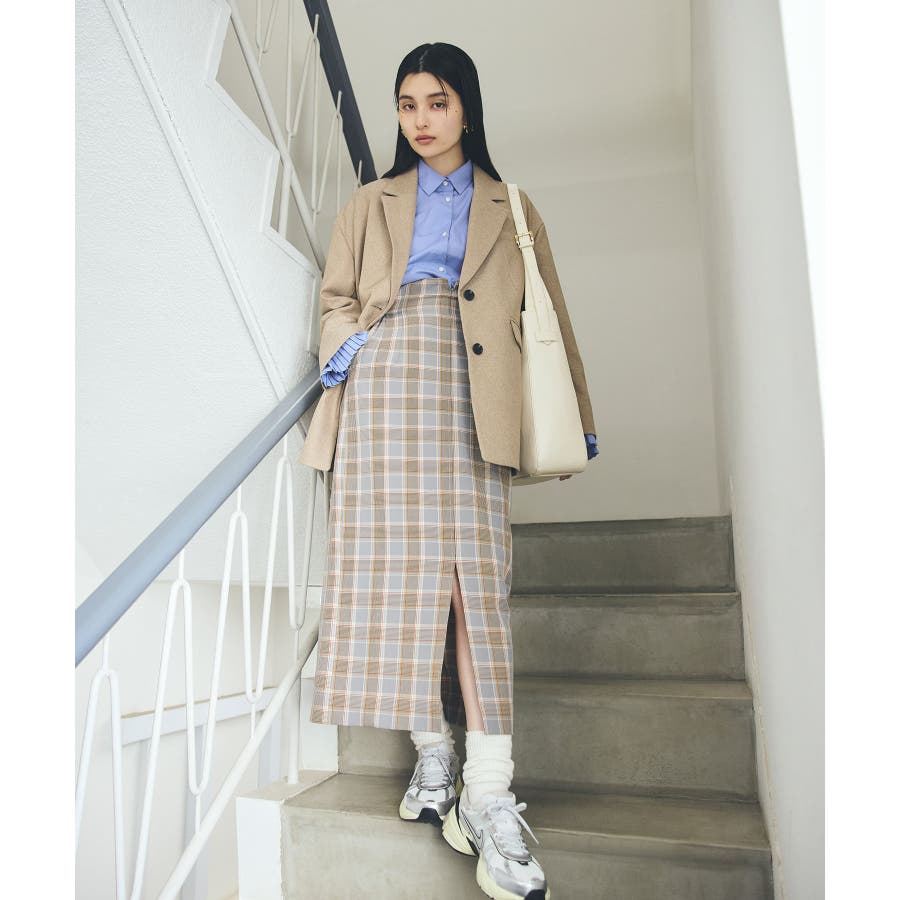 チェック柄着用モデル身長:164cm、着用サイズ:M
