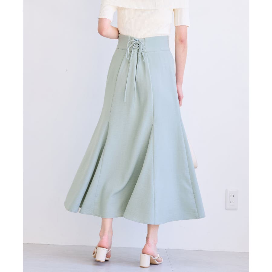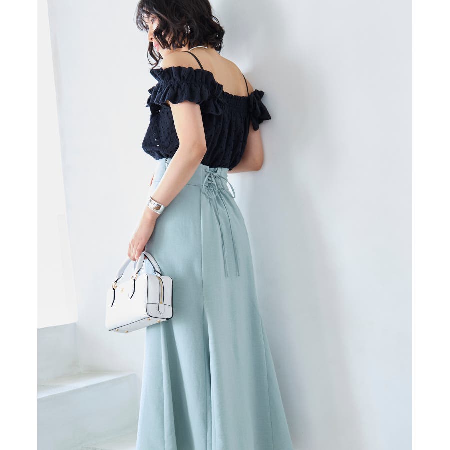 ハイウエストのバックレースアップがポイントで、ウエストが自由に調整できるところも嬉しいポイント!