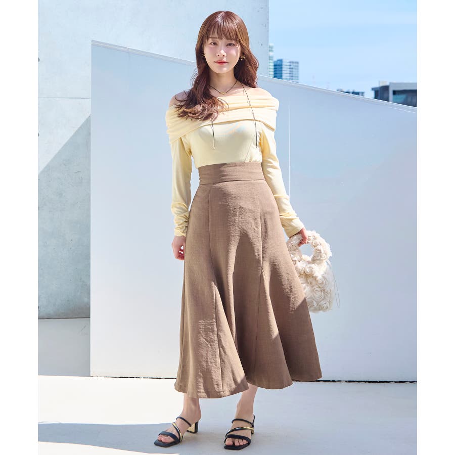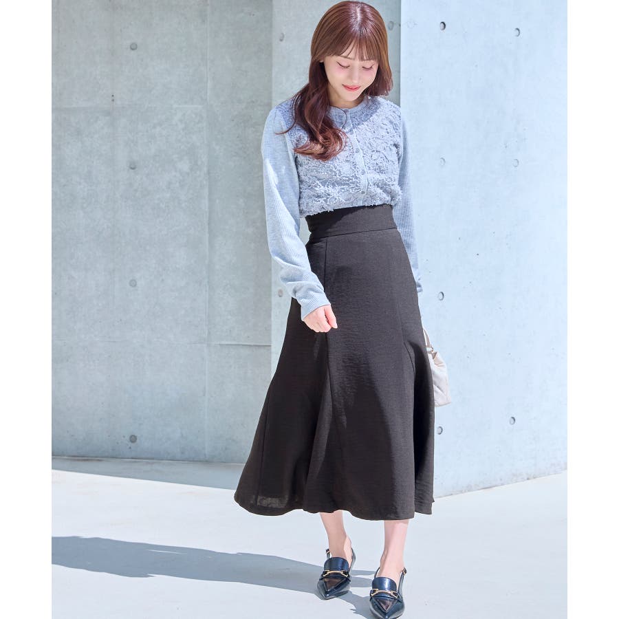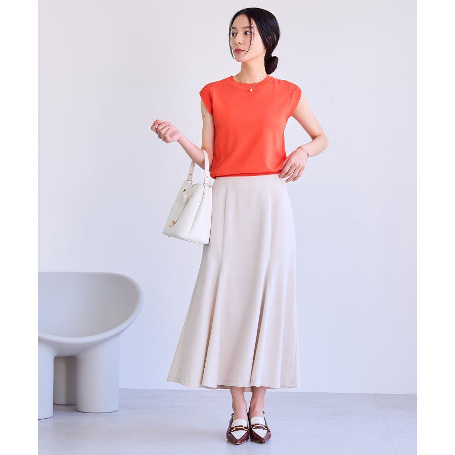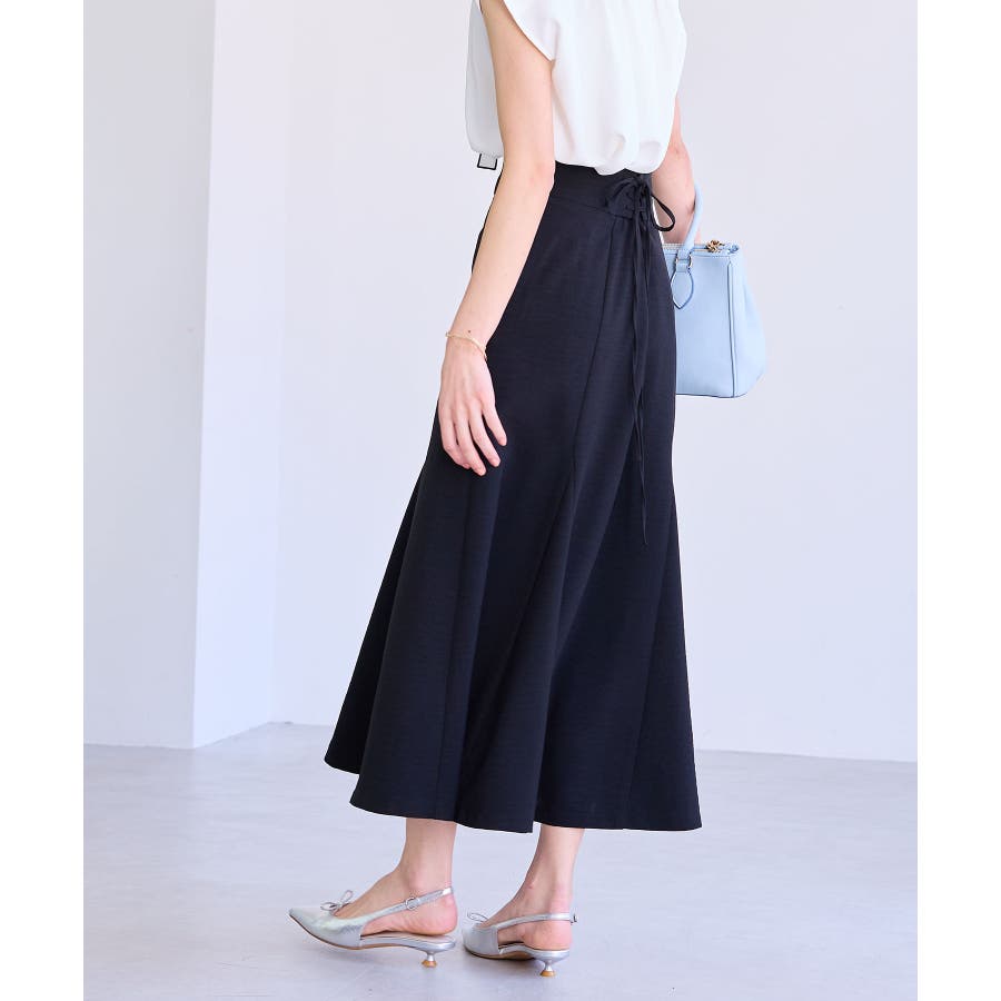 着用するだけで、楽に脚長効果が出て、スタイルアップが叶うスカート。