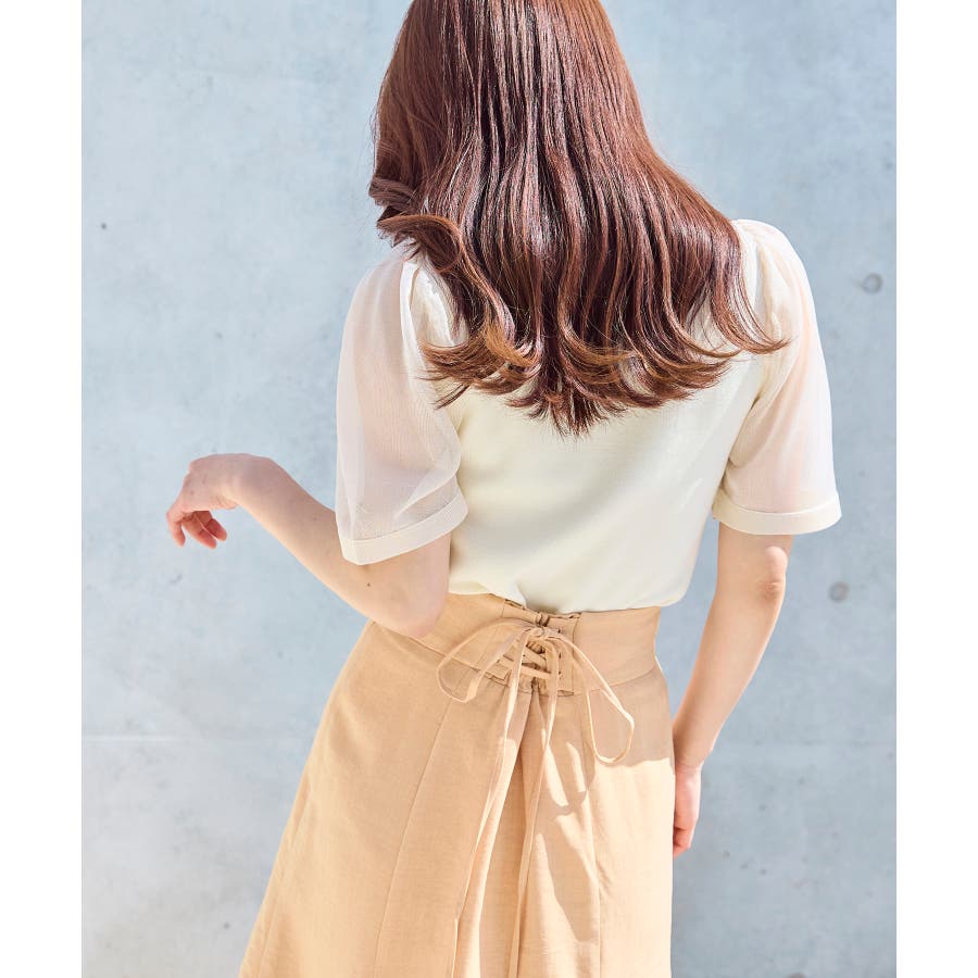 バックレースがポイントのため、インスタイルやショート丈トップスが相性いいです。