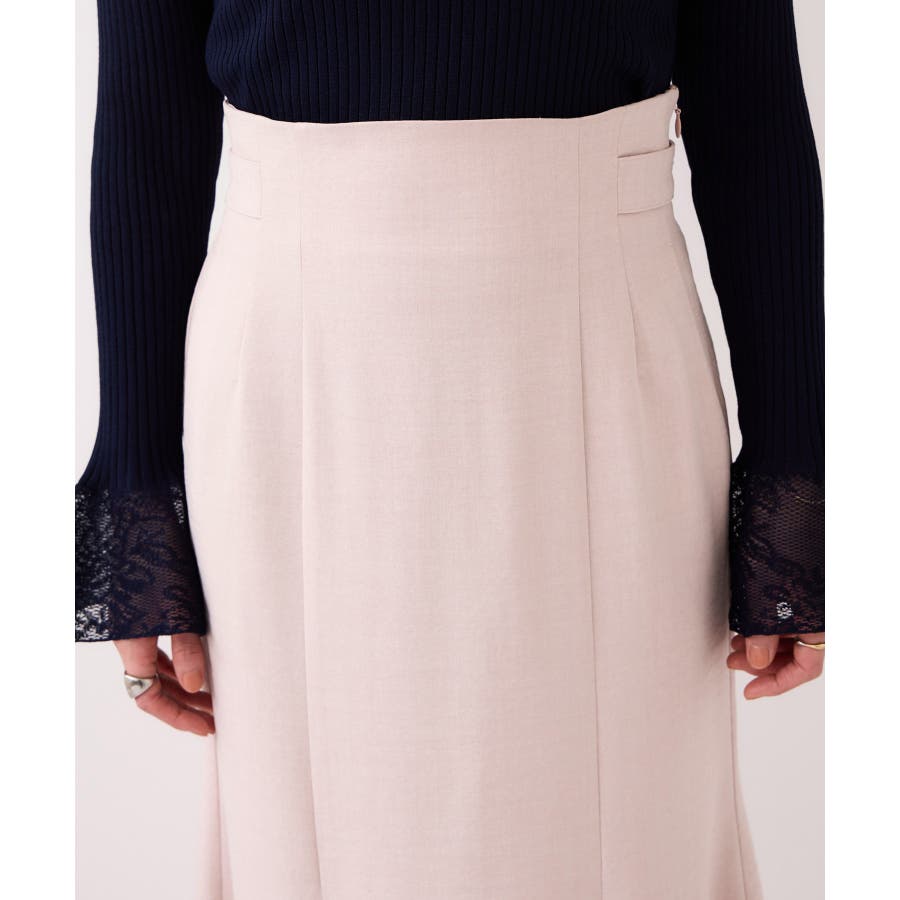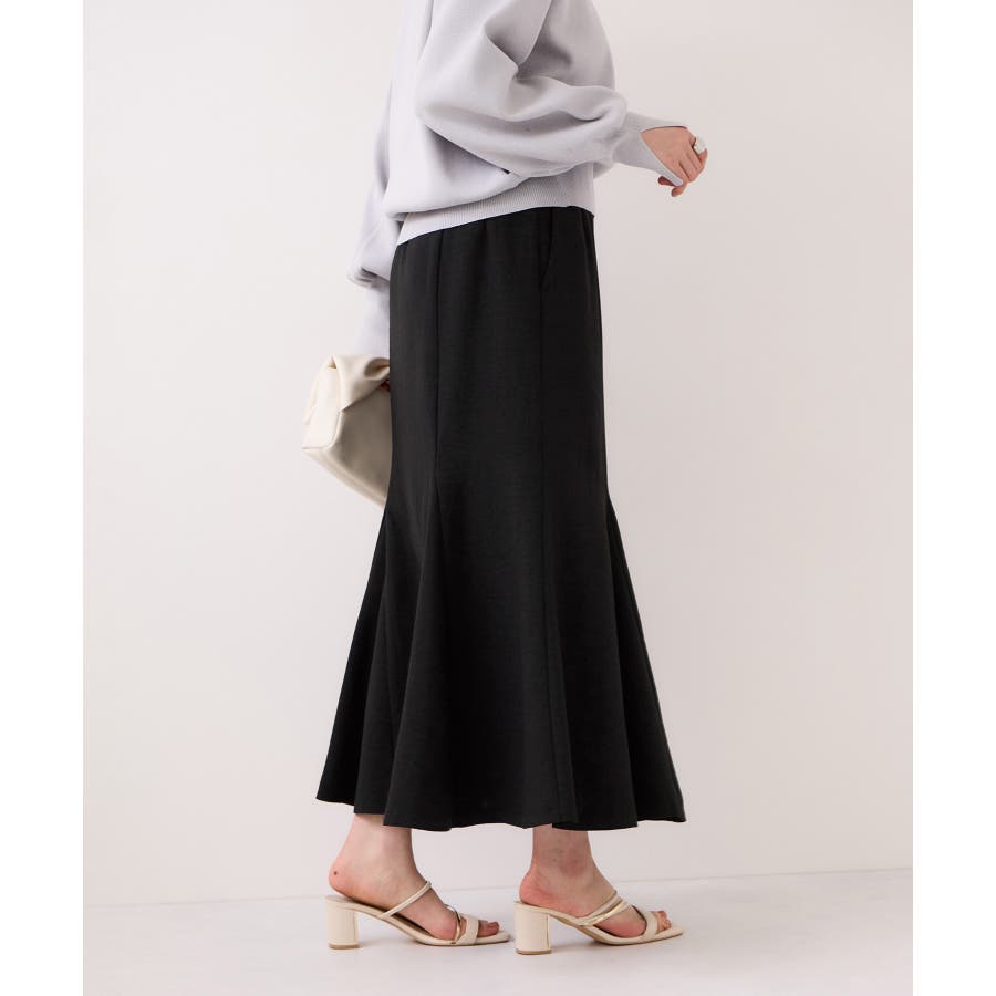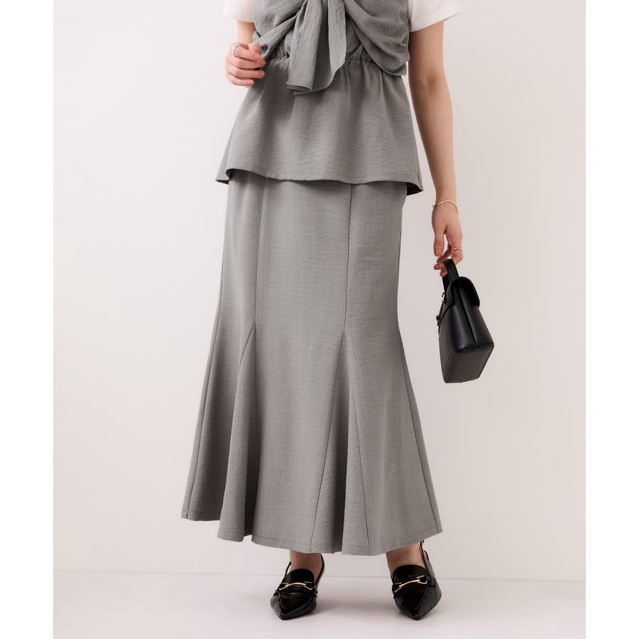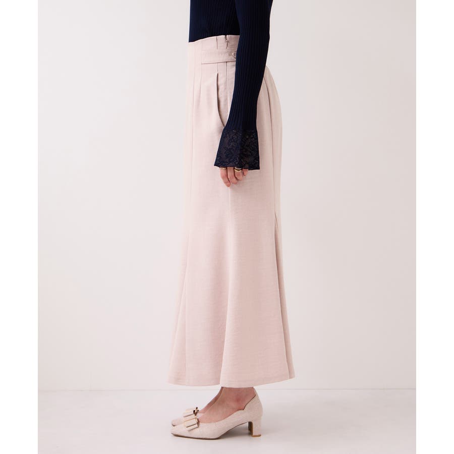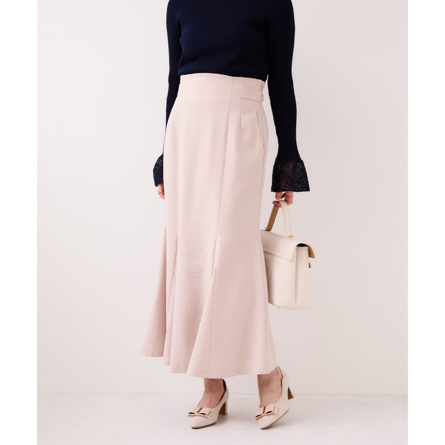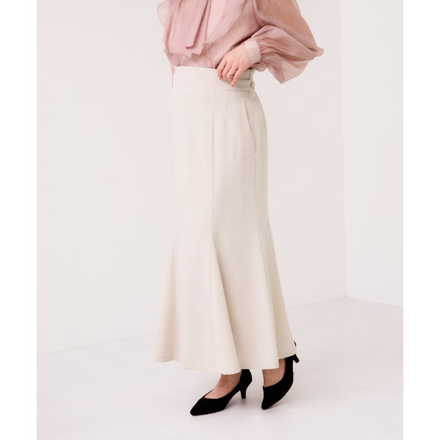 ウエストのサイドベルトがデザインポイントでもあり、アジャスターとしての機能性もある細見えするシルエットのマーメイドスカートです。